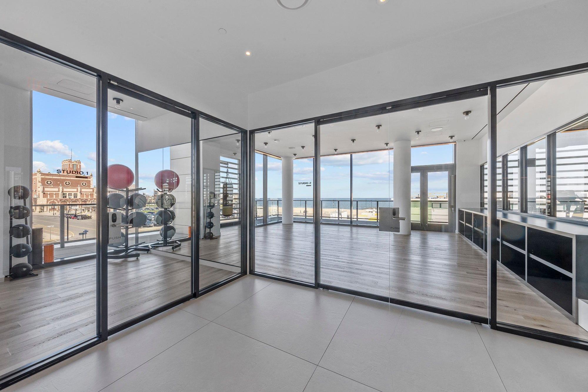 Designed for true indoor-outdoor living, enjoy wraparound balconies with phantom screens on sliders and an ocean-facing outdoor living room ideal for entertaining or relaxing with the shoreline as your backdrop. The chef’s kitchen is finished with Miele appliances and quartz countertops, complemented by four-zone heating and cooling, an oversized private storage area, and indoor parking for three cars. Residents of this fully staffed luxury building enjoy world-class amenities including a pool, restaurant and bars, fitness center, spa, cinema room, and business center—delivering a premier oceanfront lifestyle in Asbury Park.