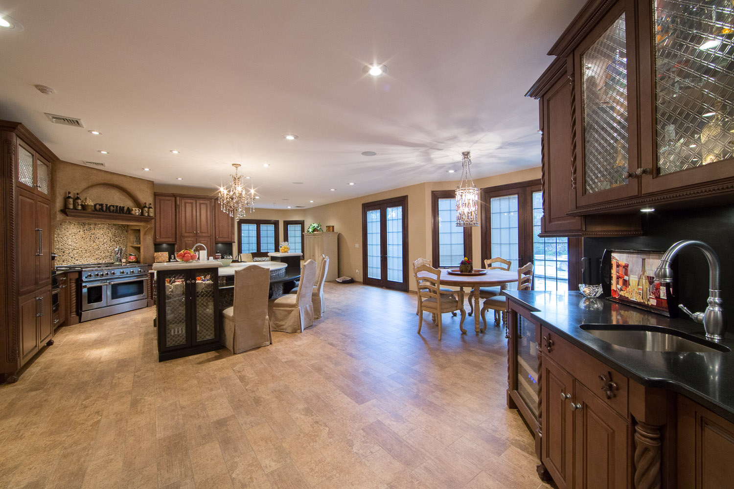 Welcome to your castle. This extraordinary 11,000+ sq ft. Crestron smart home has the best of everything, & extensive prewiring invites your personal touches. Private, fenced yard w/ heated saltwater pool, waterfalls, & full outdoor kitchen, outdoor TV, & speakers disguised as rocks. 3 sets of Pella French double doors facing the back yard allow the fun to flow