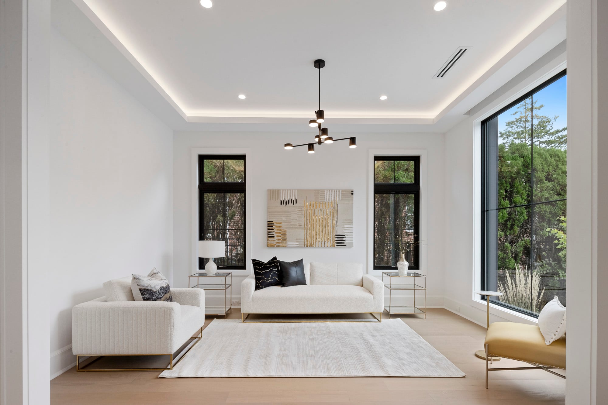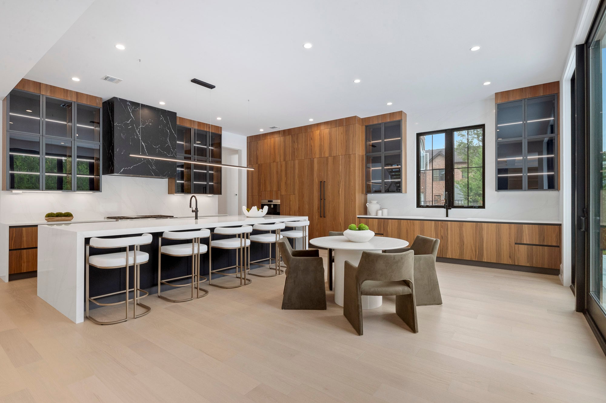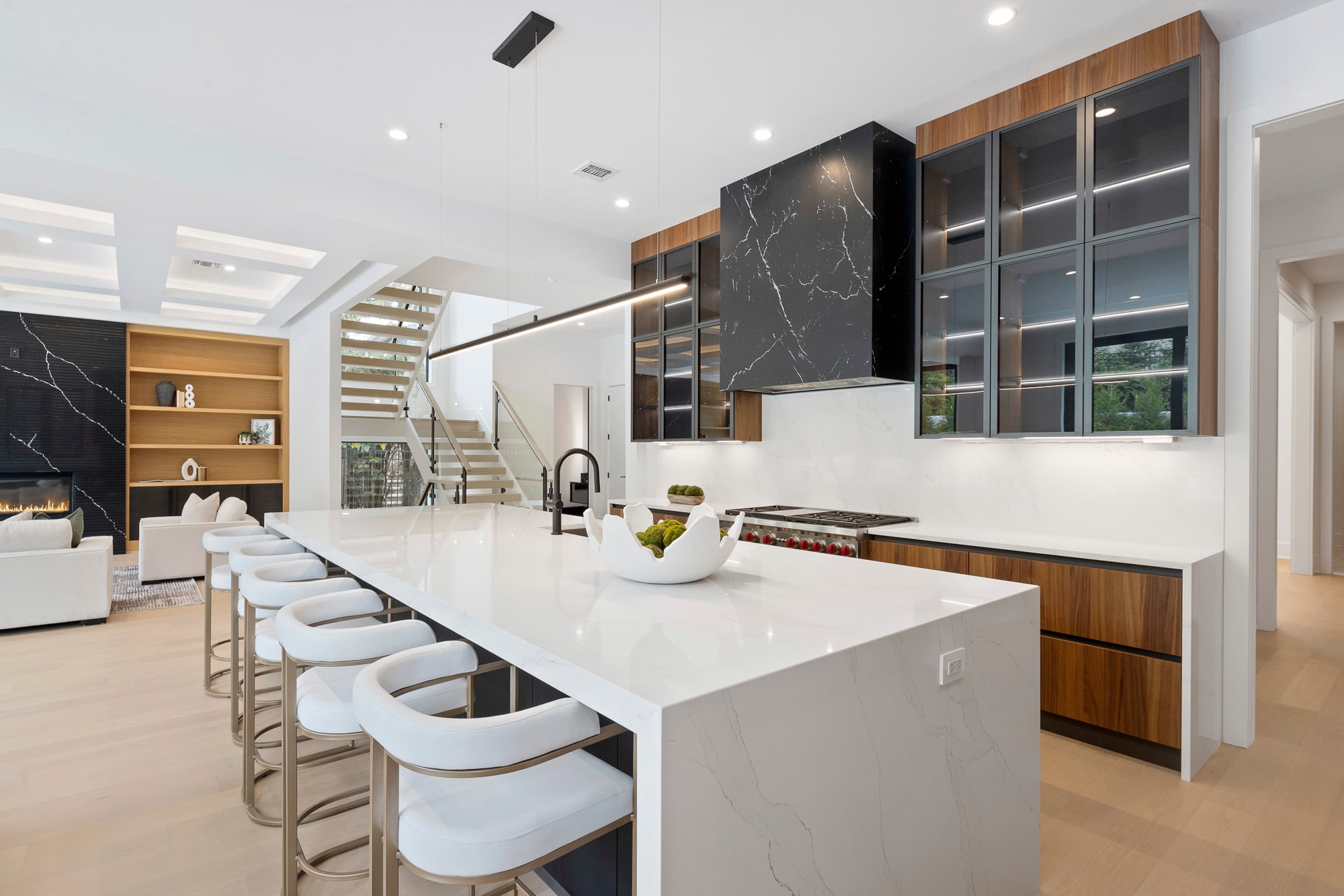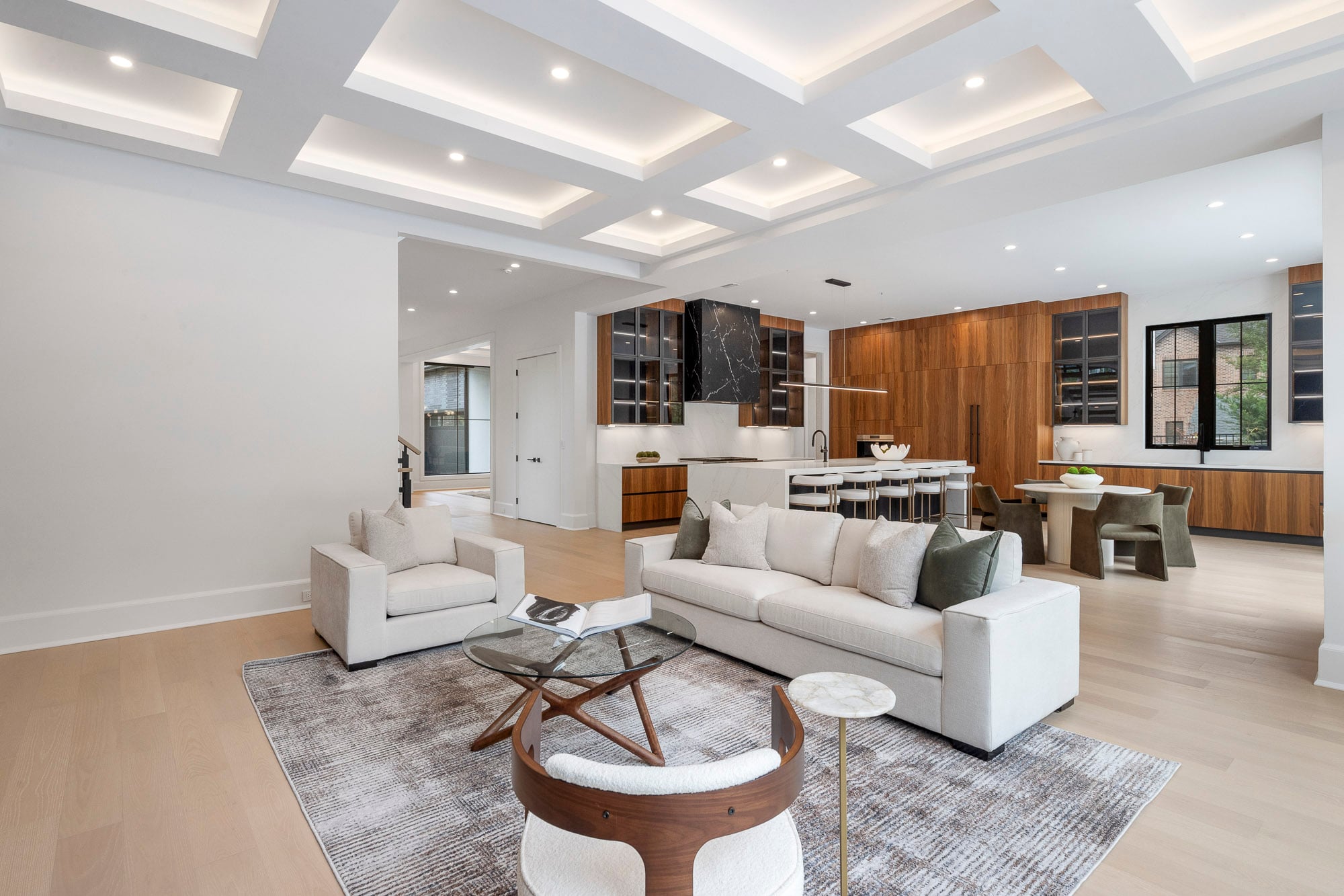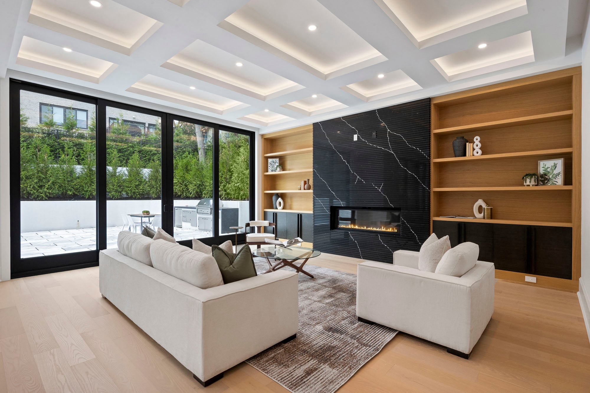 A newly constructed estate of exceptional scale and precision, this residence offers approximately 8,700 square feet across all levels and is set on a professionally landscaped, level property with a private backyard, in-ground pool, patio, and outdoor kitchen. Designed with a focus on both functionality and finish, the home features 7 bedrooms and 9.5 bathrooms, with 11-foot ceilings on the main level, 10-foot sliding glass doors, wide-plank white oak flooring, and radiant heated floors in all bathrooms.