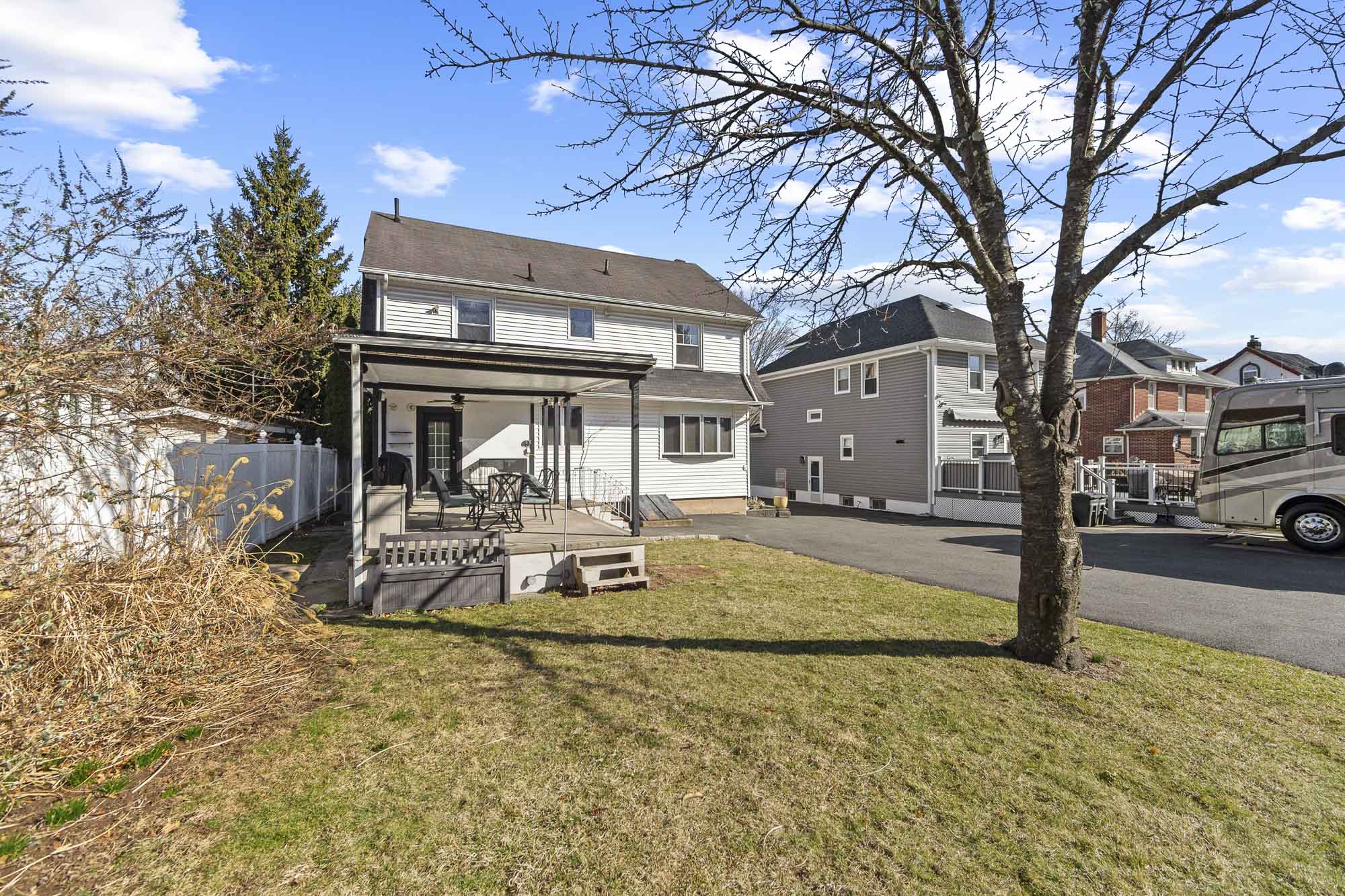 Welcome to the neighborhood! This inviting & charming Center Hall Colonial home offering 4 Bedrooms & 3 Full Bathrooms on a large Lot (50’ x 159’) in desirable Ridgefield Park is a great place to live! Within a 5 minute walk to parks, Main St. or Bus to NYC. Mature bushes & trees provide privacy for the above ground pool with new liner and elevated deck. 4 Finished floors. New Central AC system, furnace & Hot water heater. The kitchen spans the rear of the home with access to covered outdoor space. Main level has 9’ ceilings and hardwood floors throughout. Large Living room with wood burning fireplace. 1 car detached garage. Short walk to downtown, schools, parks & town pool. The kitchen sink has a water filtration system. Finished Attic & Basement. East Facing. Located in the Center of town. Walk to shopping, dining, parks, public transportation. Overpeck County Park & RP Nature Preserve is close by. Easy Access to GWB & Lincoln Tunnel, Rt. 46, Rt. 80, NJ Turnpike.