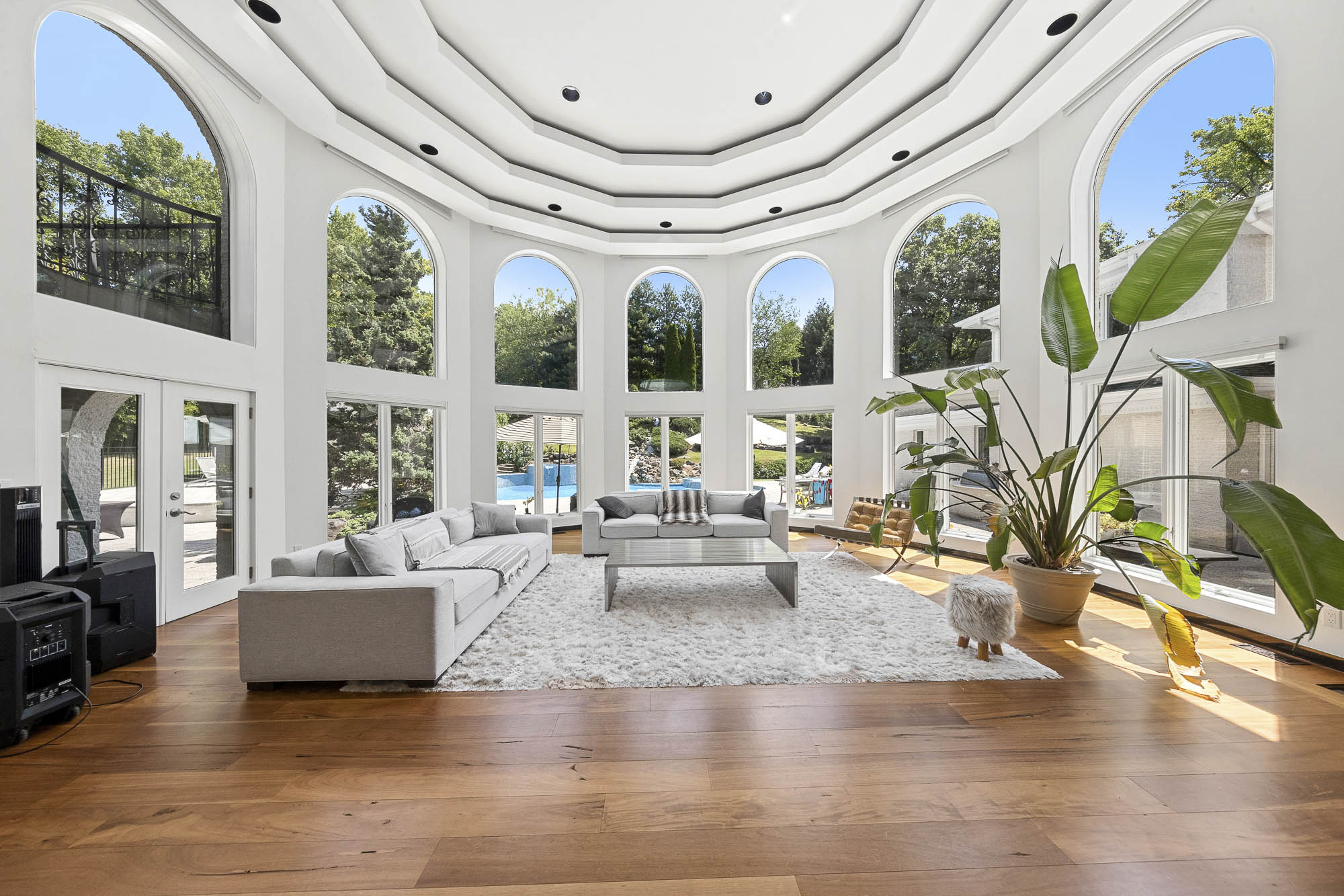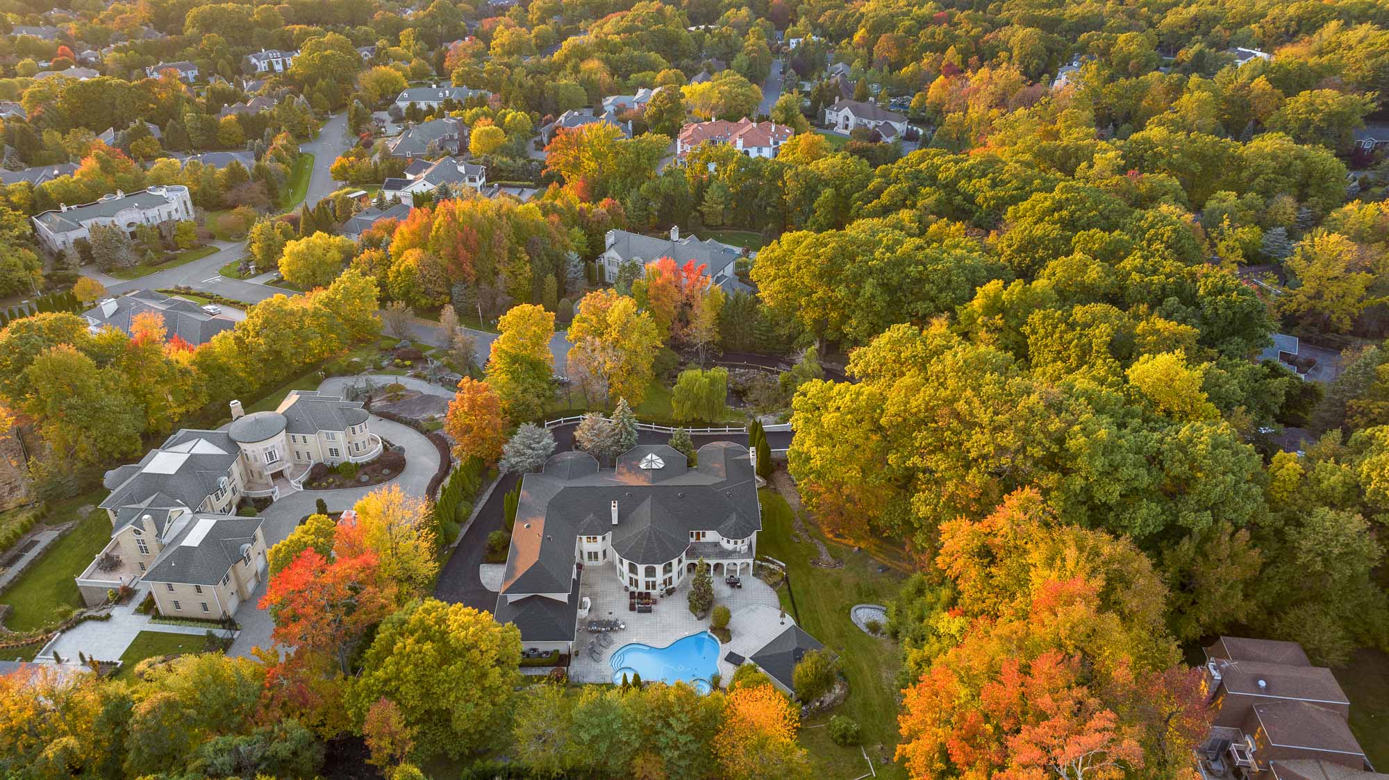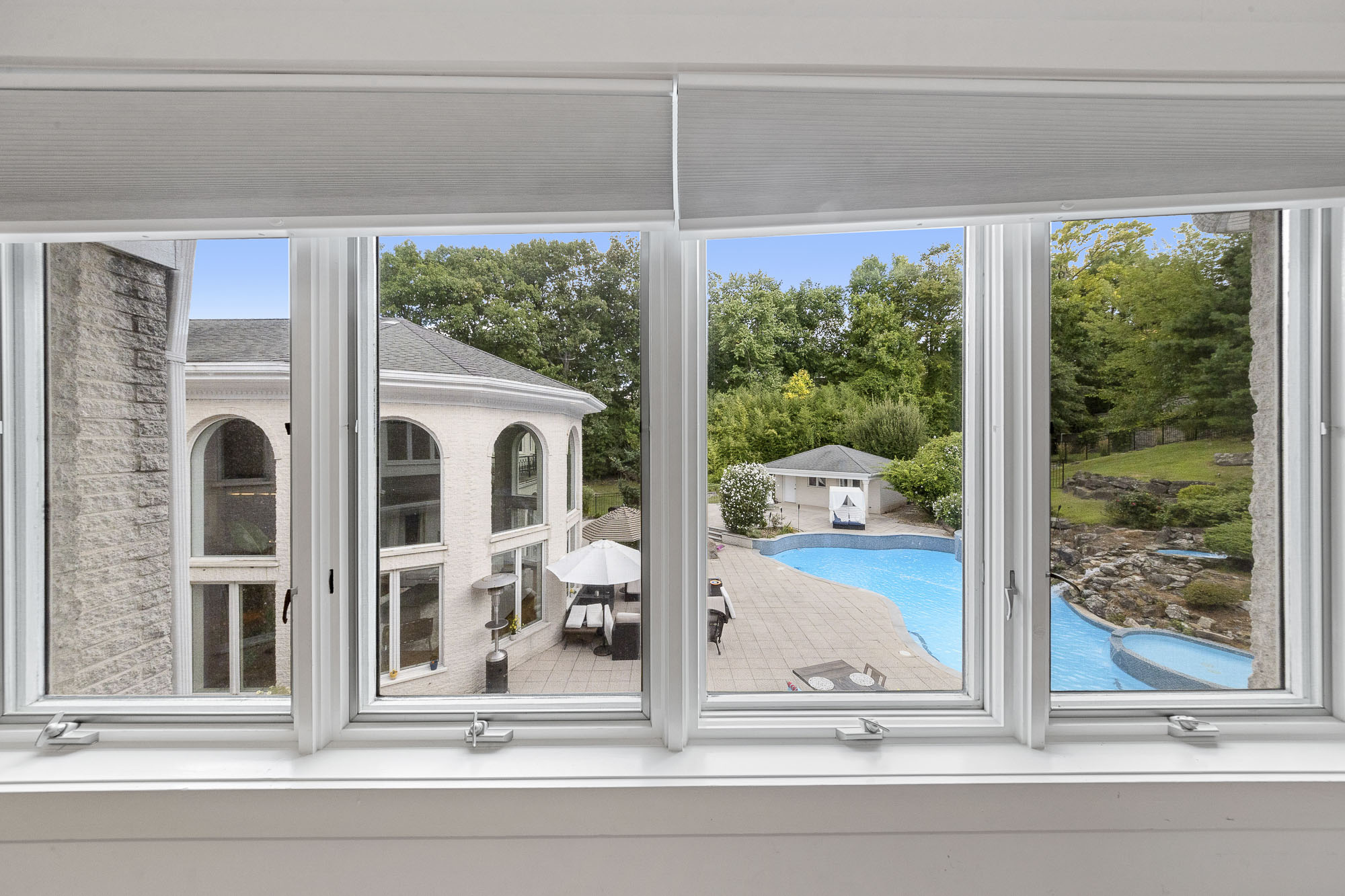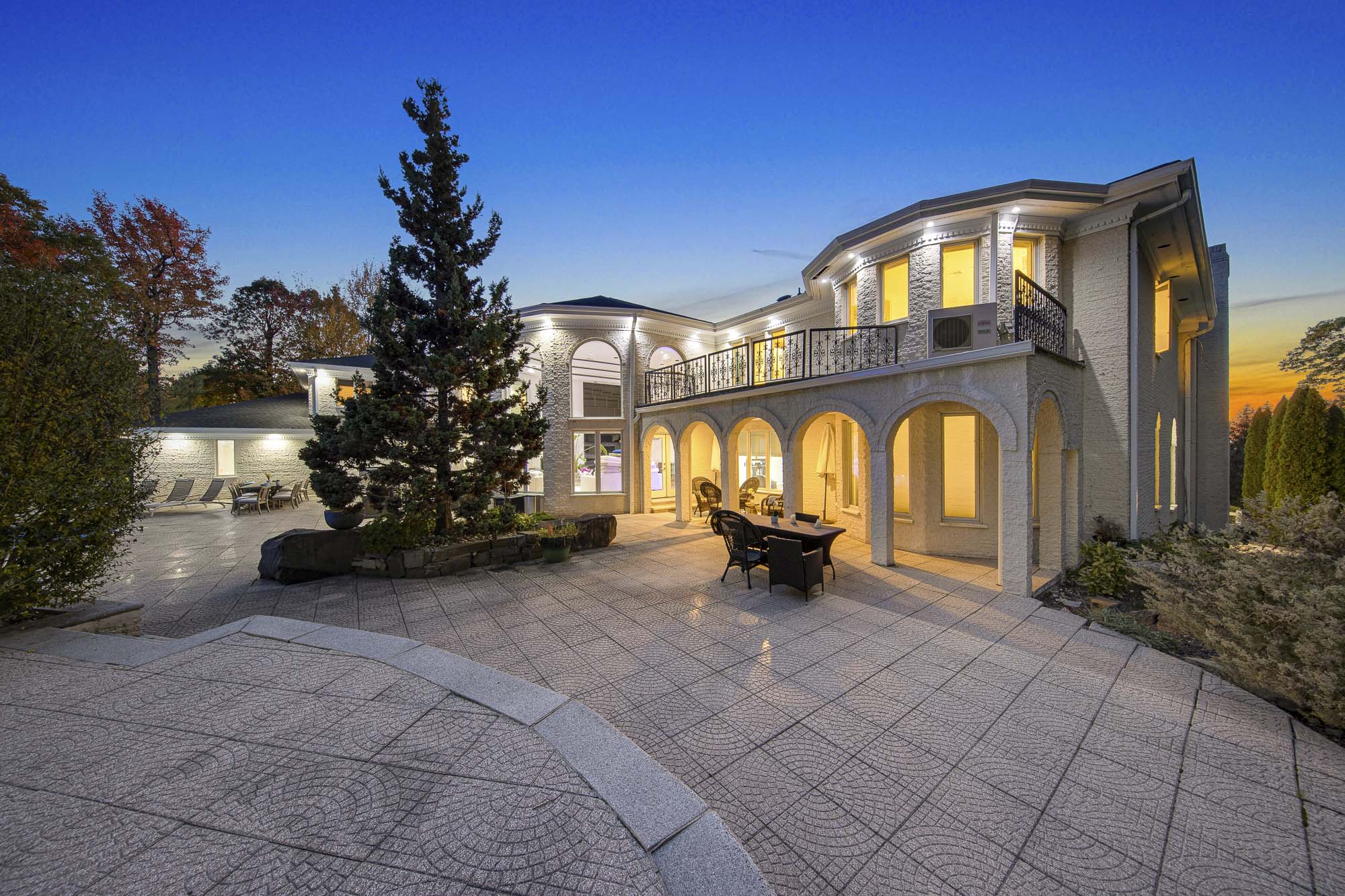 Spanning over 15,000 square feet, the impressive floor plan is elevator-ready and designed for both grand-scale entertaining and everyday comfort. The property showcases a stunning outdoor oasis complete with a swimming pool, waterfall feature, hot tub, dedicated children’s pool, sauna, and a large stone fire pit—creating a true private retreat.