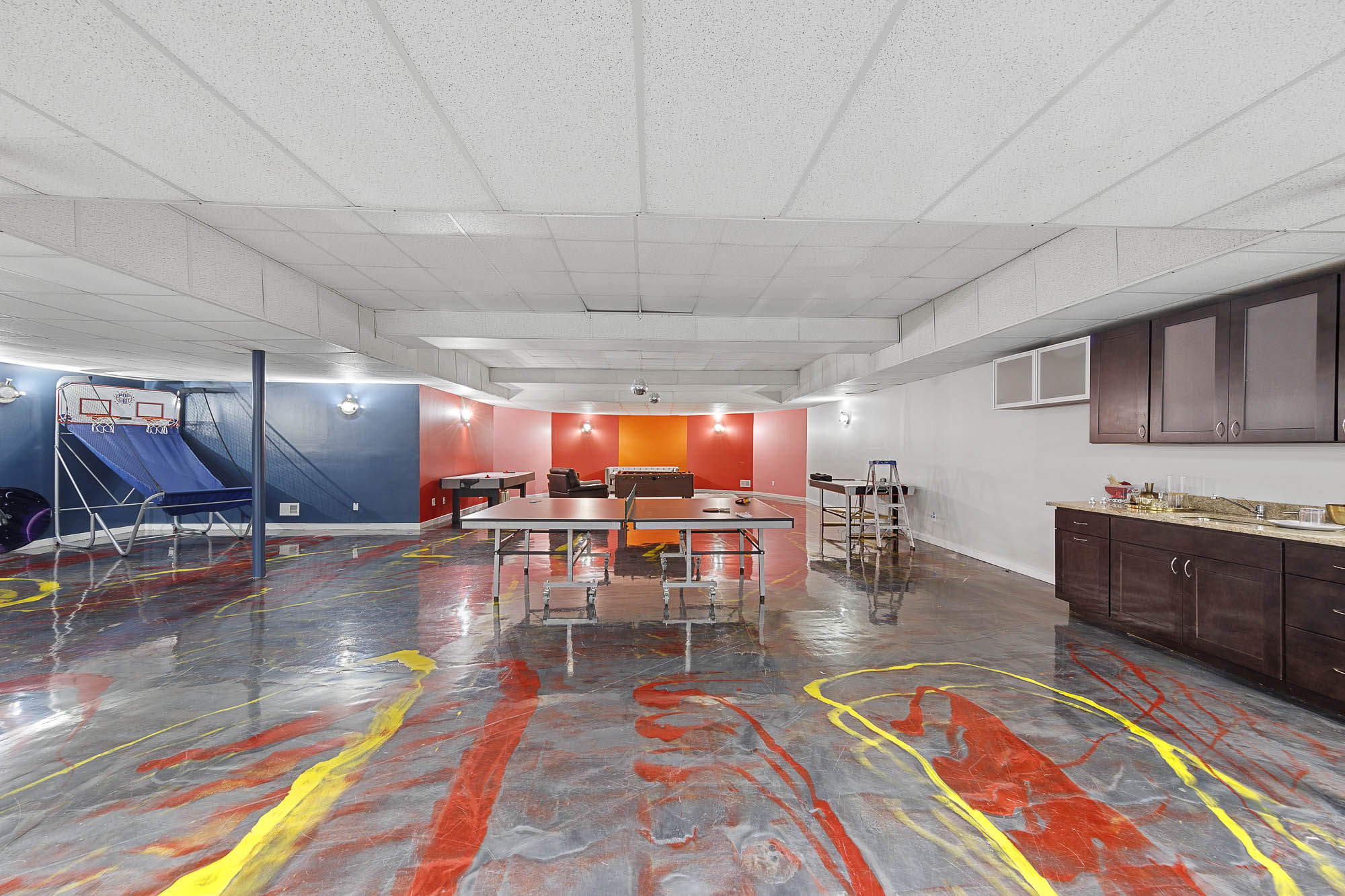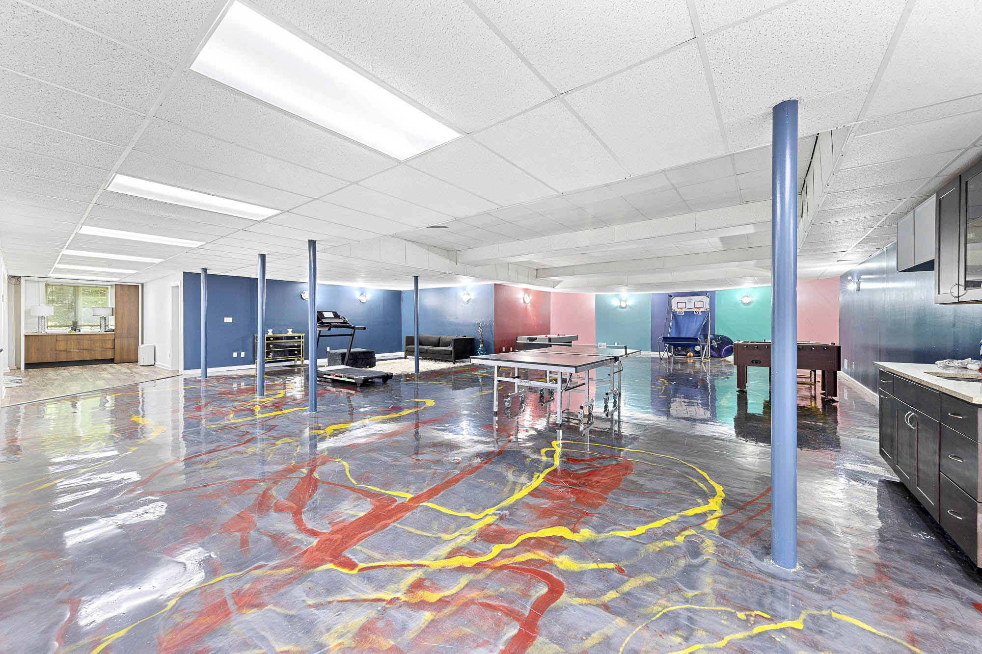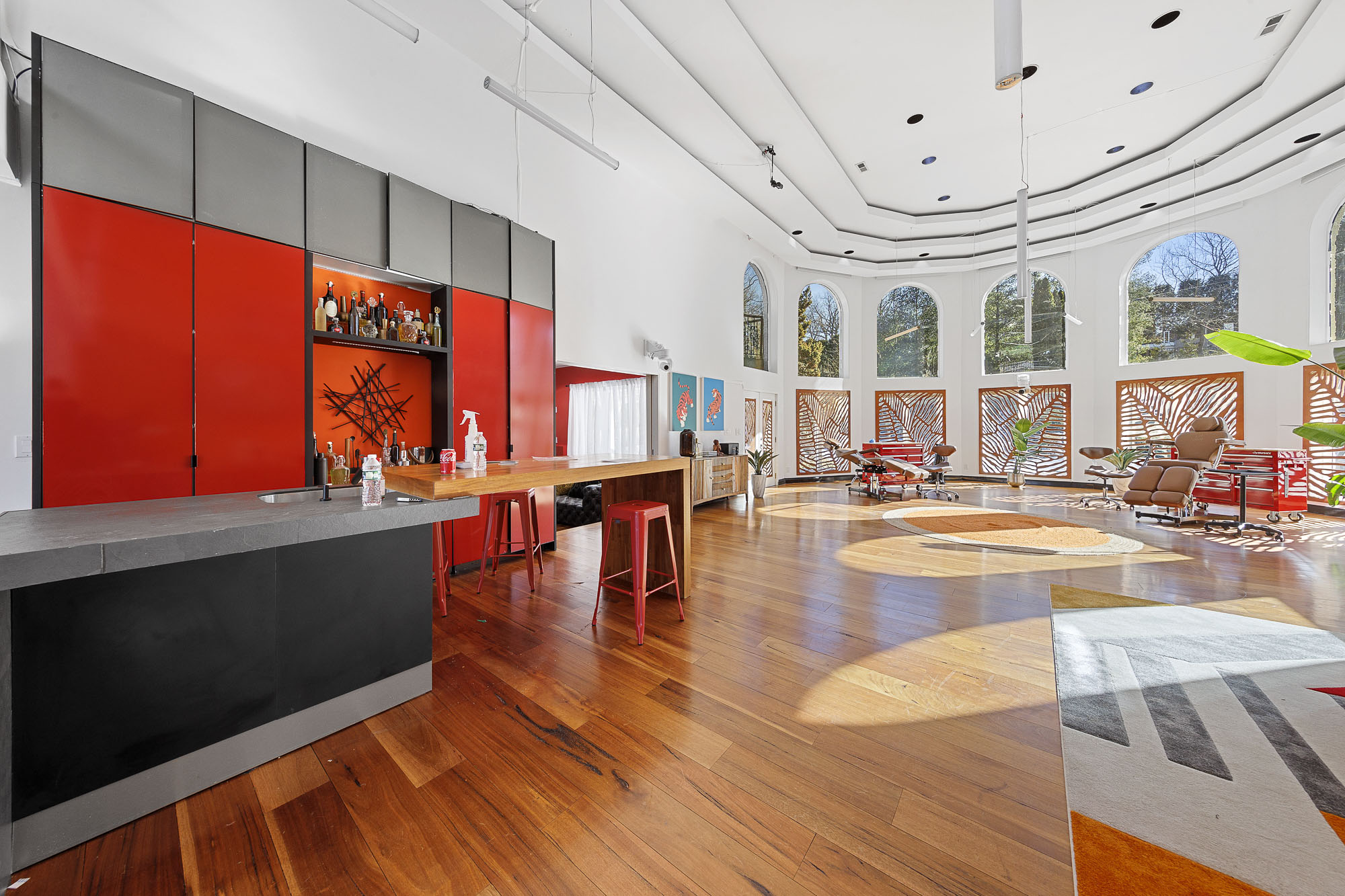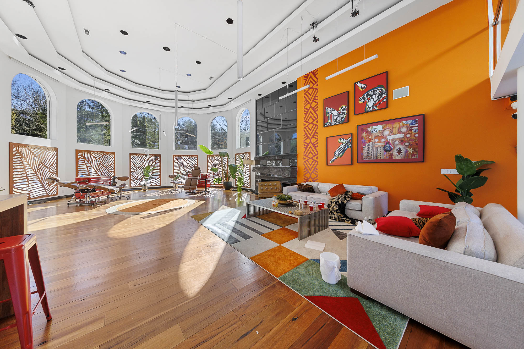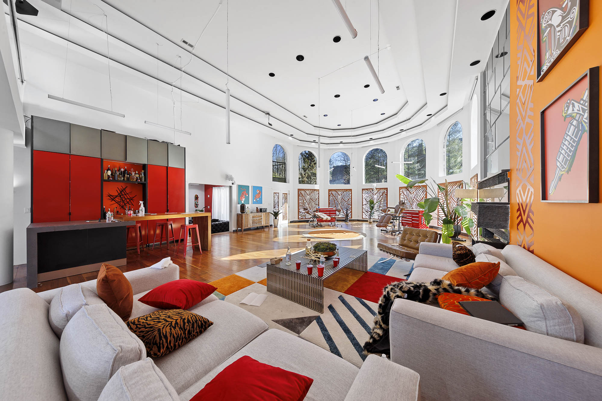 Spanning over 15,000 square feet, the impressive floor plan is elevator-ready and designed for both grand-scale entertaining and everyday comfort. The property showcases a stunning outdoor oasis complete with a swimming pool, waterfall feature, hot tub, dedicated children’s pool, sauna, and a large stone fire pit—creating a true private retreat.