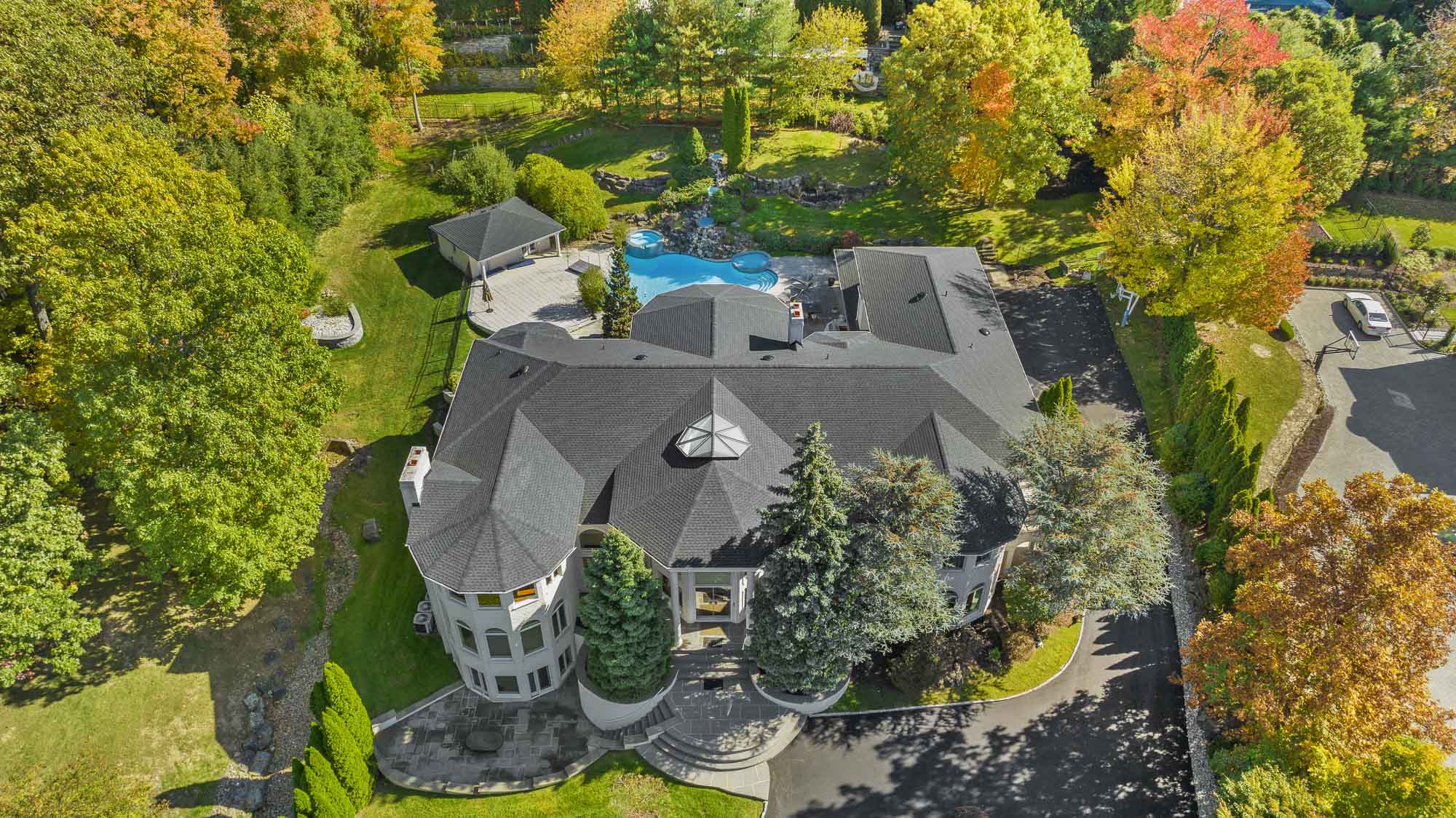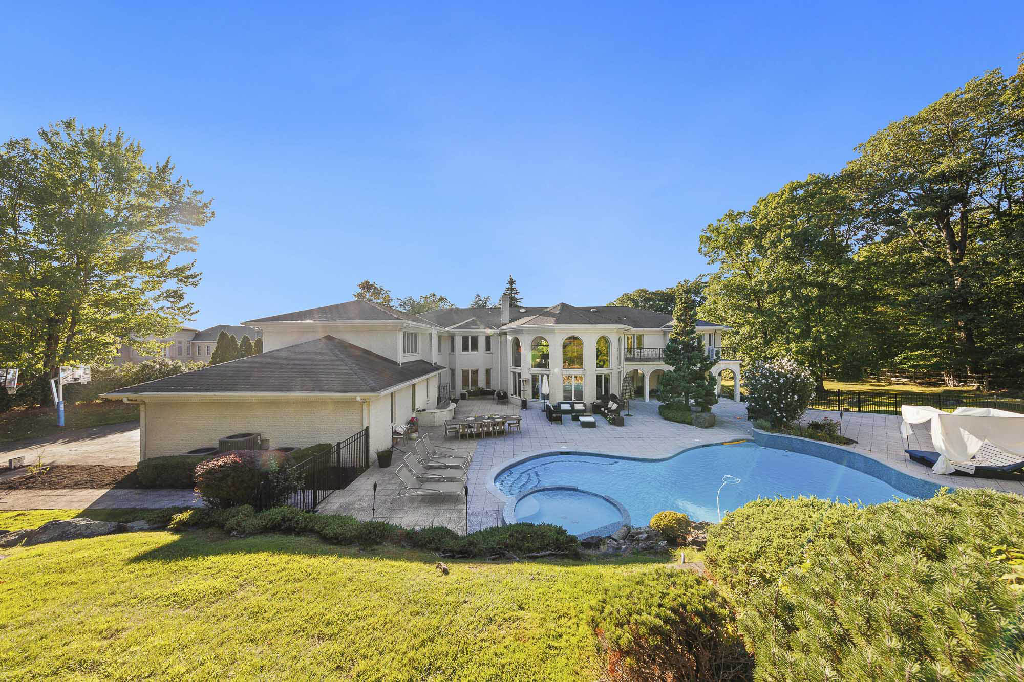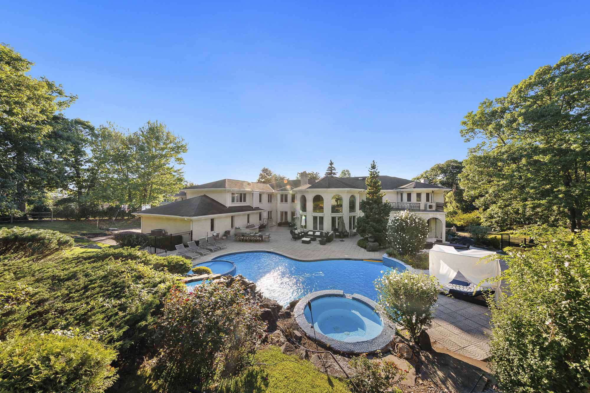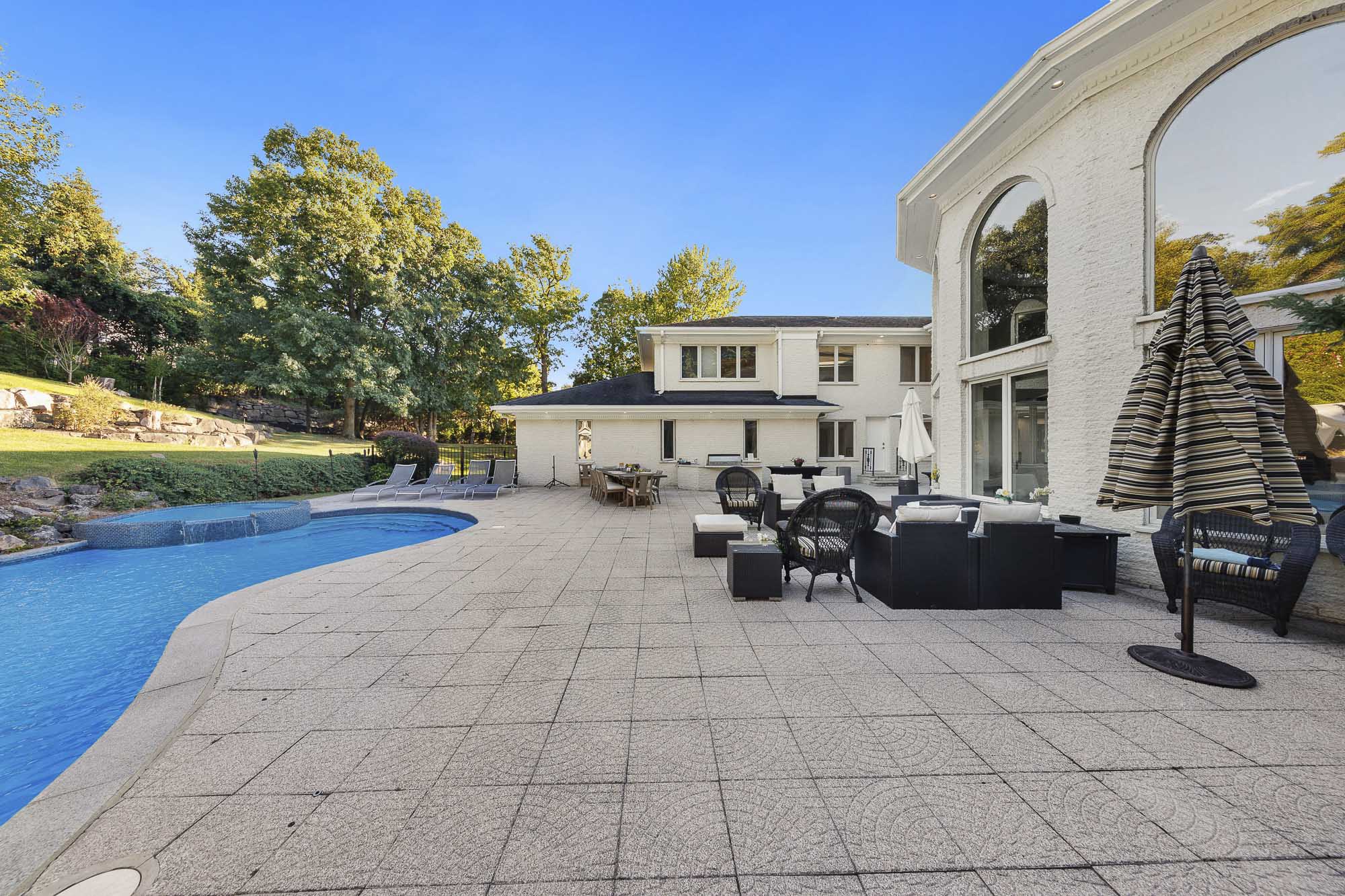 Set at the very end of a quiet cul-de-sac and surrounded by some of the finest homes in the country, this extraordinary estate offers unmatched privacy and resort-style living on 1.6 acres just minutes from New York City. The expansive residence features seven bedrooms, eight full bathrooms, and three half bathrooms, with eight of the eleven bathrooms newly renovated in 2024.