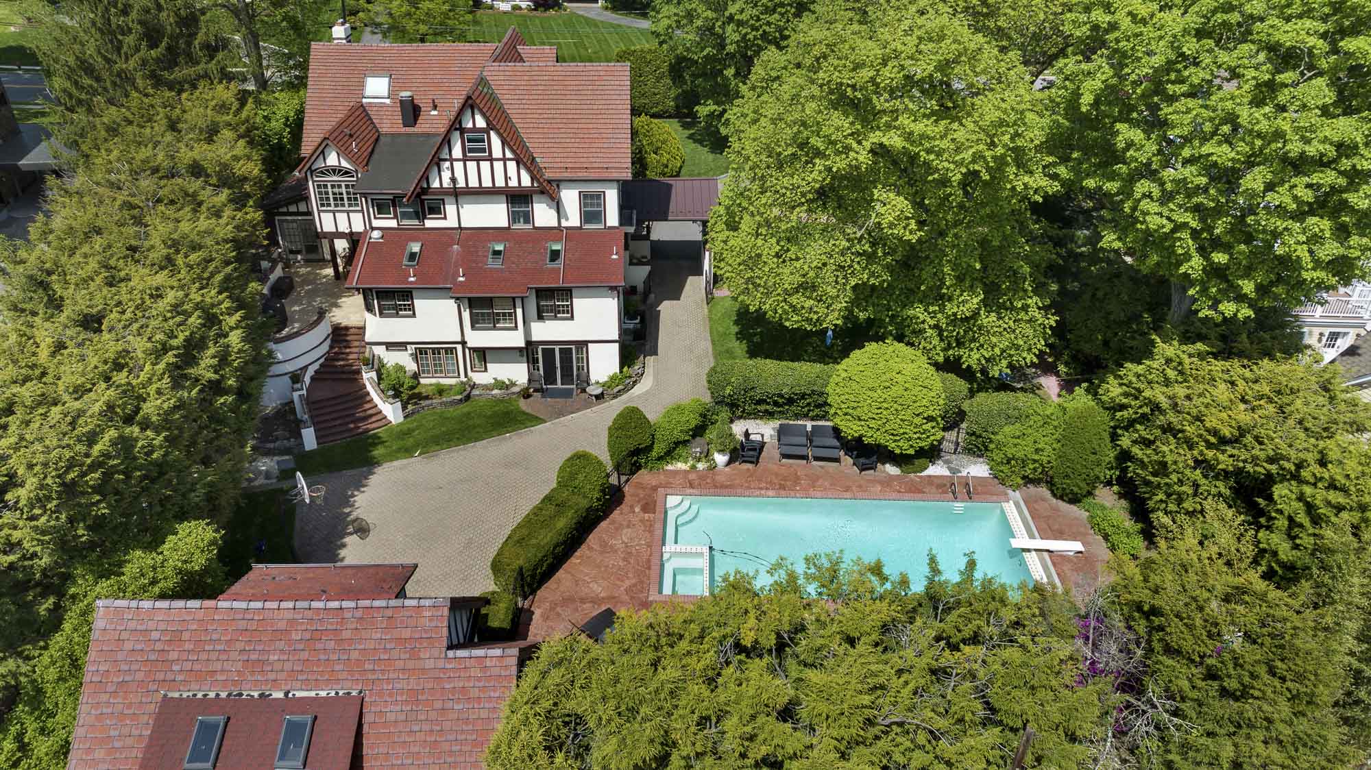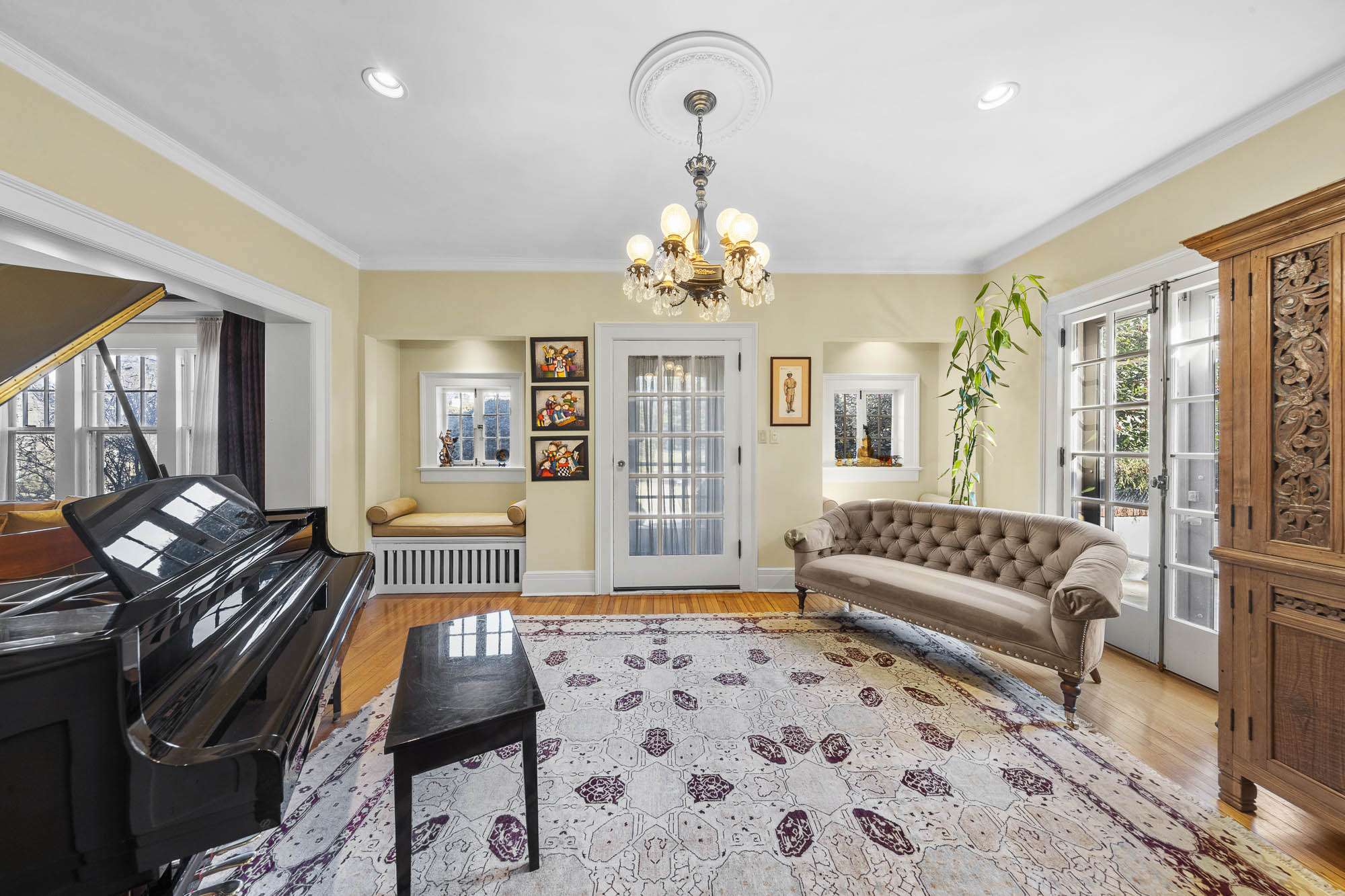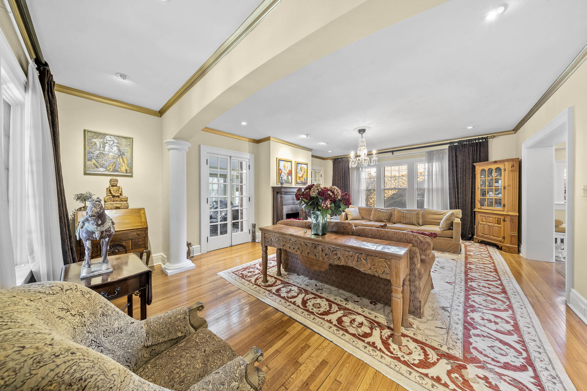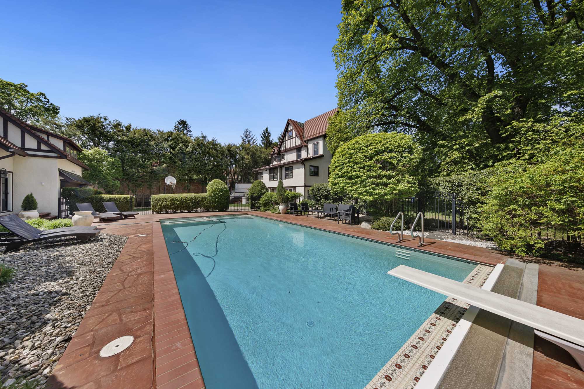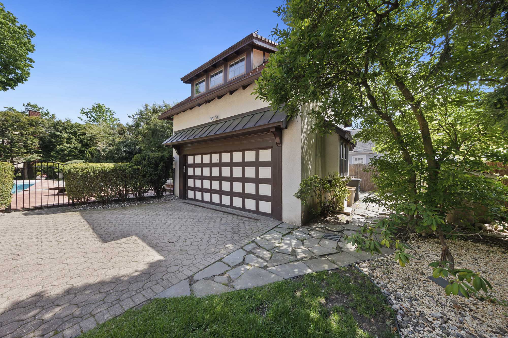 Located in one of Ridgewood, New Jersey’s most coveted neighborhoods, this exceptional estate sits on approximately 0.7 acres just 300 yards from downtown Ridgewood, the train station, and NYC express bus service, offering an unmatched blend of convenience and privacy. Meticulously maintained and thoughtfully upgraded, the home spans four finished levels and showcases timeless craftsmanship with custom mahogany woodwork, restored vintage fixtures, Bradbury wallpaper, venetian plaster, and extensive custom plaster detailing. Modern luxuries include radiant-heated bathrooms, multiple steam rooms and a sauna, seven skylights, two terraces, two Juliette balconies, a whole-house generator, upgraded plumbing and electrical systems, and a private well for irrigation and pool use. The lower level provides a flexible fifth-bedroom option, while the outdoor oasis features a smart-controlled inground saltwater pool, mature privacy landscaping, and a two-car detached garage with a finished loft, making this one of Ridgewood’s premier luxury homes with walkable access to town and transit.