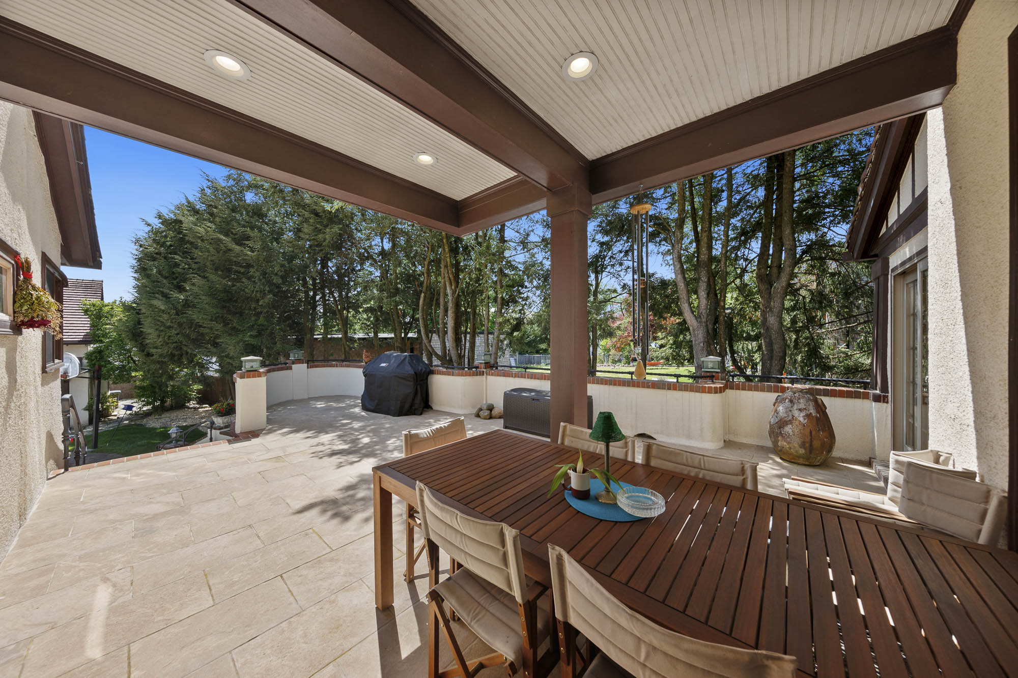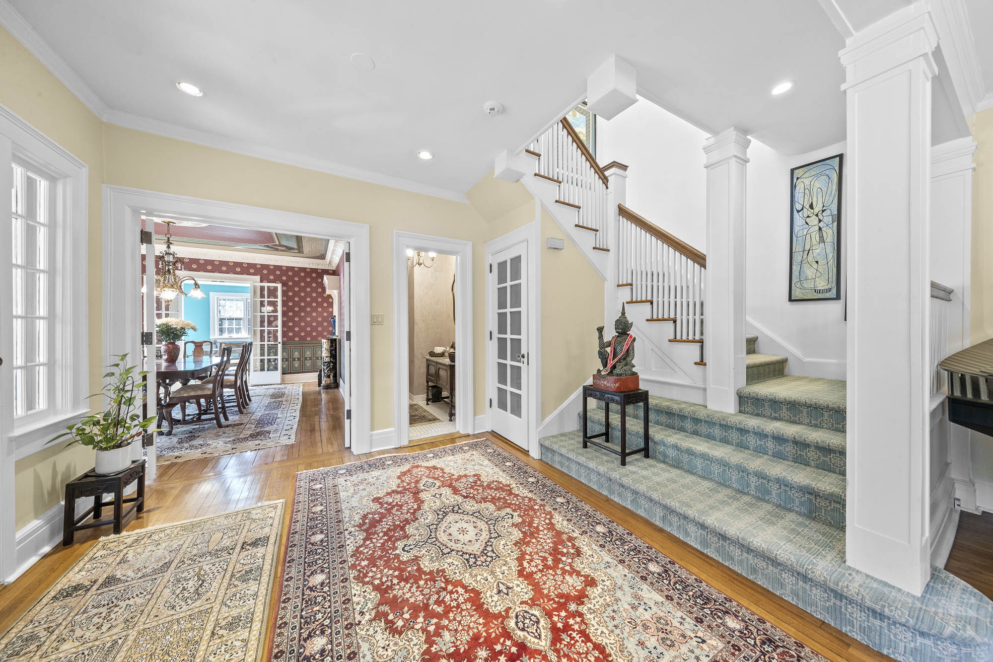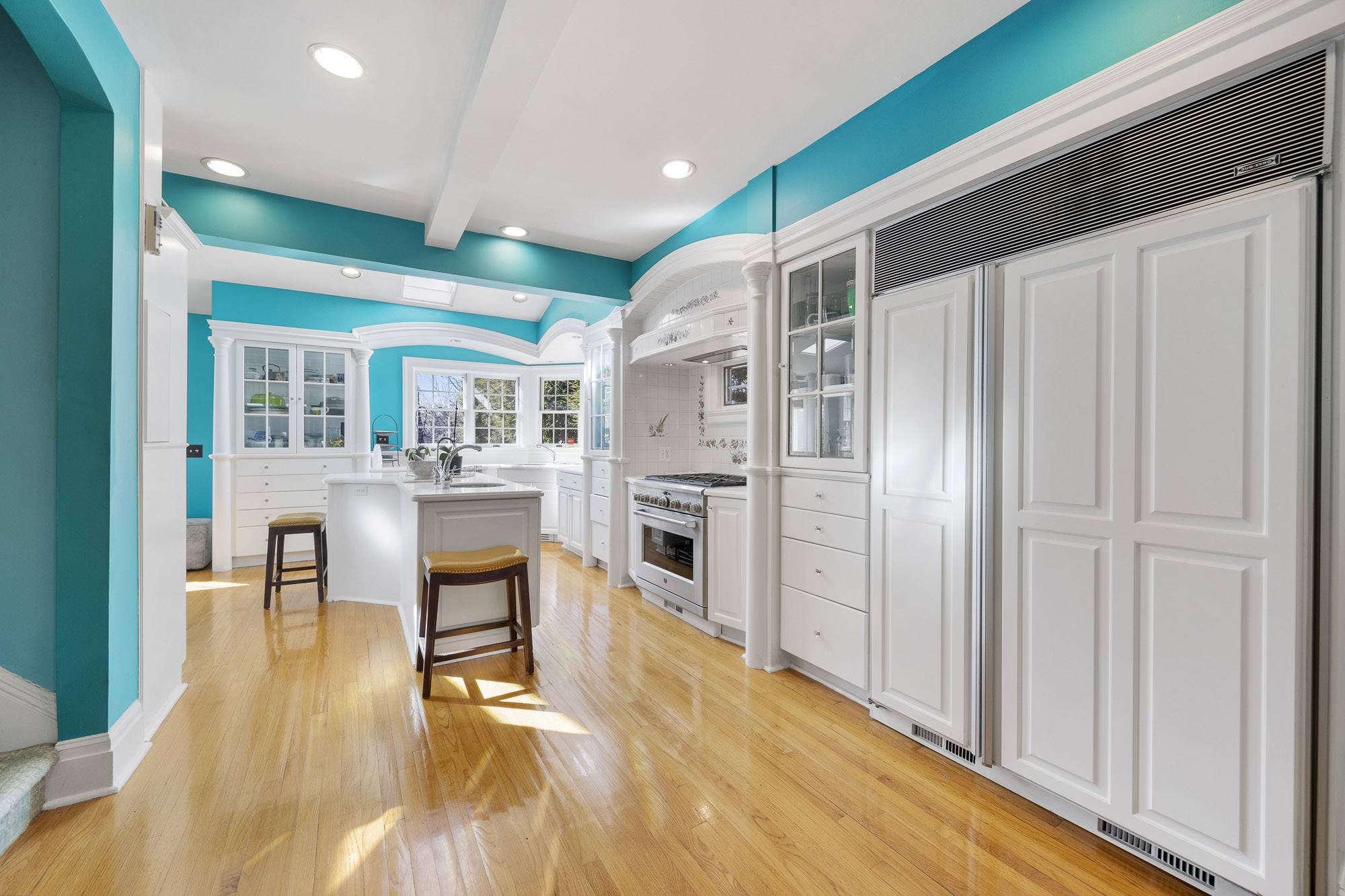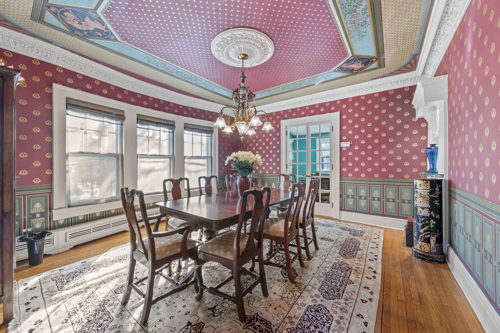 Located in one of Ridgewood, New Jersey’s most coveted neighborhoods, this exceptional estate sits on approximately 0.7 acres just 300 yards from downtown Ridgewood, the train station, and NYC express bus service, offering an unmatched blend of convenience and privacy. Meticulously maintained and thoughtfully upgraded, the home spans four finished levels and showcases timeless craftsmanship with custom mahogany woodwork, restored vintage fixtures, Bradbury wallpaper, venetian plaster, and extensive custom plaster detailing. Modern luxuries include radiant-heated bathrooms, multiple steam rooms and a sauna, seven skylights, two terraces, two Juliette balconies, a whole-house generator, upgraded plumbing and electrical systems, and a private well for irrigation and pool use. The lower level provides a flexible fifth-bedroom option, while the outdoor oasis features a smart-controlled inground saltwater pool, mature privacy landscaping, and a two-car detached garage with a finished loft, making this one of Ridgewood’s premier luxury homes with walkable access to town and transit.