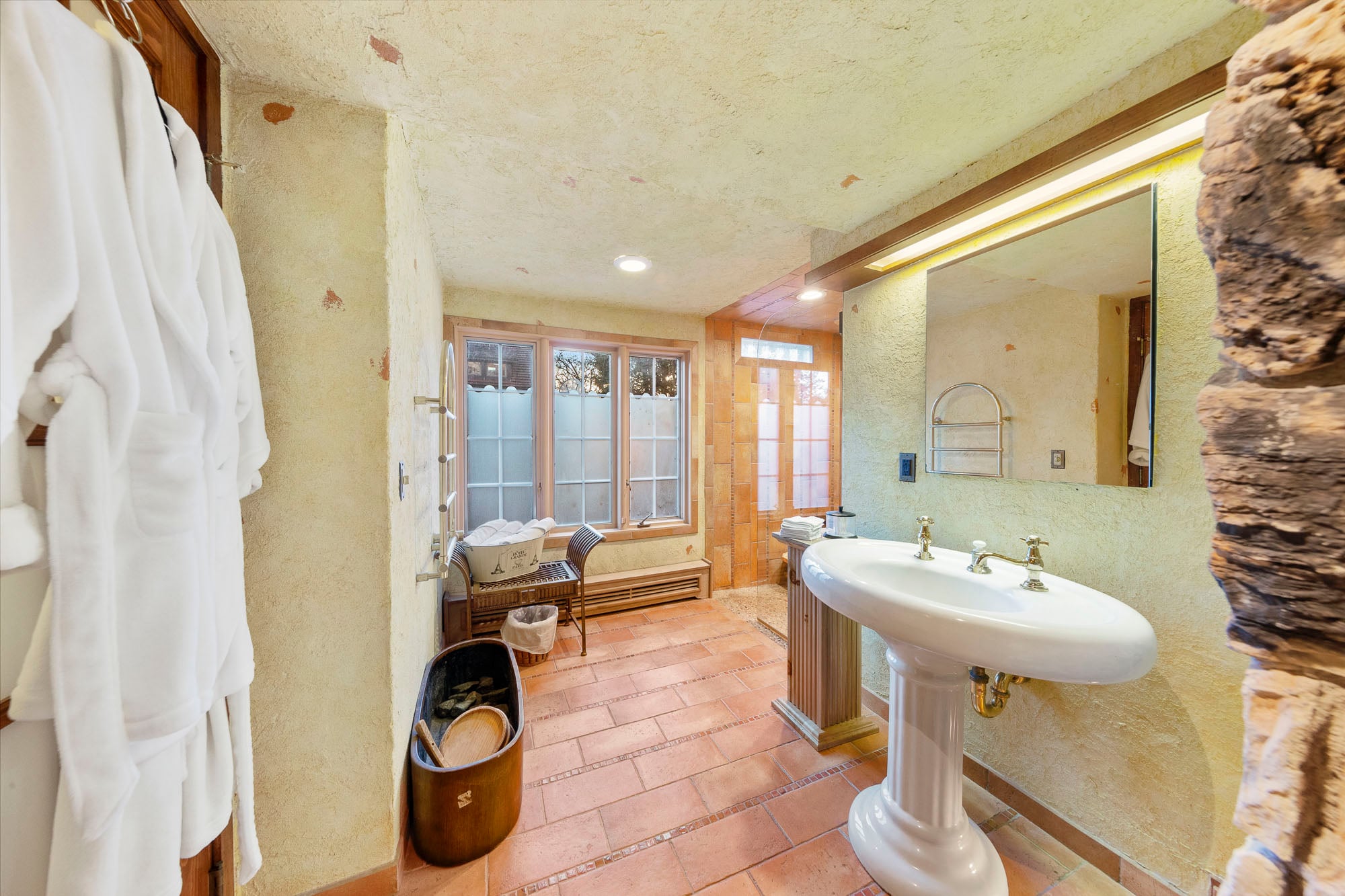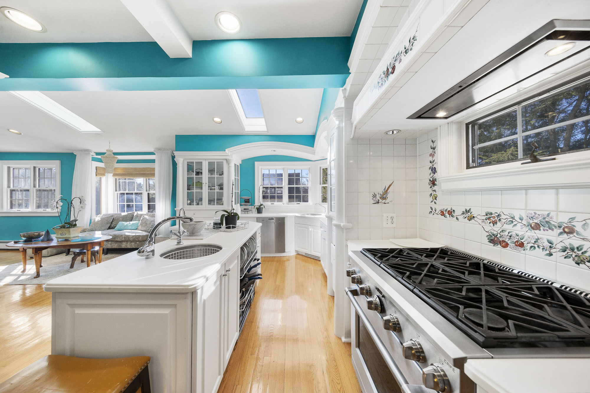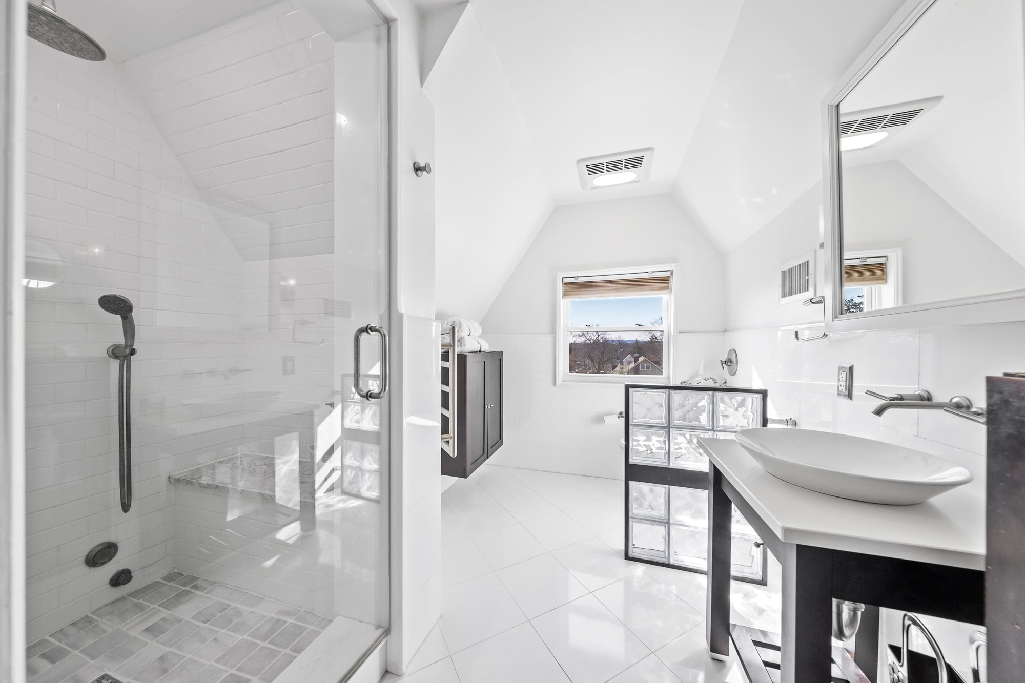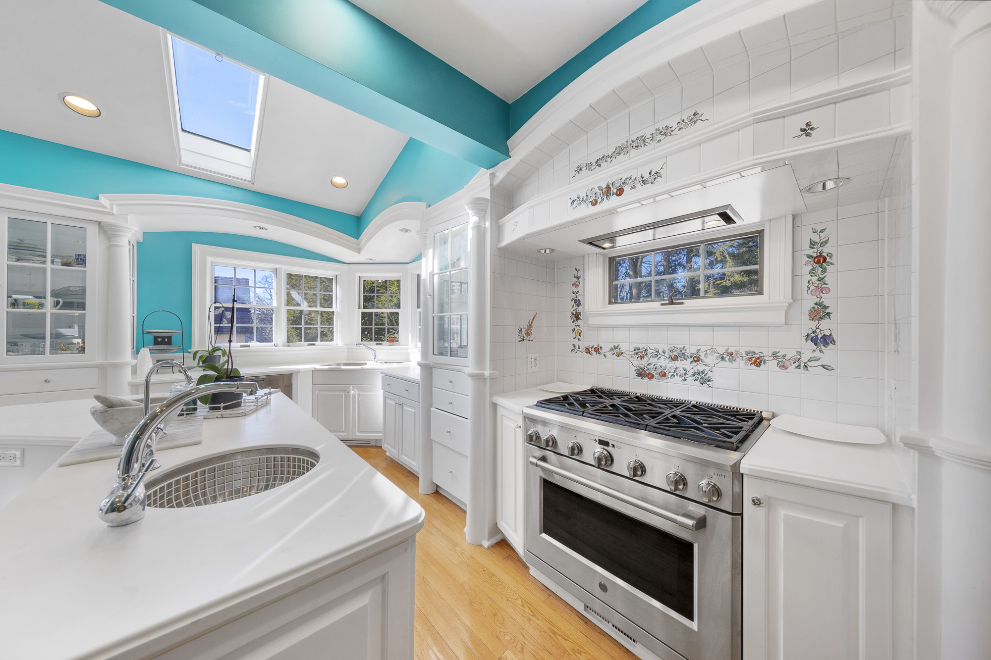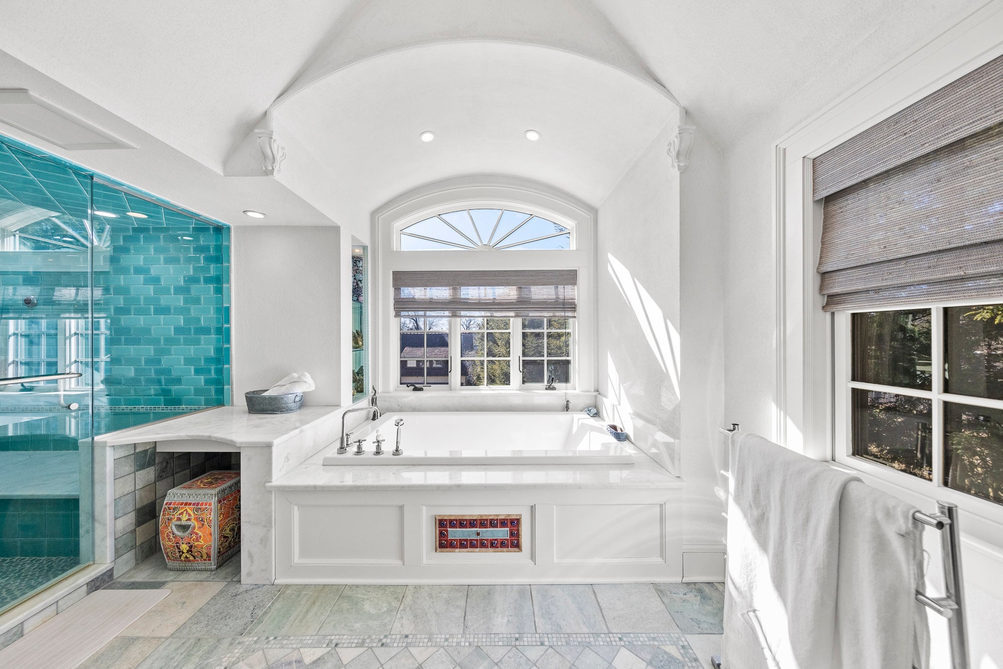 Located in one of Ridgewood, New Jersey’s most coveted neighborhoods, this exceptional estate sits on approximately 0.7 acres just 300 yards from downtown Ridgewood, the train station, and NYC express bus service, offering an unmatched blend of convenience and privacy. Meticulously maintained and thoughtfully upgraded, the home spans four finished levels and showcases timeless craftsmanship with custom mahogany woodwork, restored vintage fixtures, Bradbury wallpaper, venetian plaster, and extensive custom plaster detailing. Modern luxuries include radiant-heated bathrooms, multiple steam rooms and a sauna, seven skylights, two terraces, two Juliette balconies, a whole-house generator, upgraded plumbing and electrical systems, and a private well for irrigation and pool use. The lower level provides a flexible fifth-bedroom option, while the outdoor oasis features a smart-controlled inground saltwater pool, mature privacy landscaping, and a two-car detached garage with a finished loft, making this one of Ridgewood’s premier luxury homes with walkable access to town and transit.