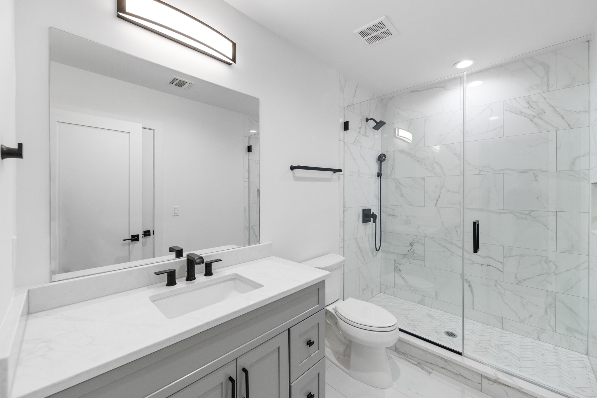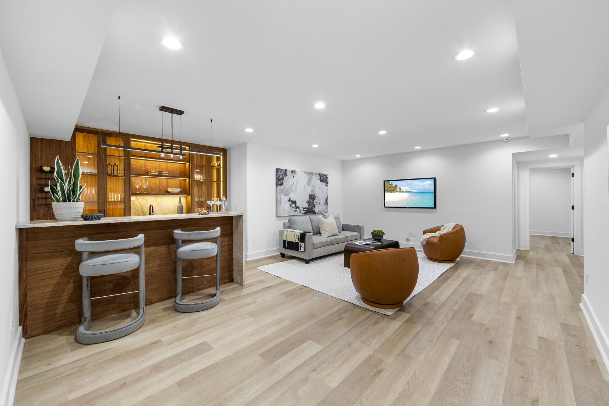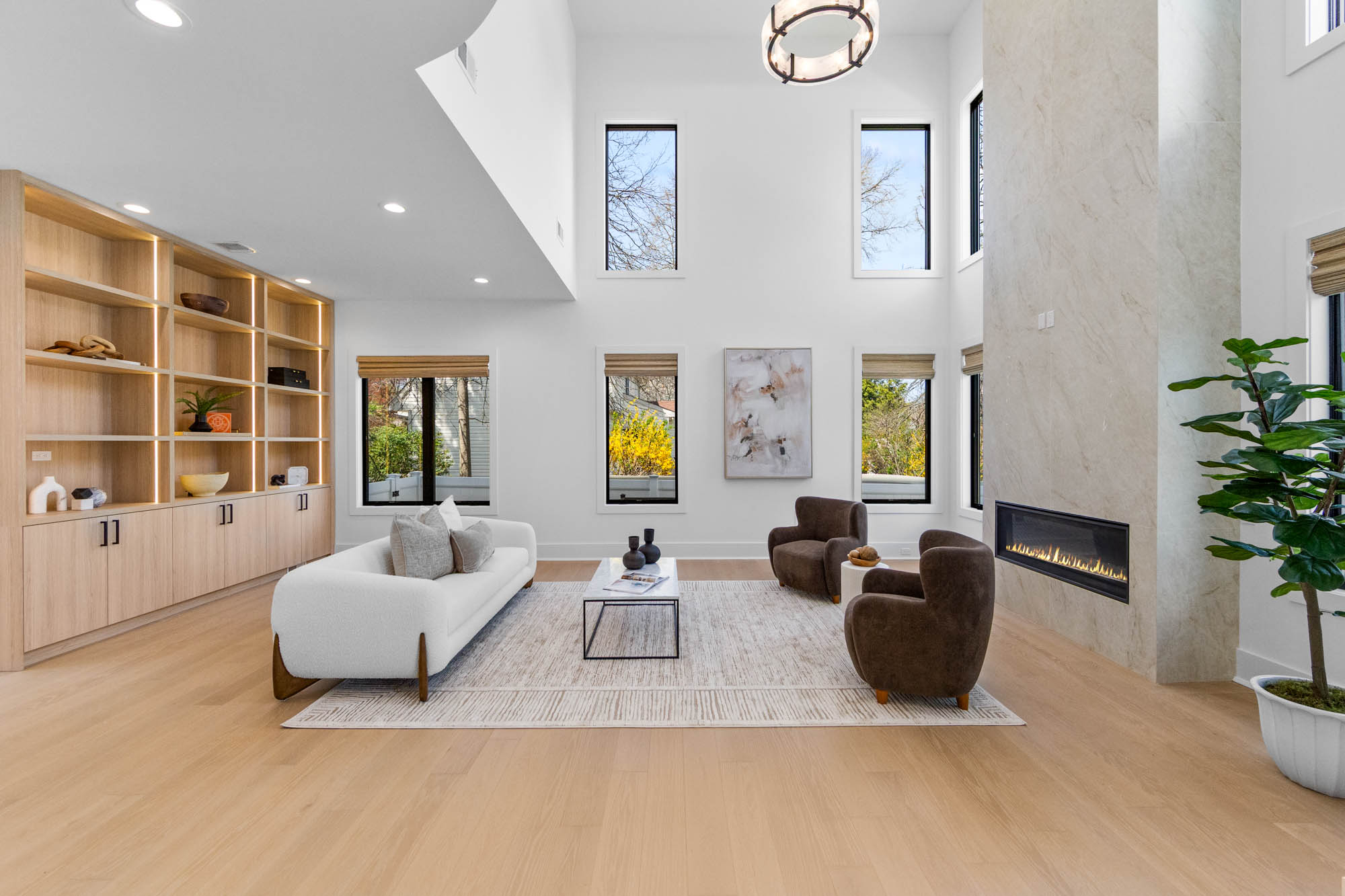 The finished lower level adds valuable living and entertainment space with a home theater, gym, custom bar, and generous storage. Additional features include a multi-zone sprinkler system, central vacuum, and oversized two-car garage. Conveniently located near local schools, parks, shopping, and transportation, 163 Delmar combines new construction quality, modern design, and everyday functionality in a prime residential setting.