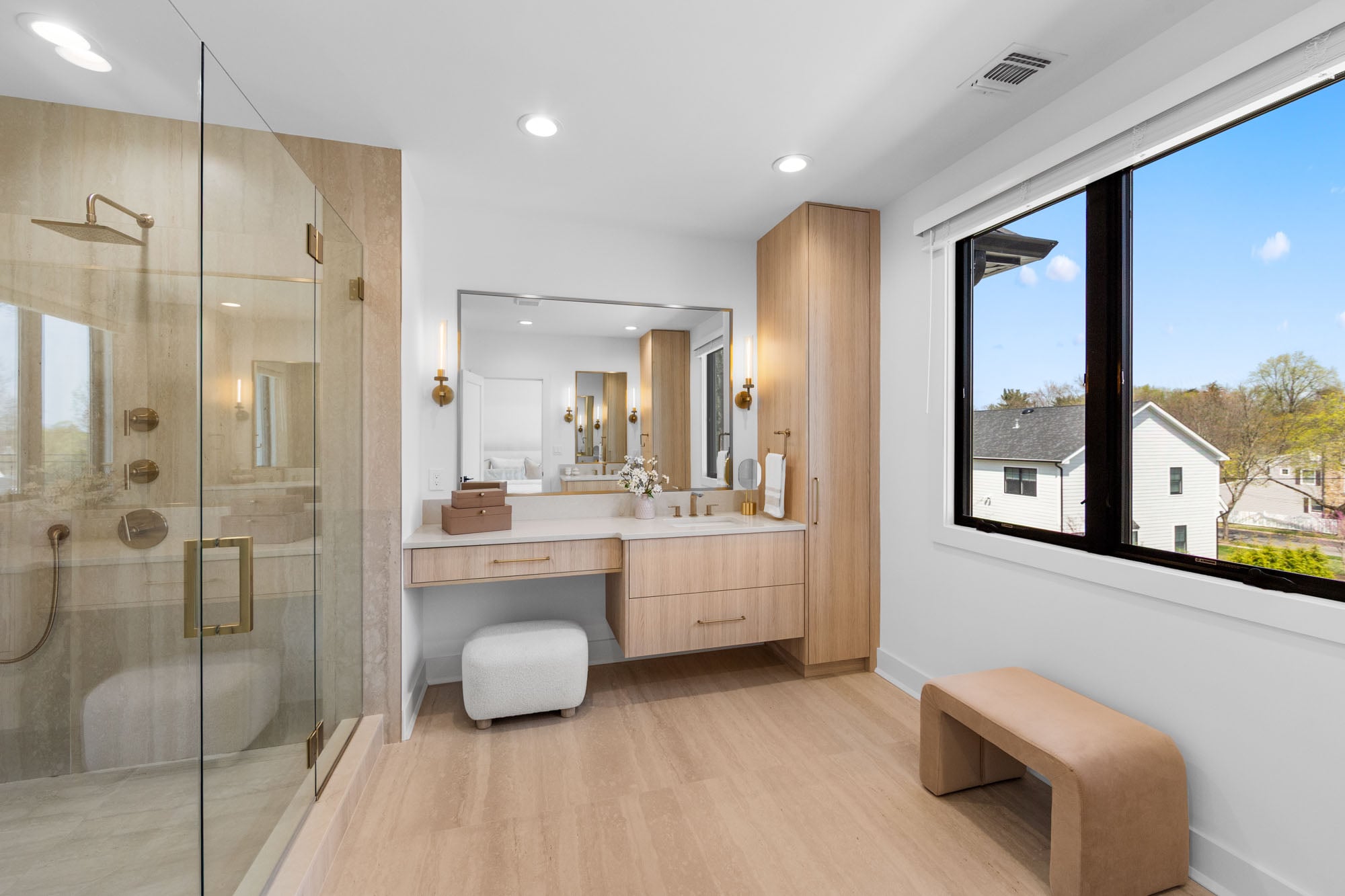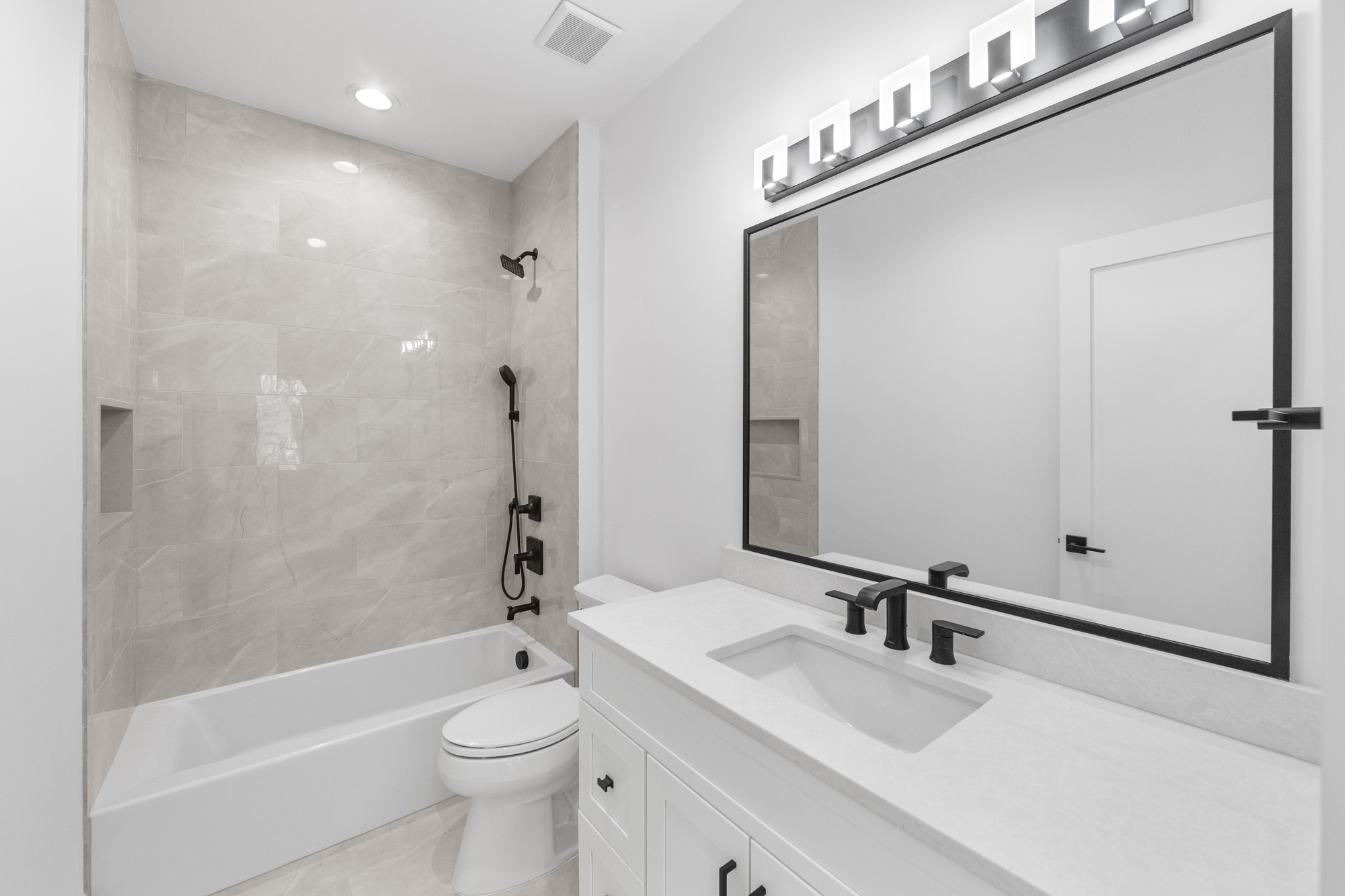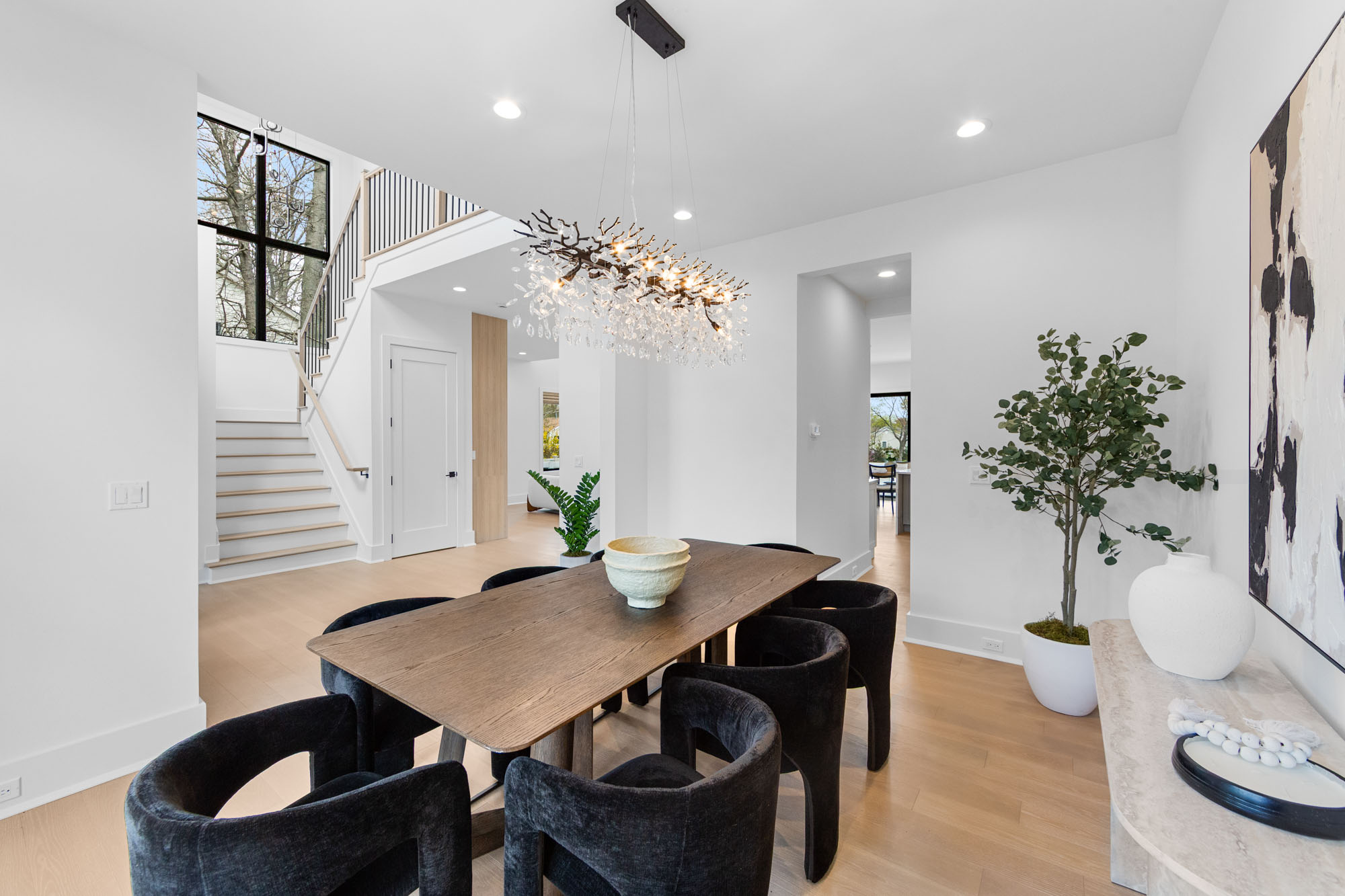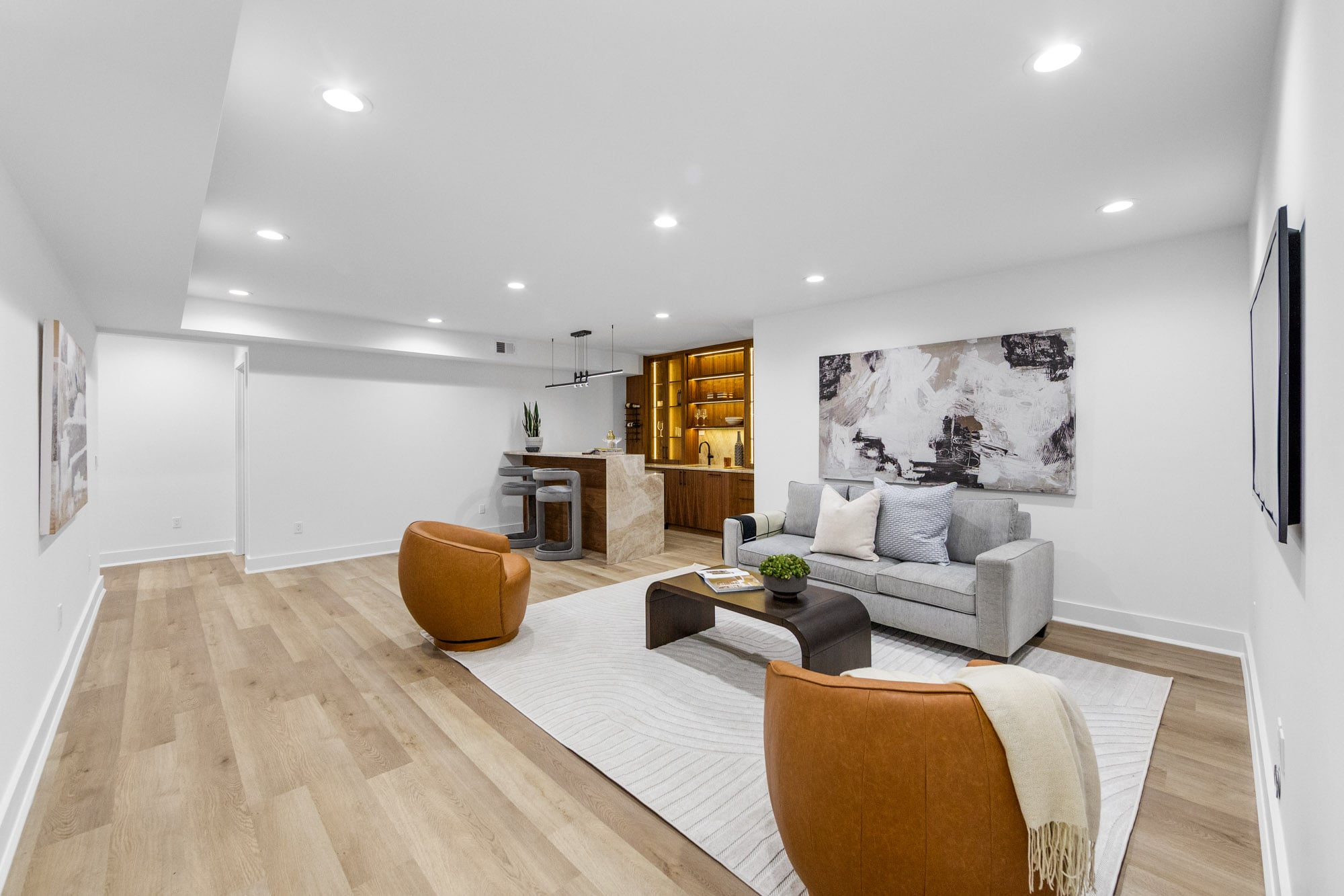 The finished lower level adds valuable living and entertainment space with a home theater, gym, custom bar, and generous storage. Additional features include a multi-zone sprinkler system, central vacuum, and oversized two-car garage. Conveniently located near local schools, parks, shopping, and transportation, 163 Delmar combines new construction quality, modern design, and everyday functionality in a prime residential setting.