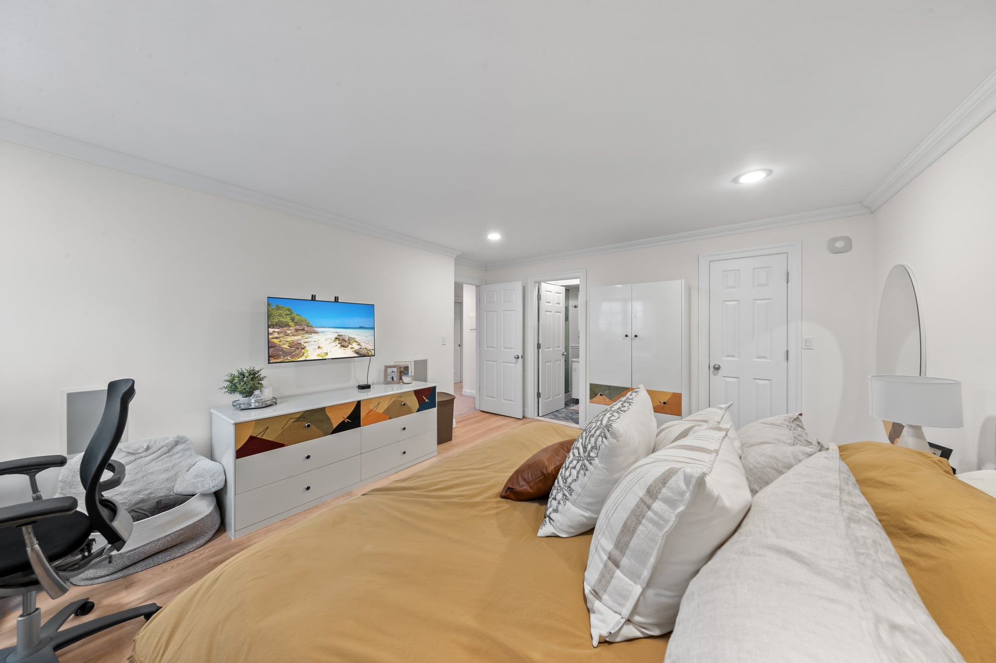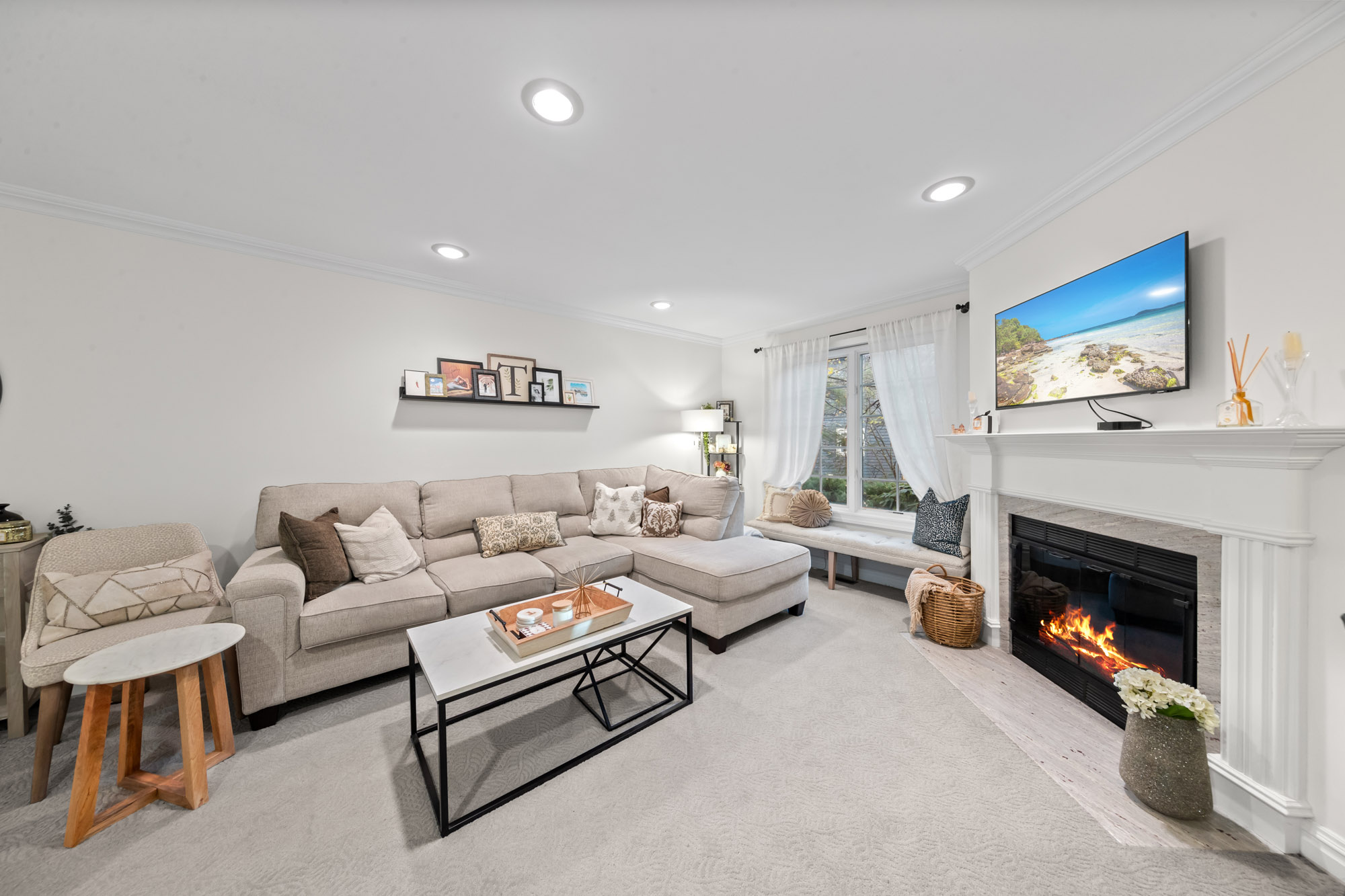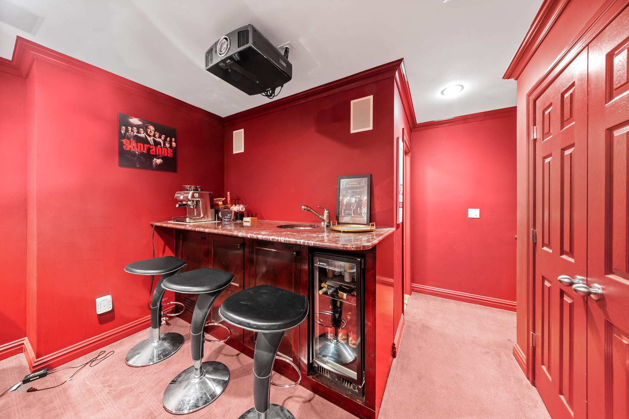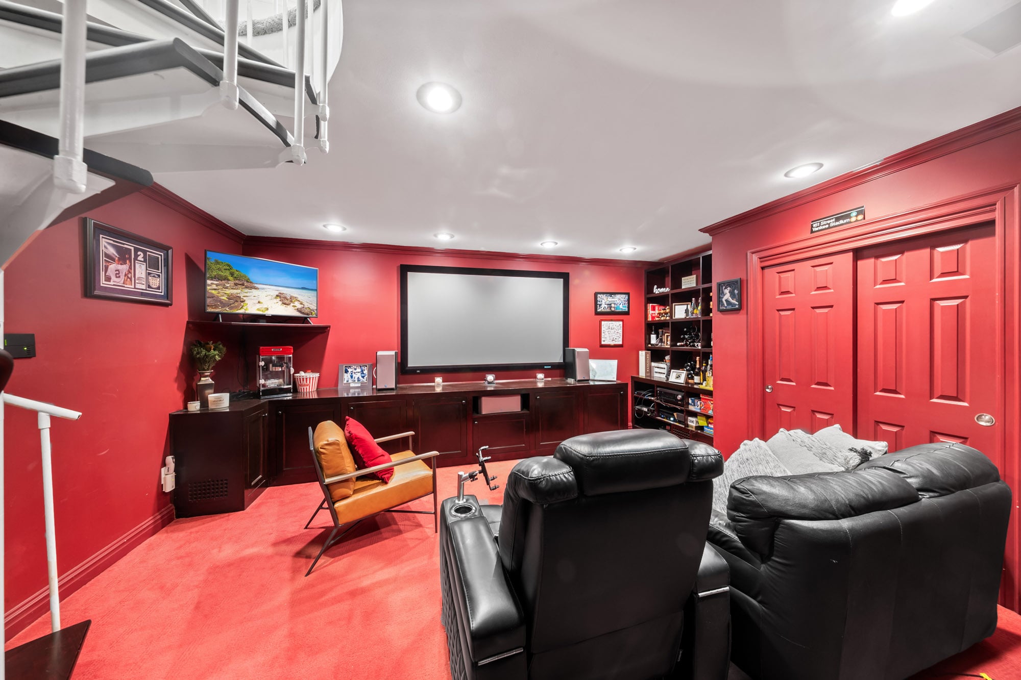 The fully finished lower level is designed for entertaining and relaxation, featuring a private theater with an 82-inch screen, seven-speaker surround sound system, and a built-in bar. Additional highlights include in-unit laundry, abundant storage, a private one-car garage with interior access, and an array of smart home features, including integrated Sonos speakers throughout the home.