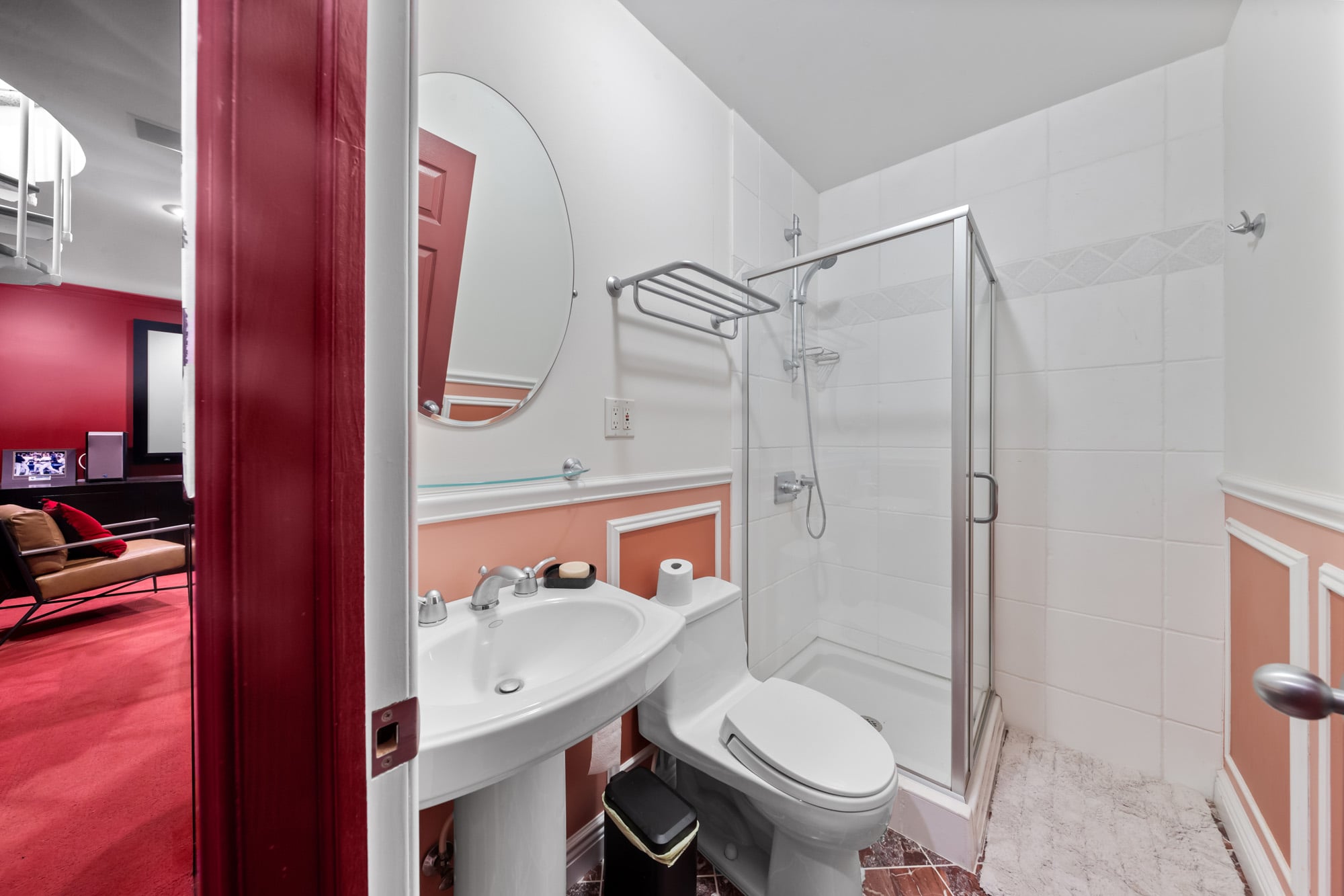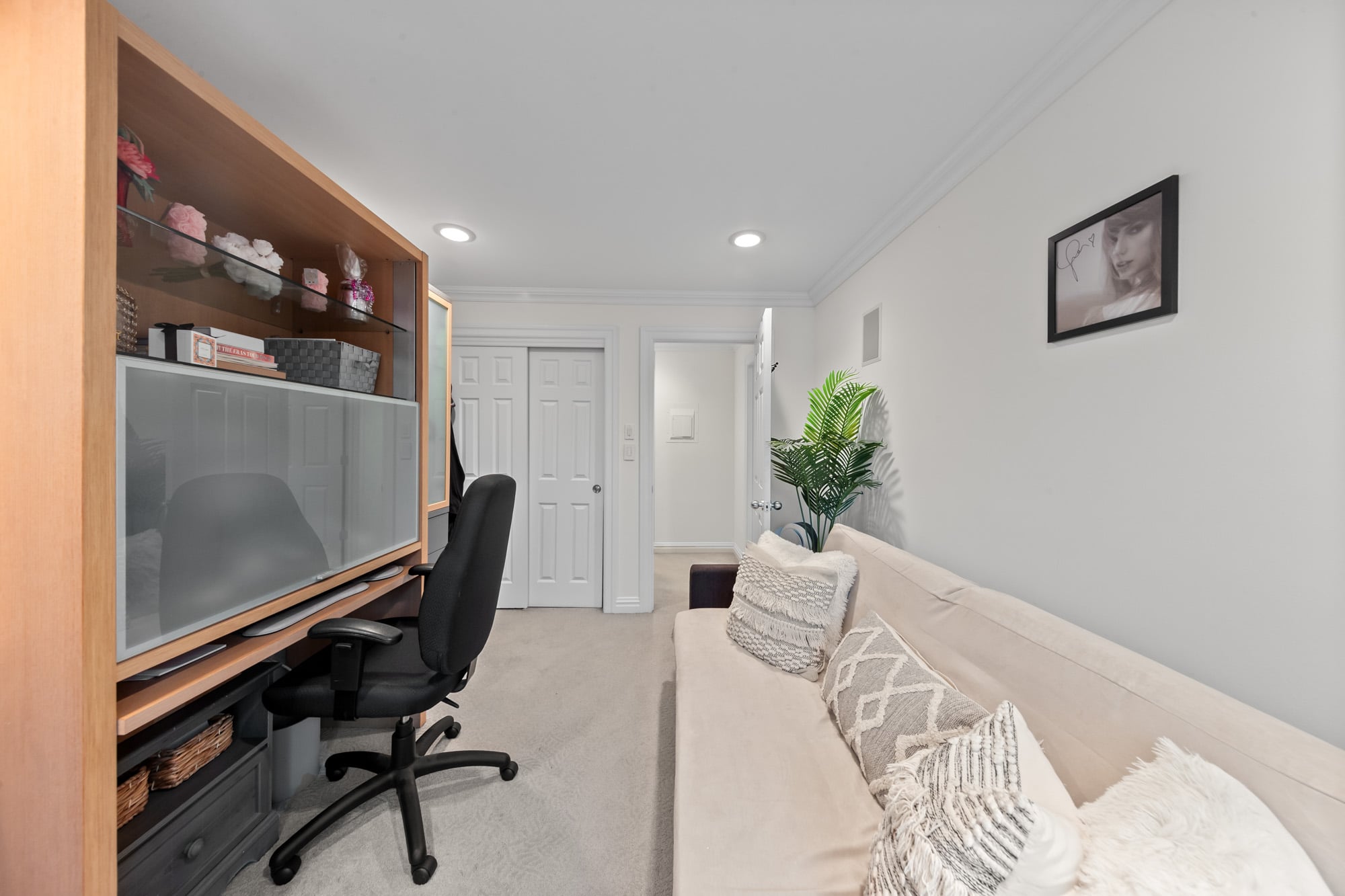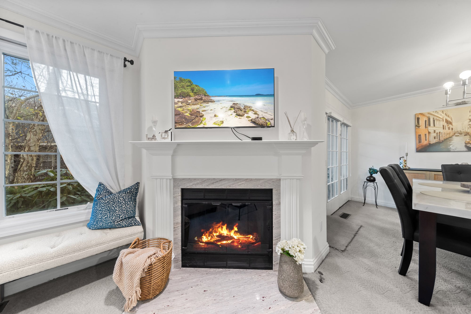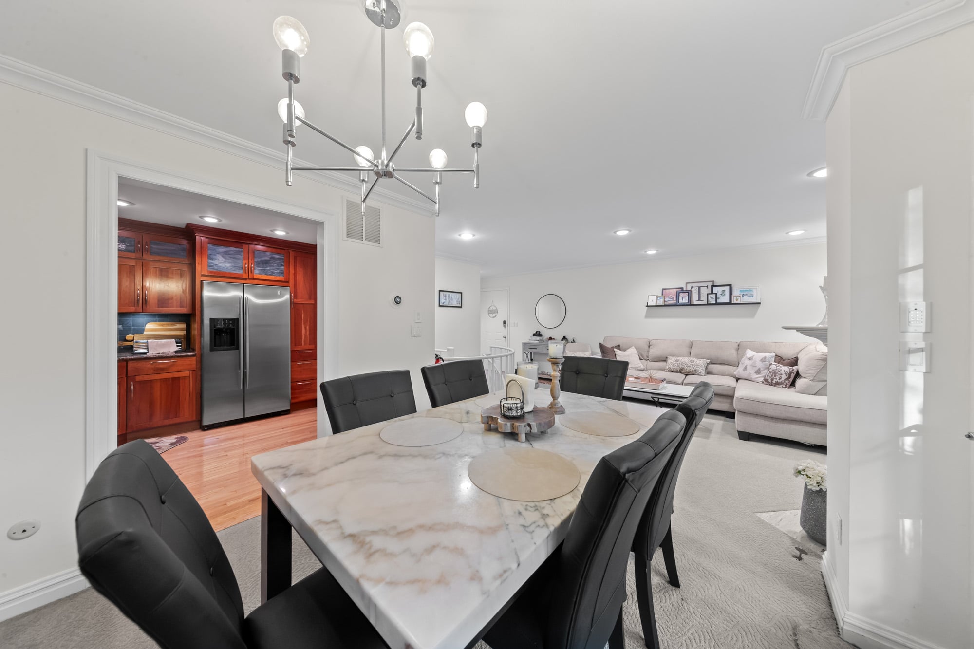 The fully finished lower level is designed for entertaining and relaxation, featuring a private theater with an 82-inch screen, seven-speaker surround sound system, and a built-in bar. Additional highlights include in-unit laundry, abundant storage, a private one-car garage with interior access, and an array of smart home features, including integrated Sonos speakers throughout the home.