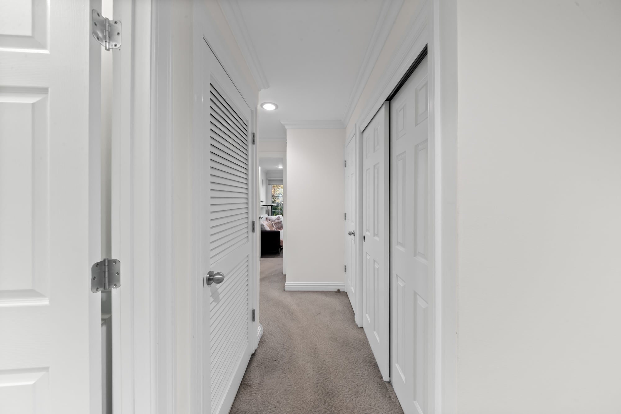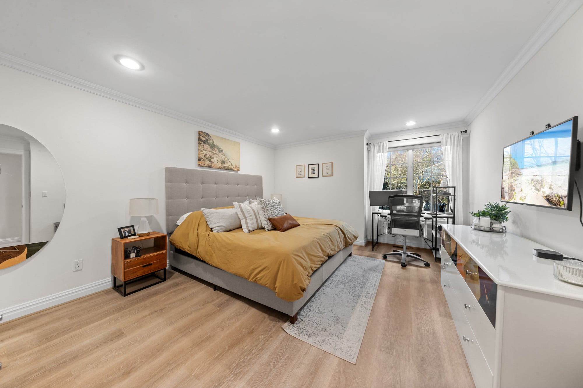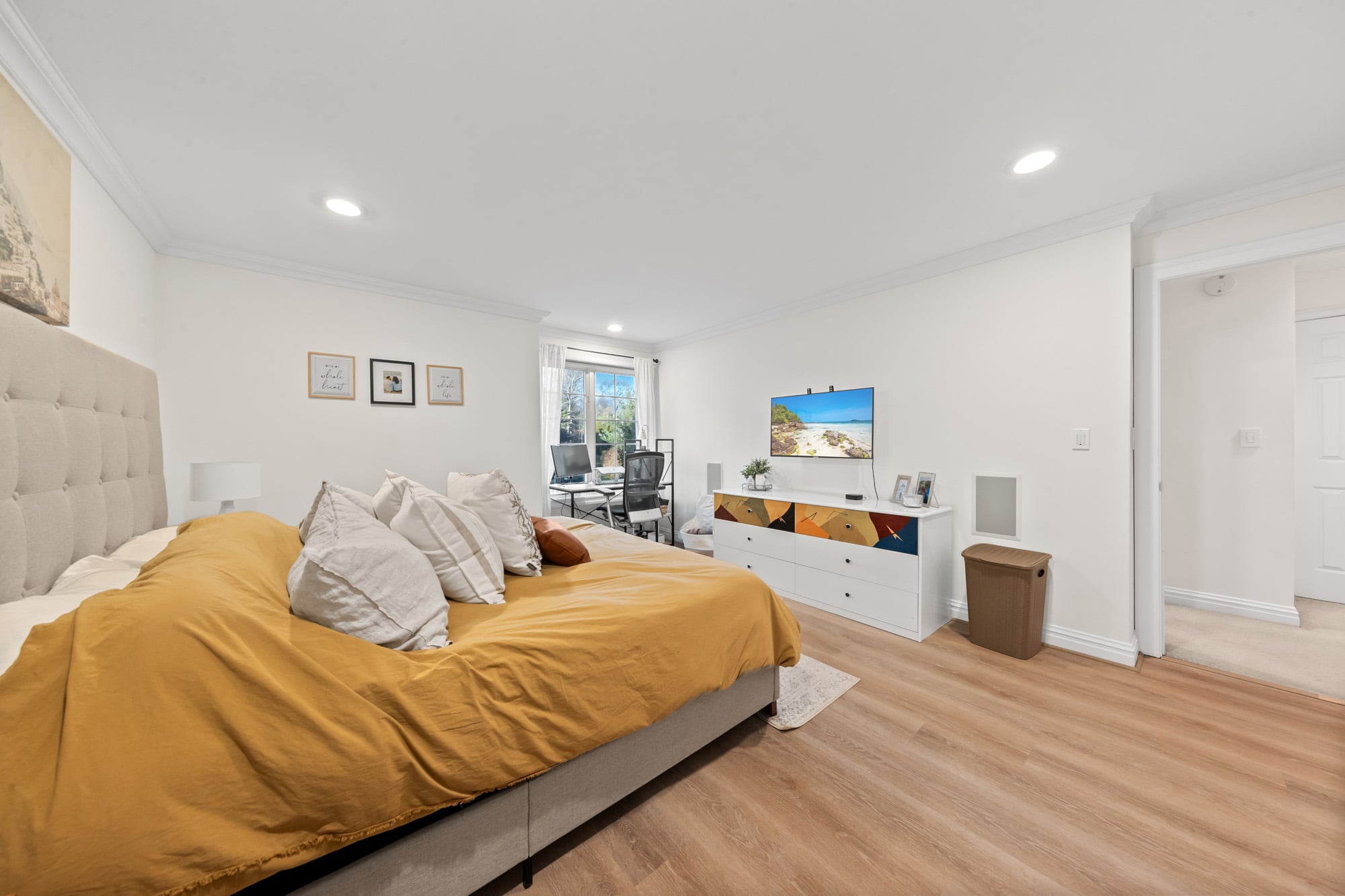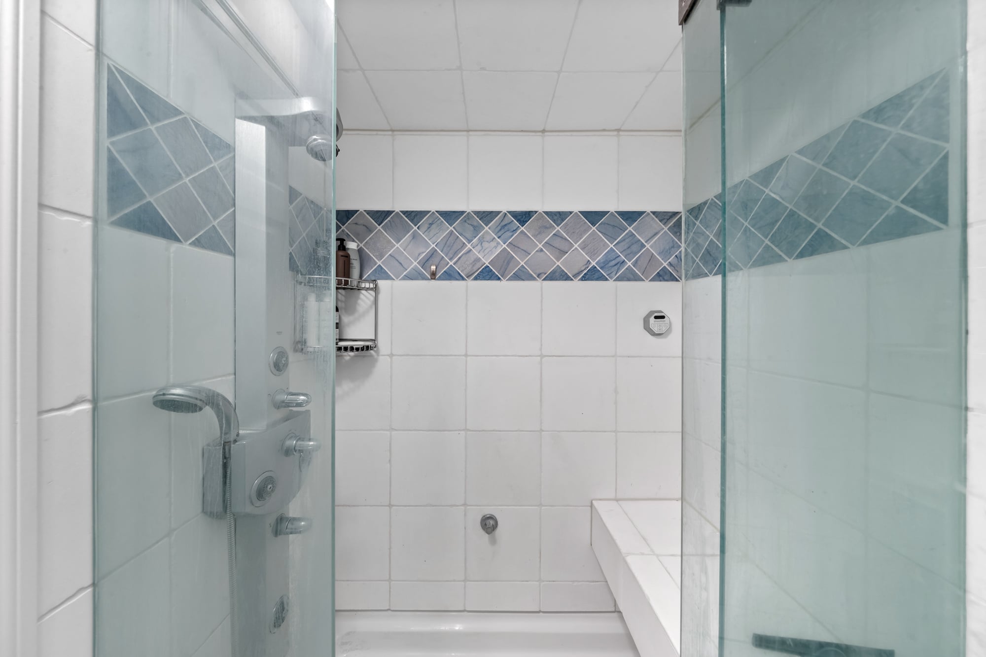 The primary suite offers a walk-in closet with custom shelving and a spa-inspired en-suite bathroom complete with a luxurious steam shower. A second bedroom provides flexibility for guests, a home office, or additional living space.
