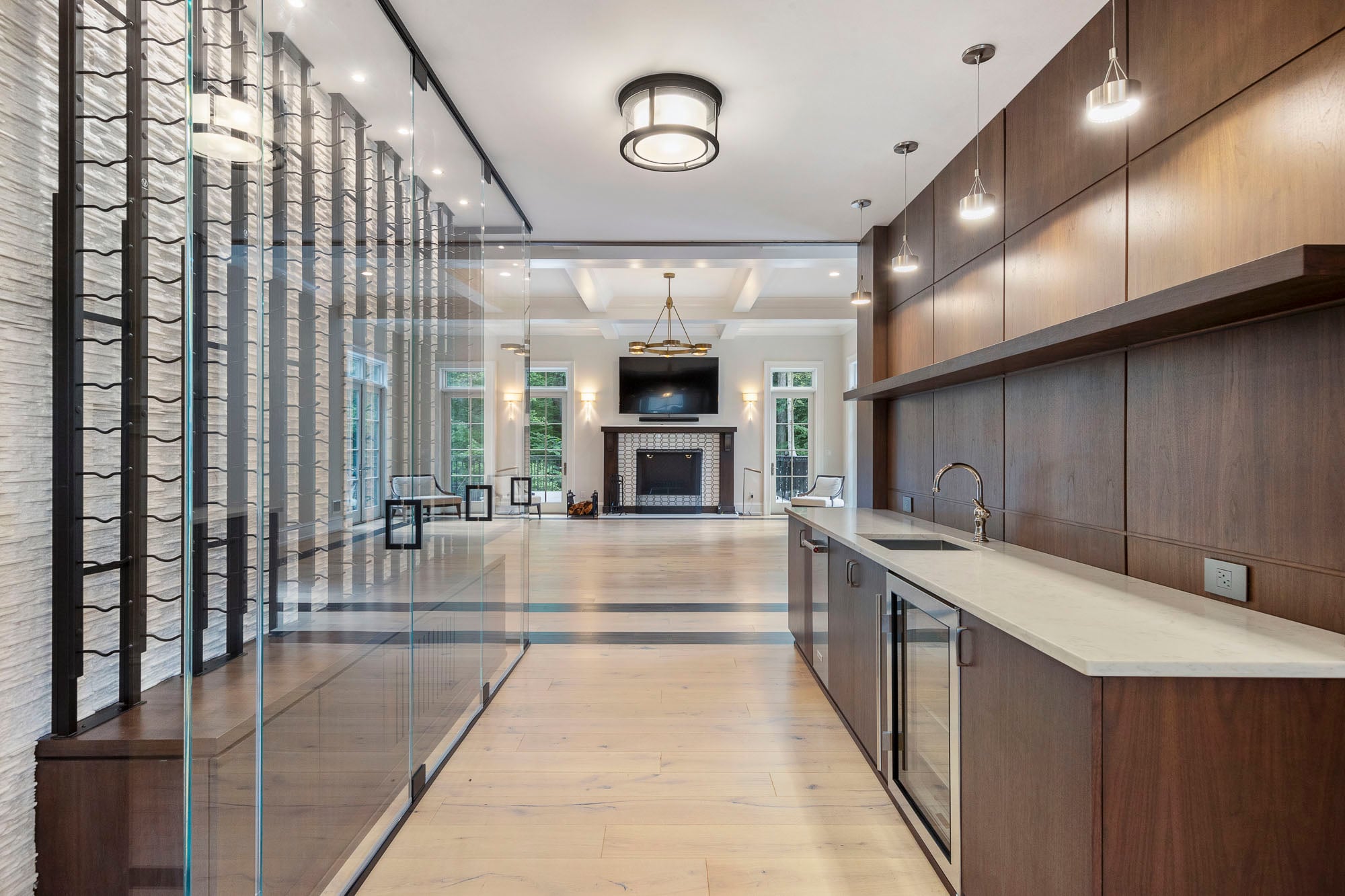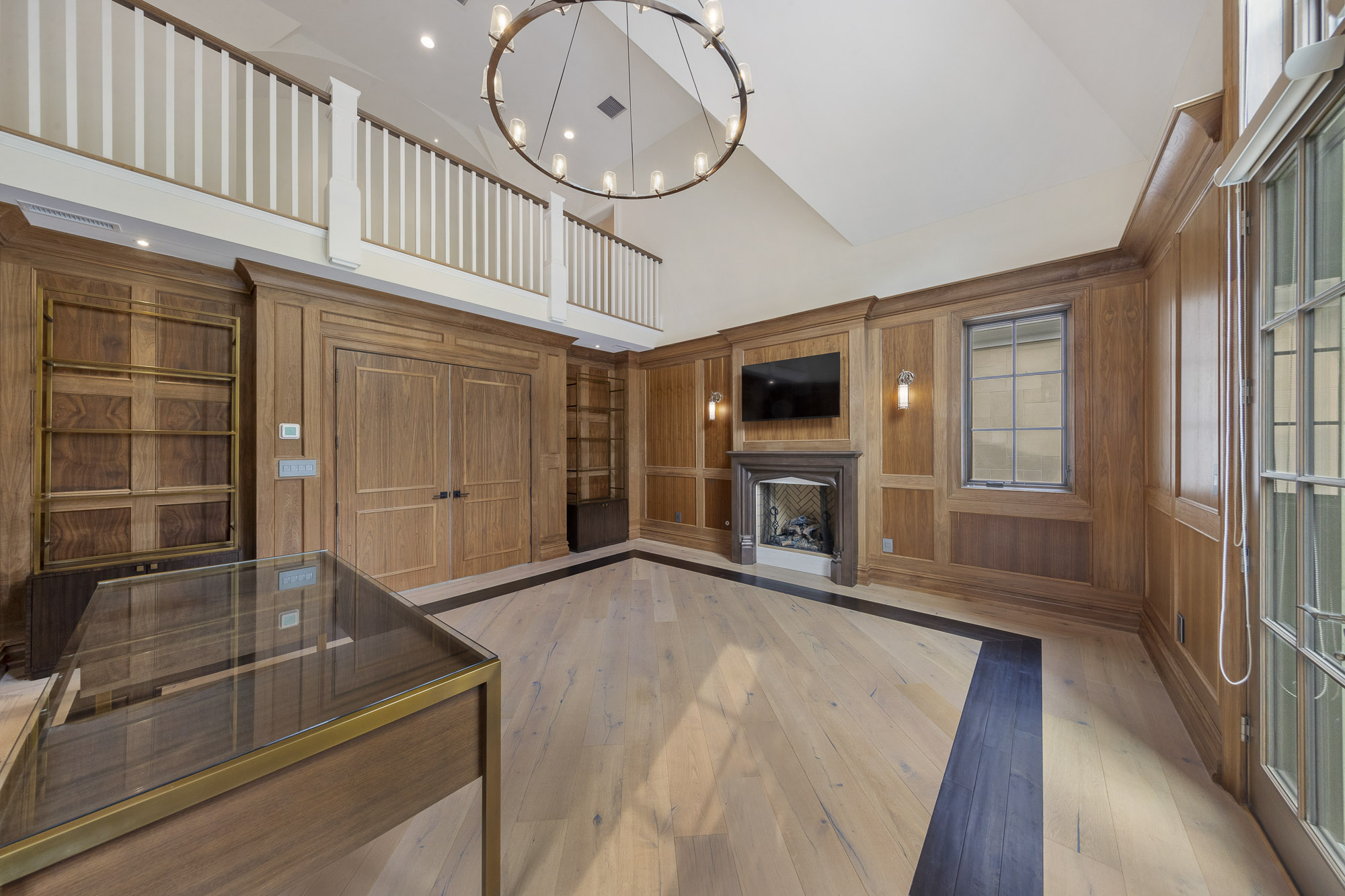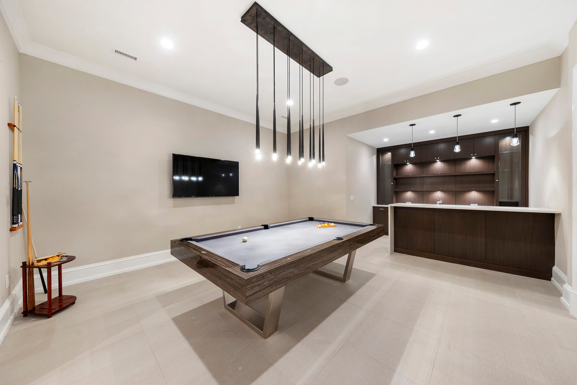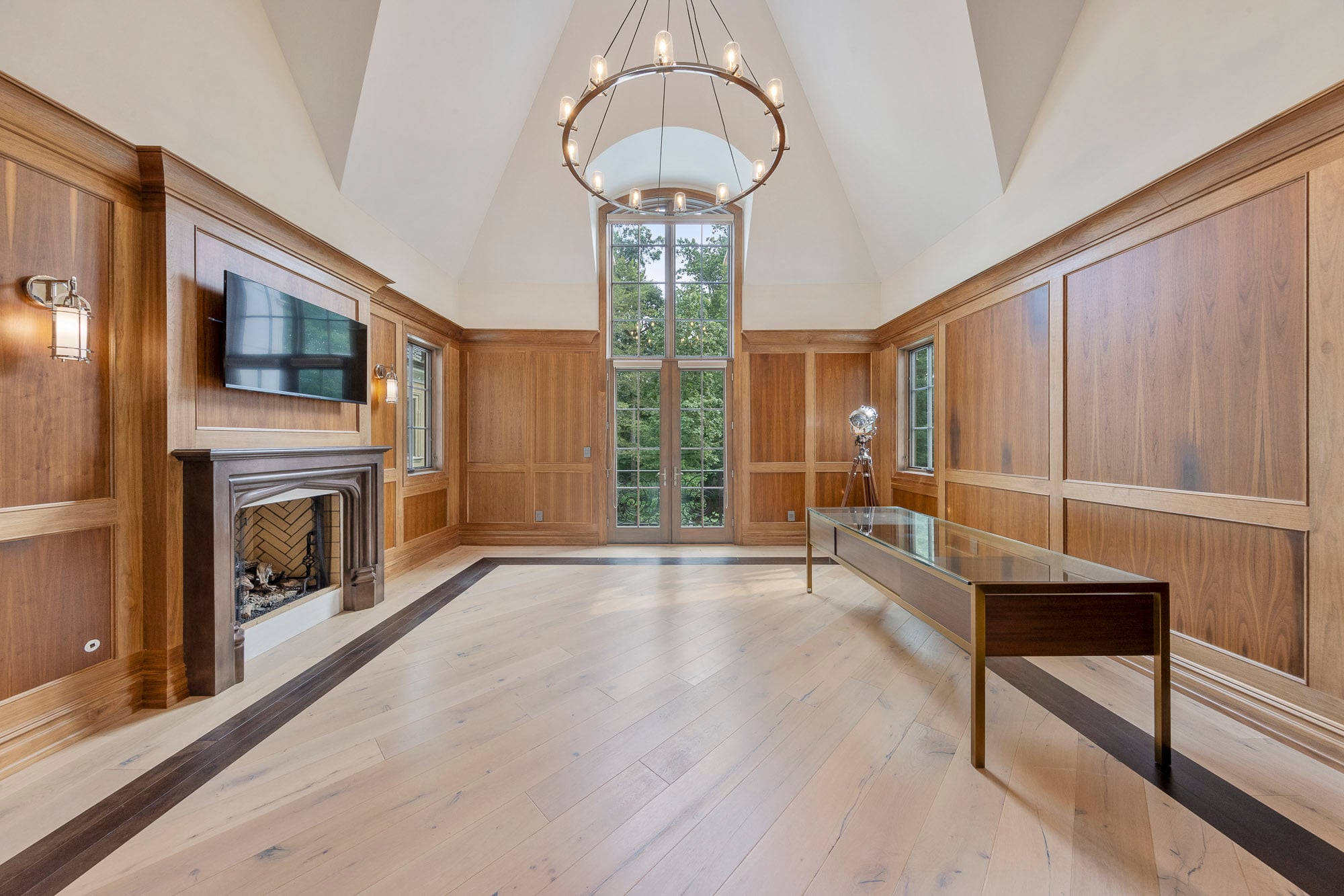 The main level features a grand kitchen with breakfast room and butler’s pantry, along with a music room, formal dining room, and a great room anchored by a wine bar, plus a guest suite. Upstairs, a richly appointed library and five bedroom suites include a standout primary suite with his-and-her bathrooms and expansive custom closet space. The amenity-rich lower level is built for lifestyle, offering a theater, spa with jacuzzi and fireplace, gym, massage room, and billiard room with bar, plus an additional guest suite.