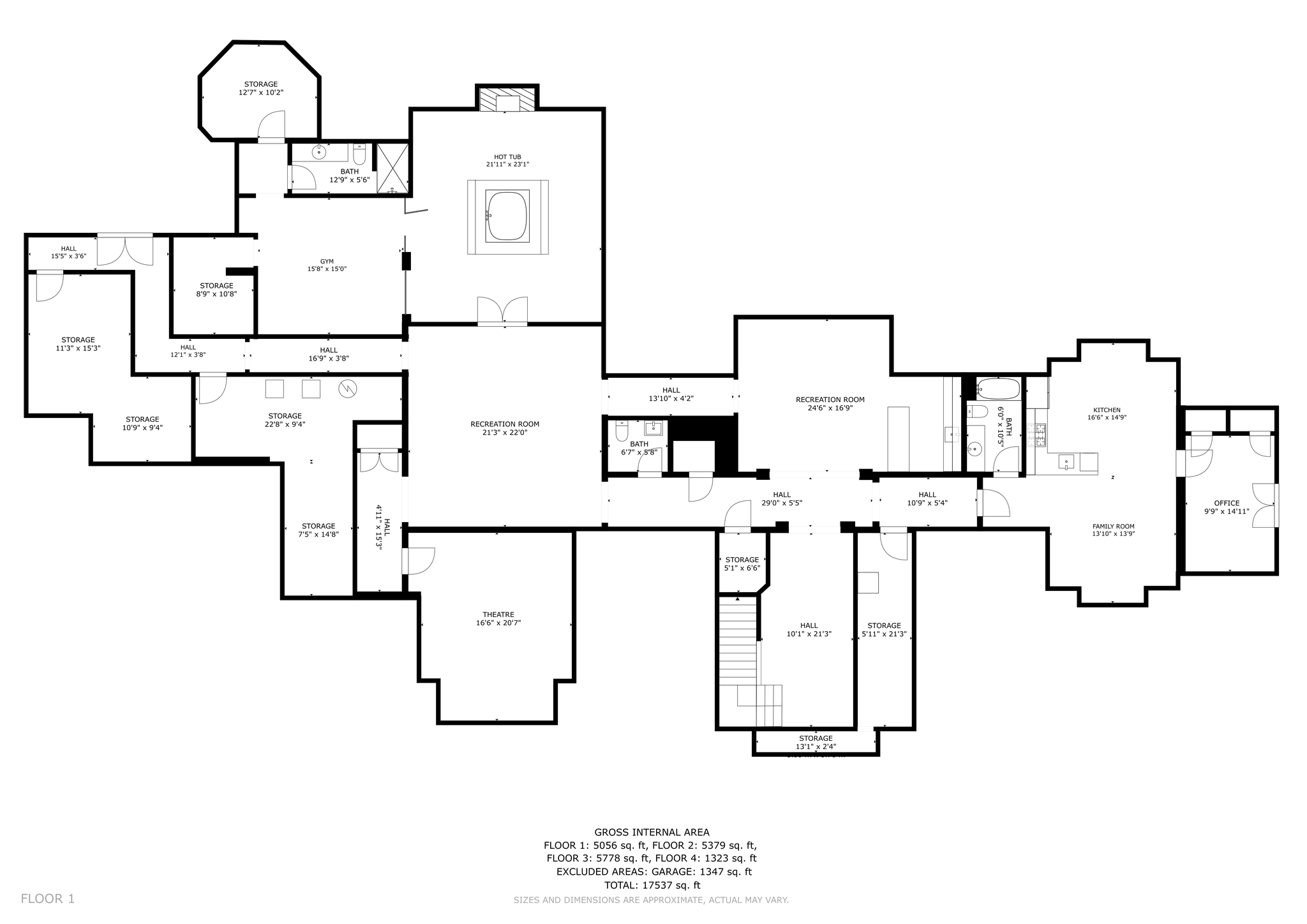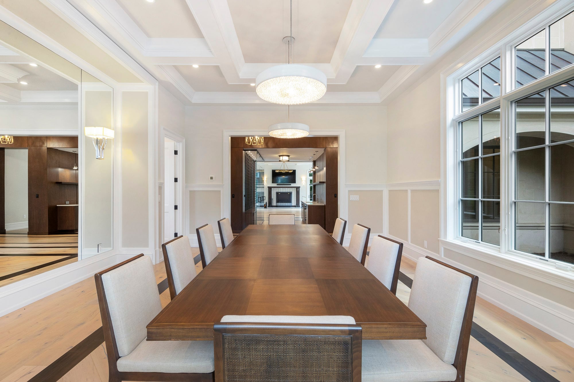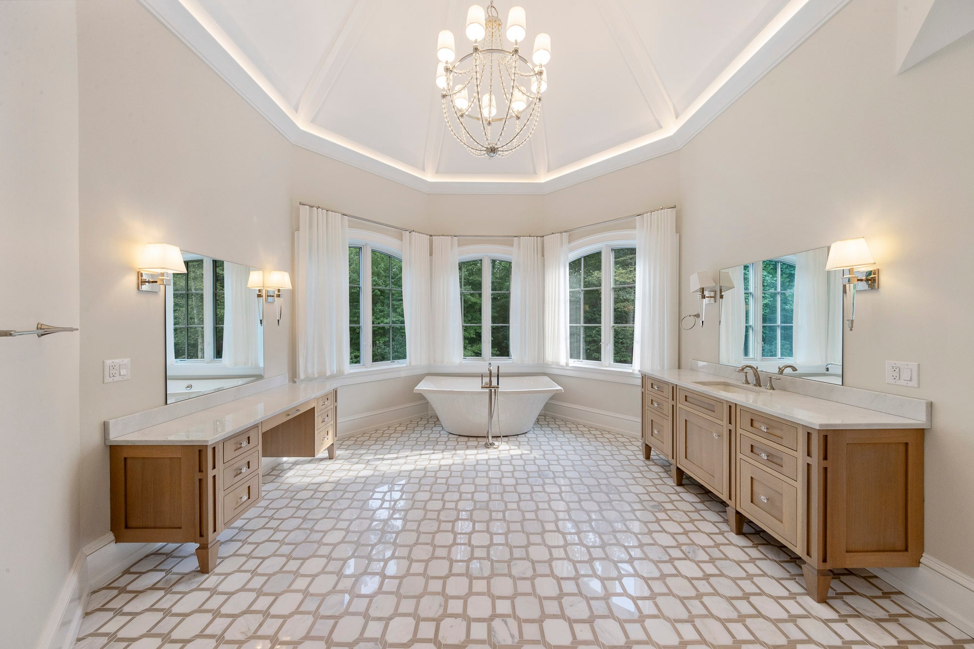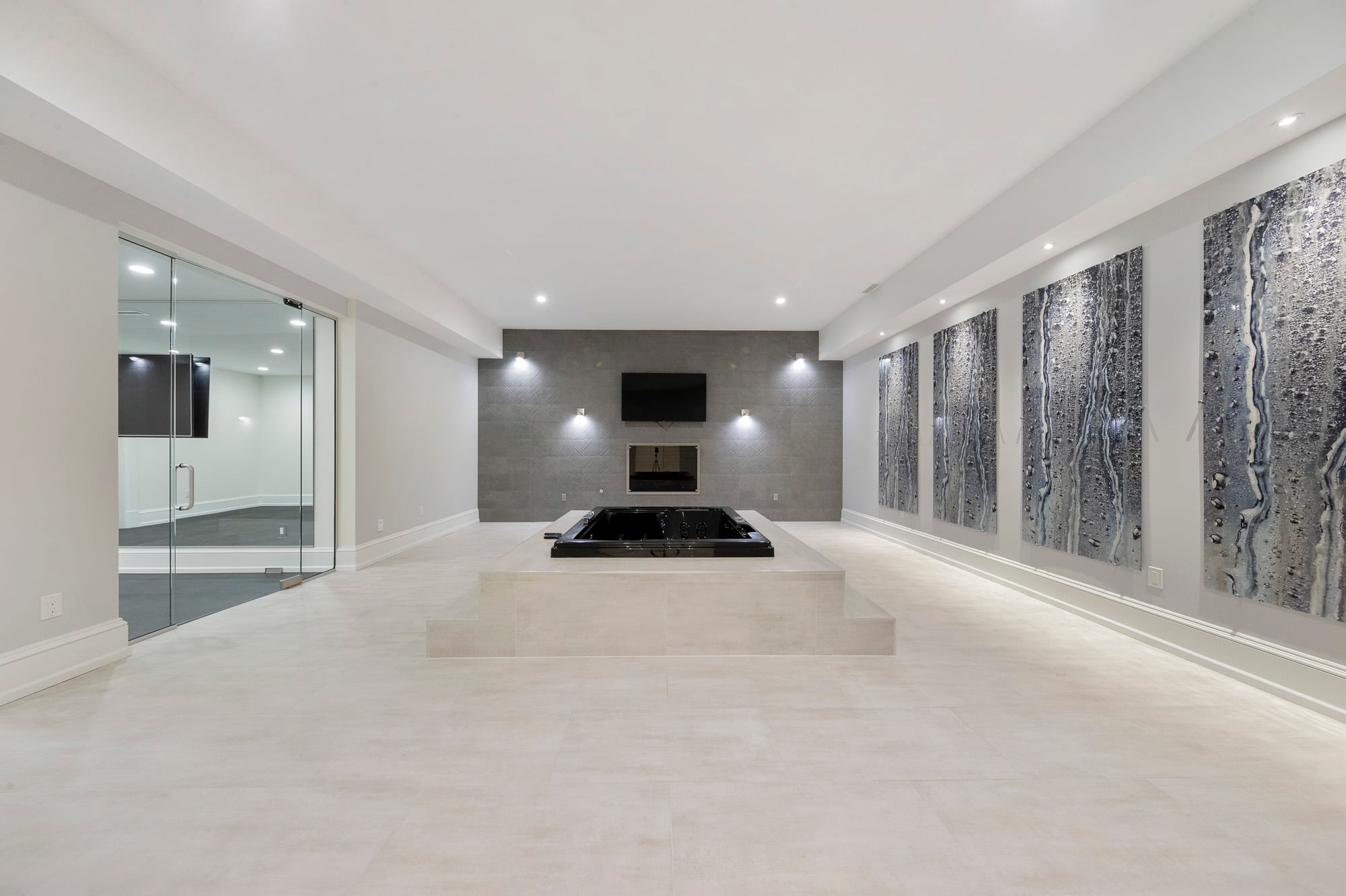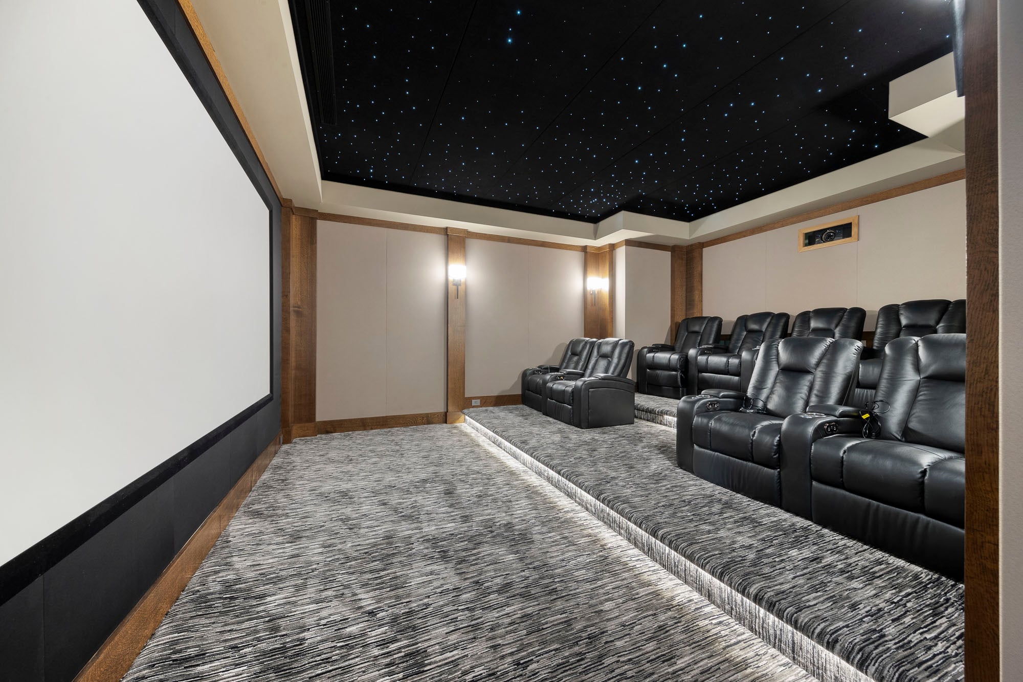 The main level features a grand kitchen with breakfast room and butler’s pantry, along with a music room, formal dining room, and a great room anchored by a wine bar, plus a guest suite. Upstairs, a richly appointed library and five bedroom suites include a standout primary suite with his-and-her bathrooms and expansive custom closet space. The amenity-rich lower level is built for lifestyle, offering a theater, spa with jacuzzi and fireplace, gym, massage room, and billiard room with bar, plus an additional guest suite.