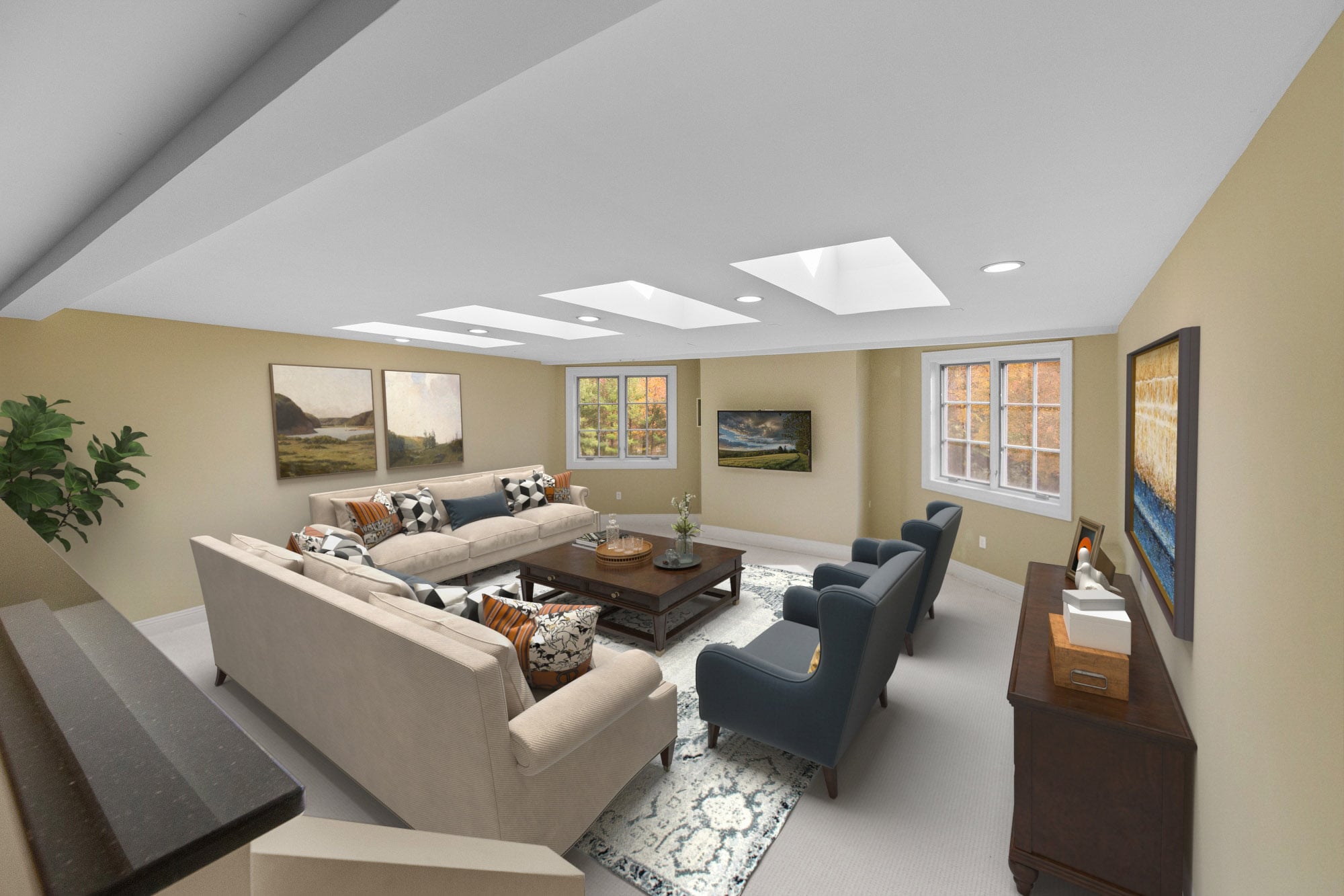 The main level is anchored by a chef’s kitchen equipped with Sub-Zero refrigeration, Wolf double ovens and range top, custom cabinetry, and granite countertops—ideal for both daily living and large-scale entertaining. Formal and casual living spaces flow effortlessly, designed for comfort and sophistication.