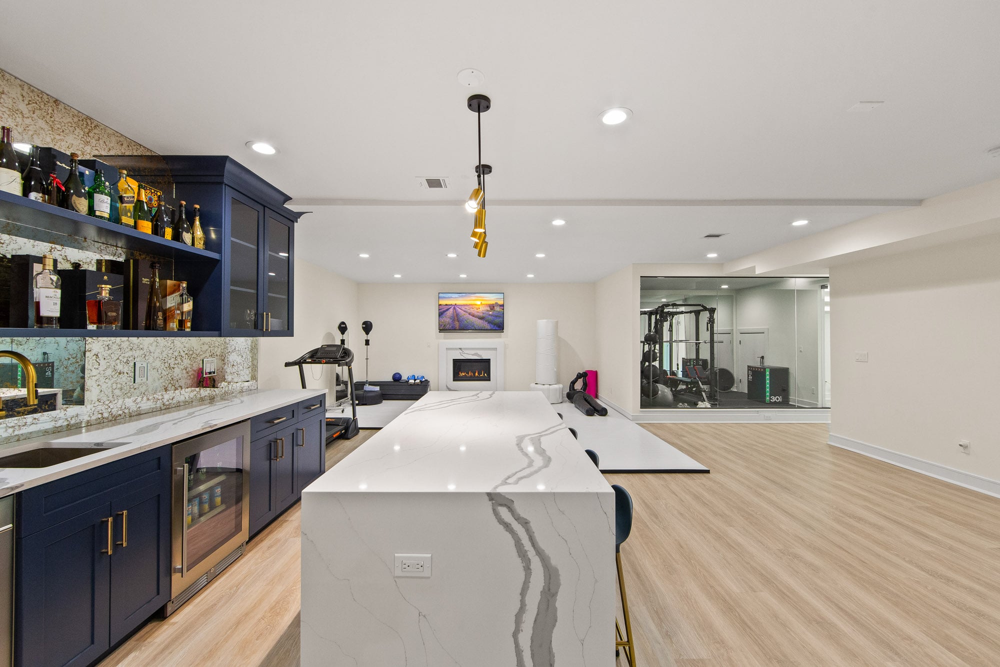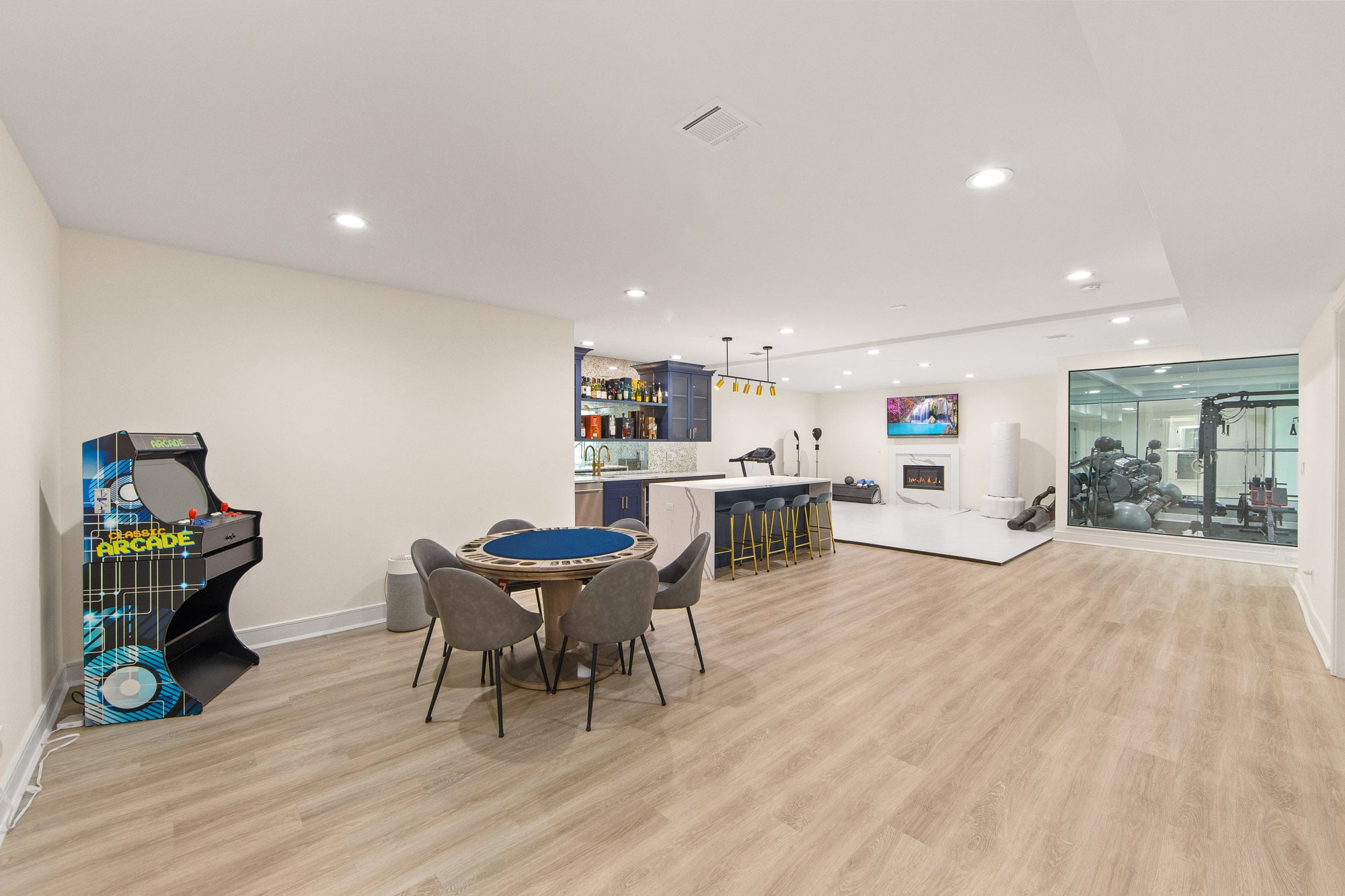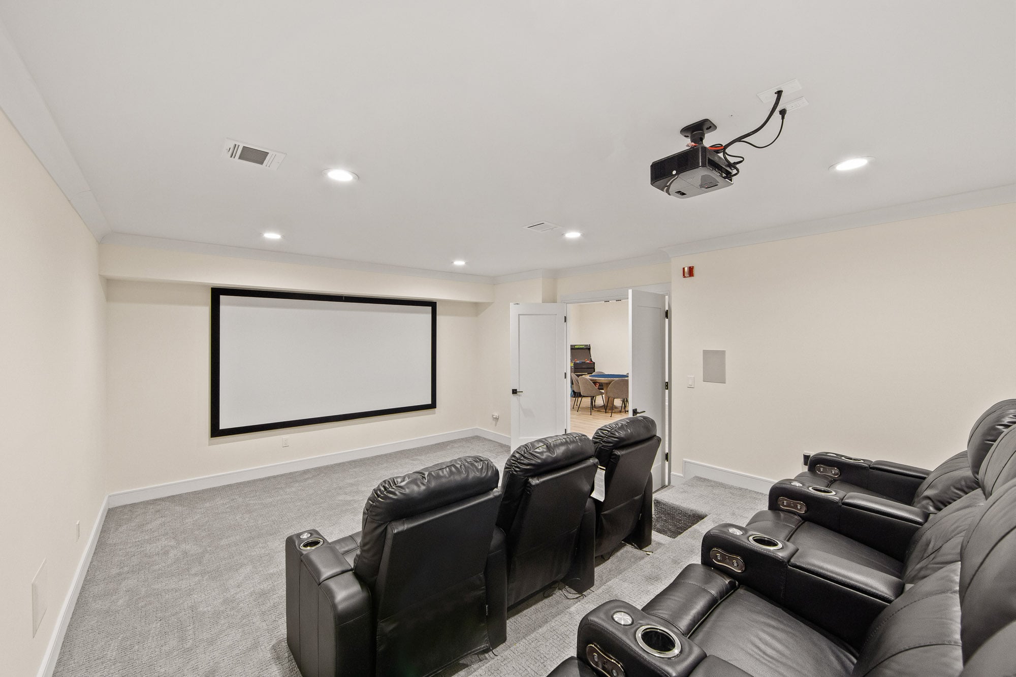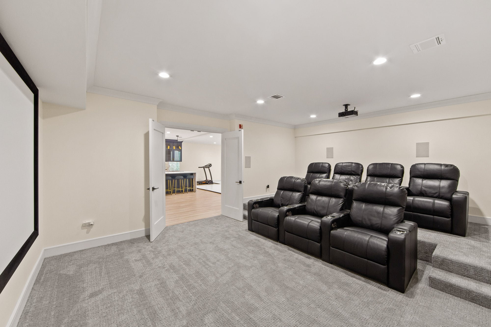 The fully finished lower level is an entertainer’s dream, featuring a private theater, gym, and bar—perfect for recreation and hosting. A stucco exterior and clean architectural lines complete the home’s modern appeal.