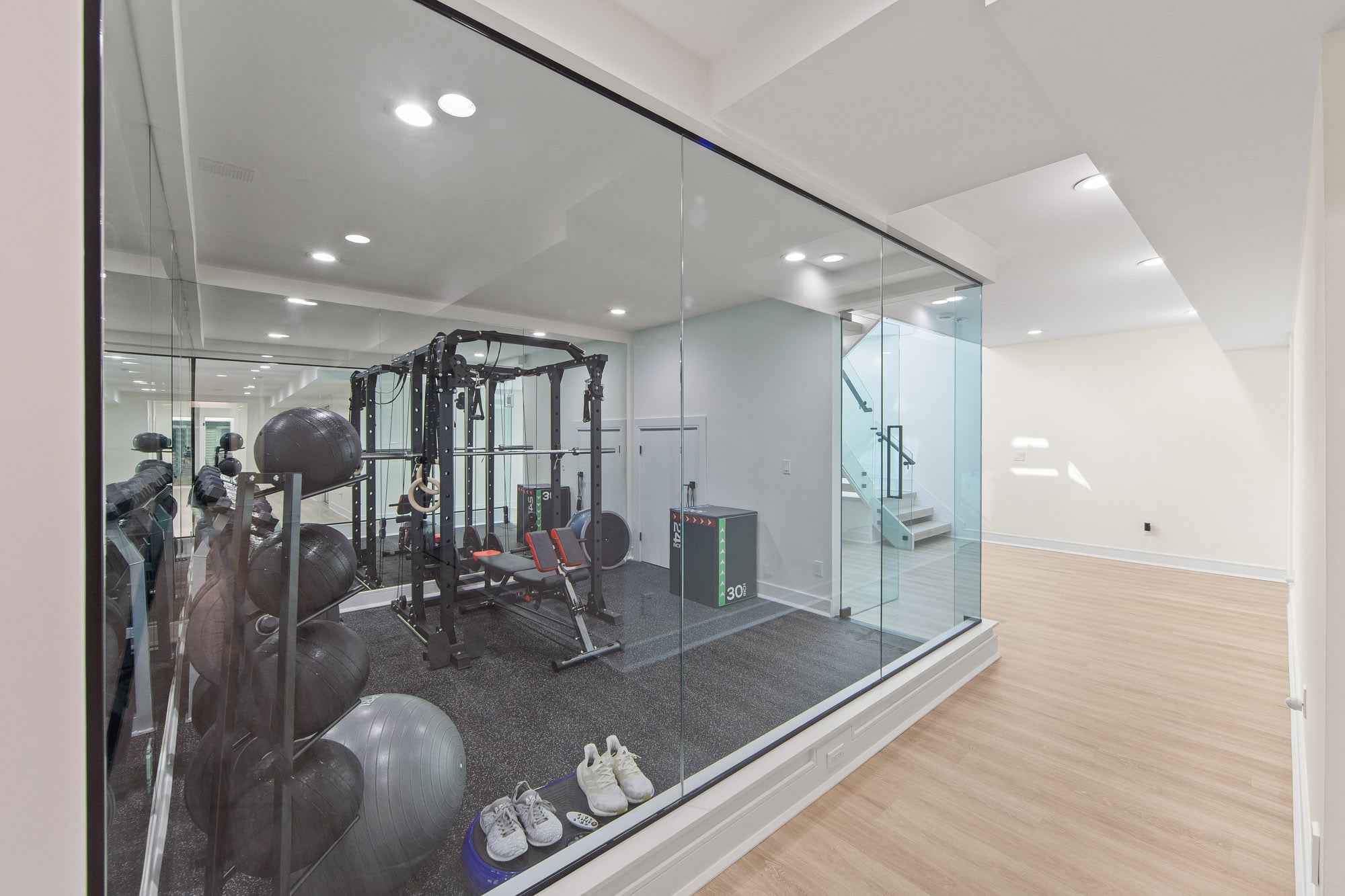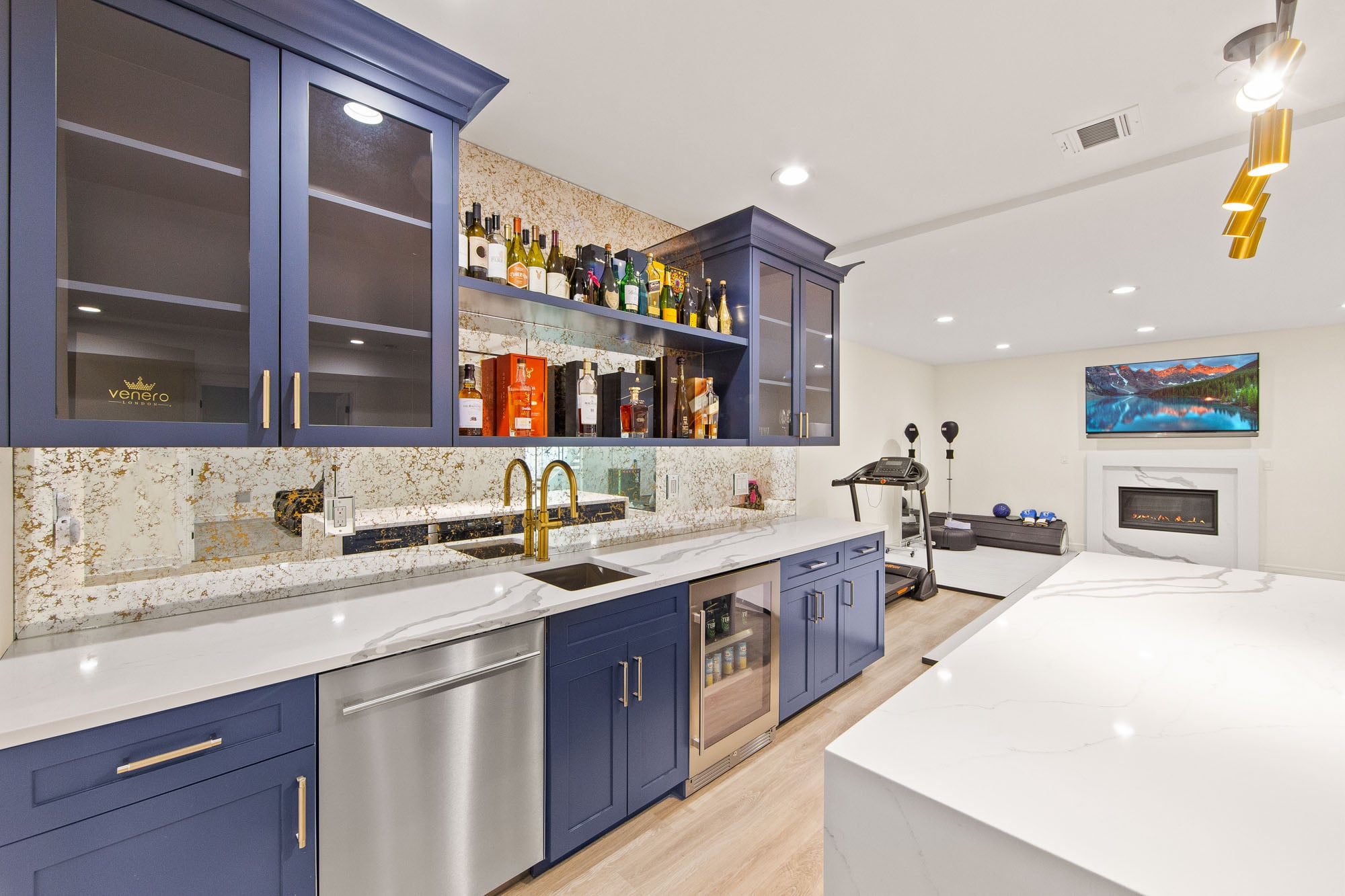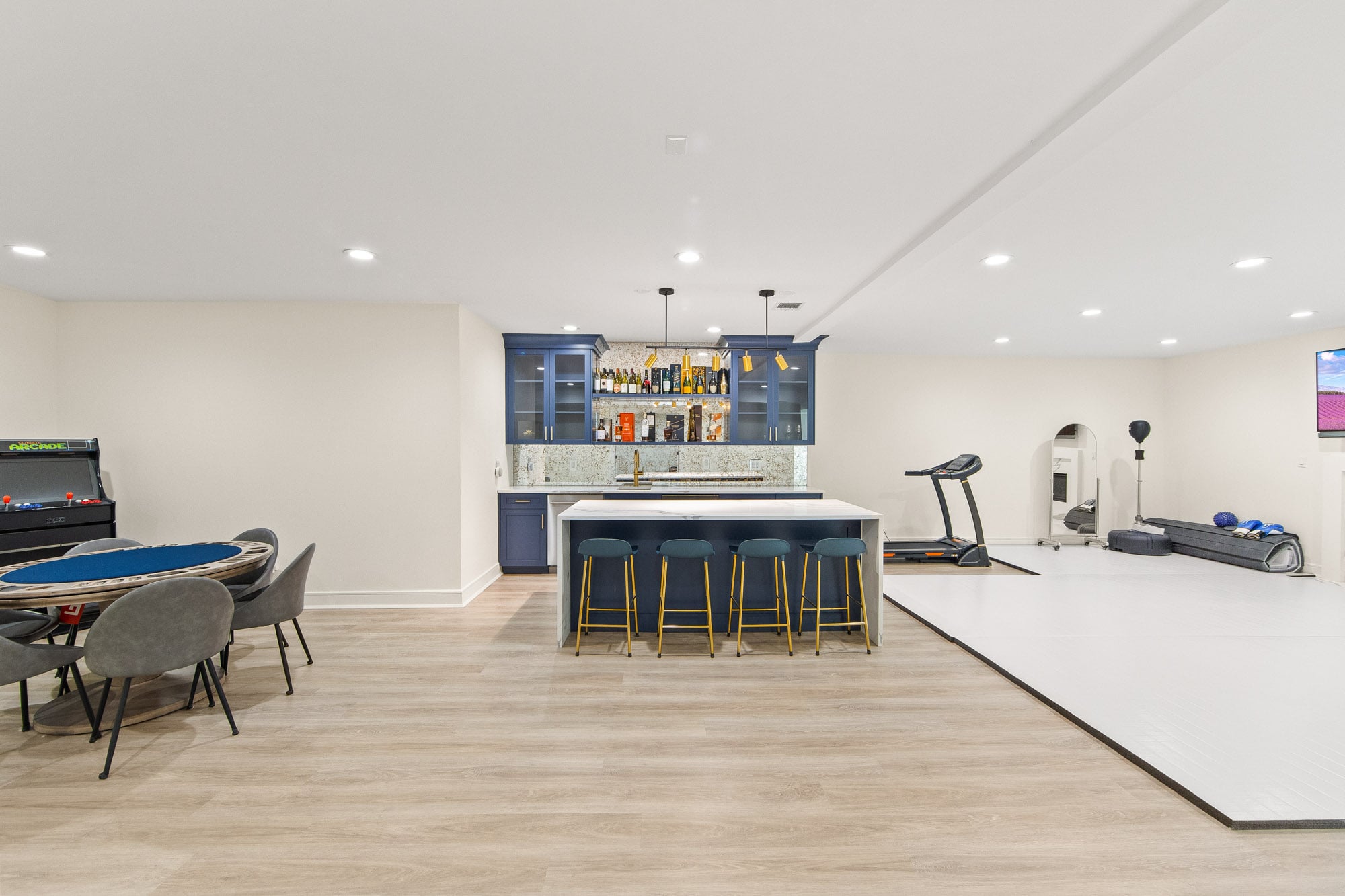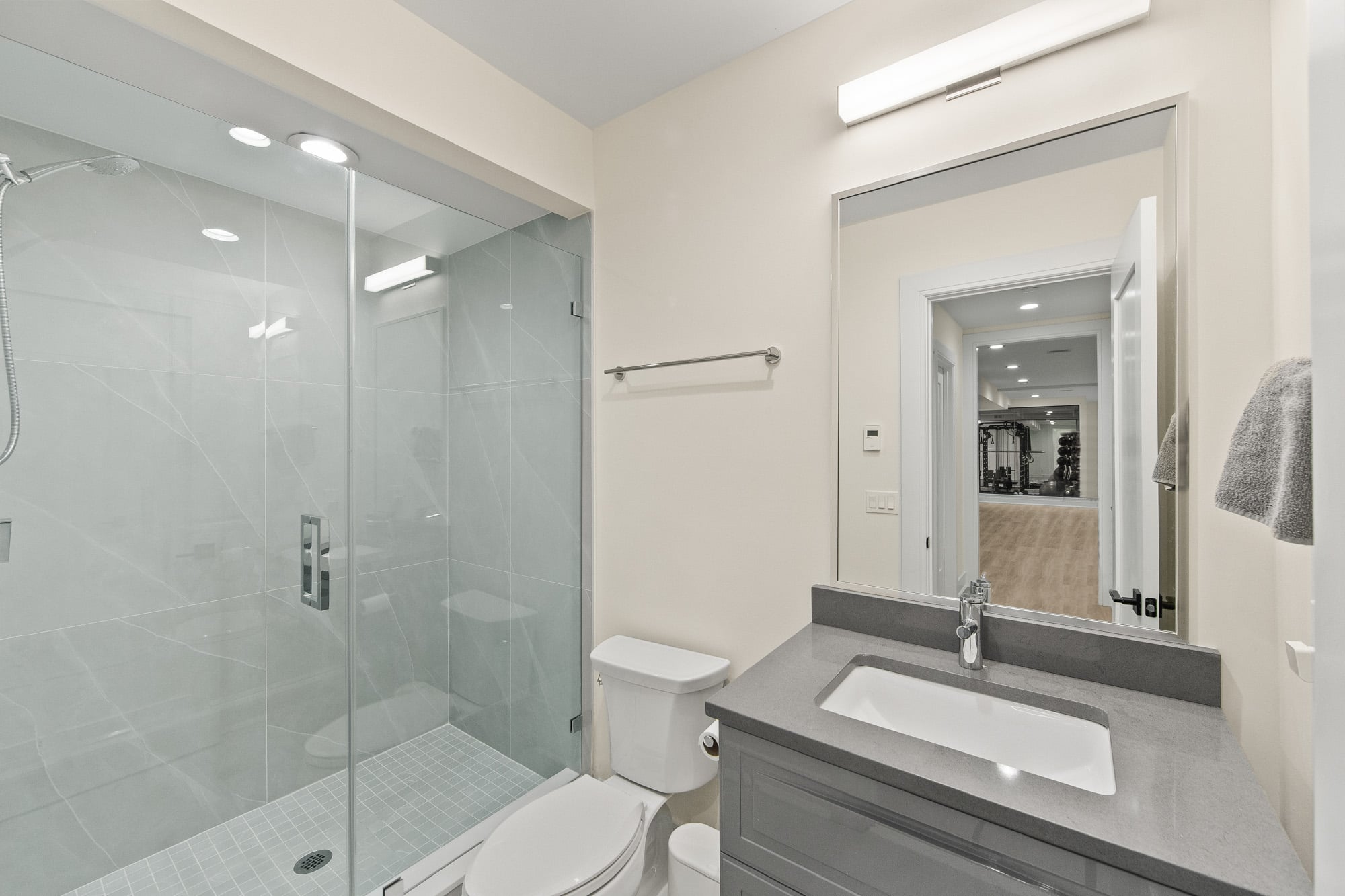 The fully finished lower level is an entertainer’s dream, featuring a private theater, gym, and bar—perfect for recreation and hosting. A stucco exterior and clean architectural lines complete the home’s modern appeal.