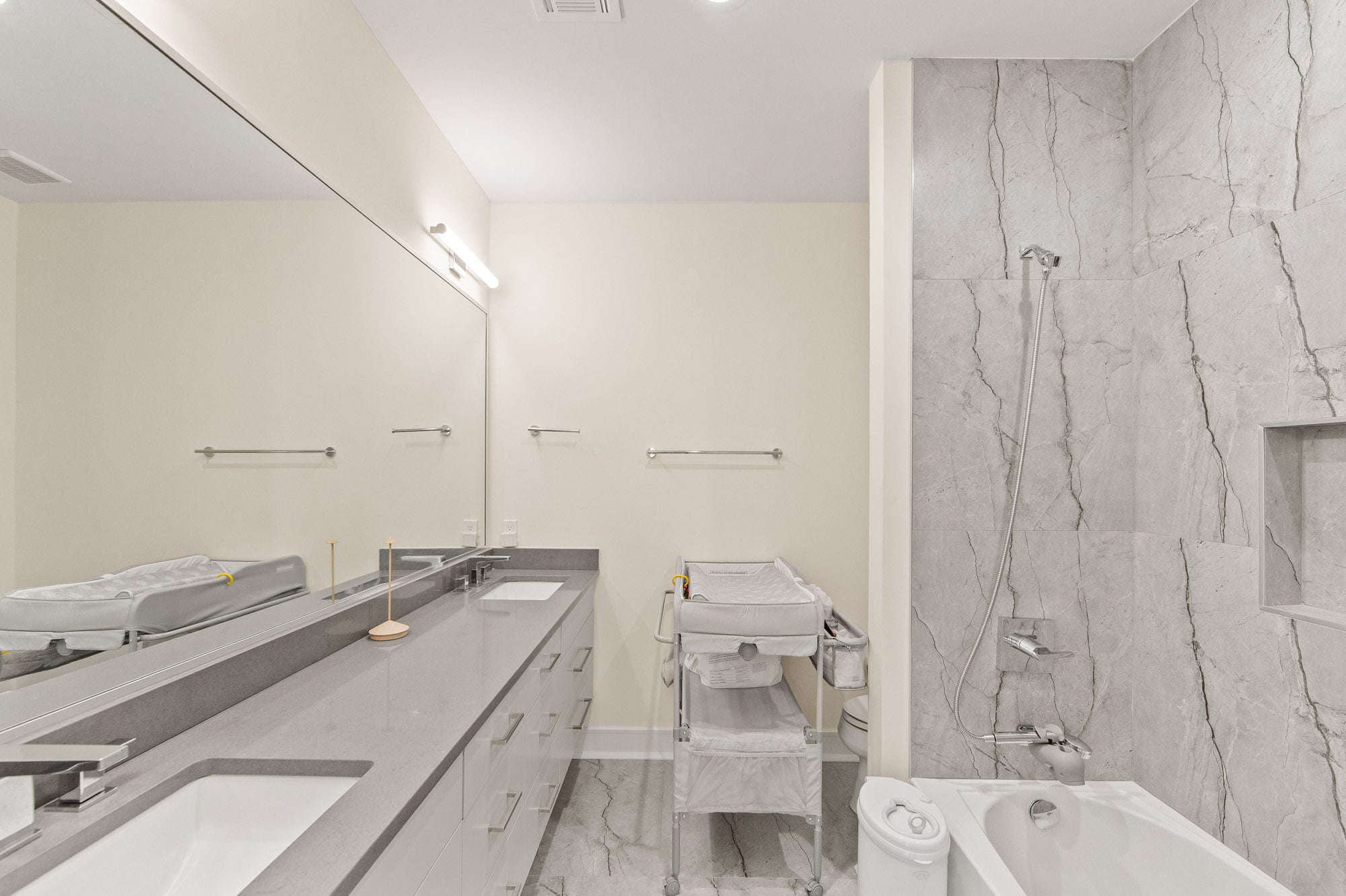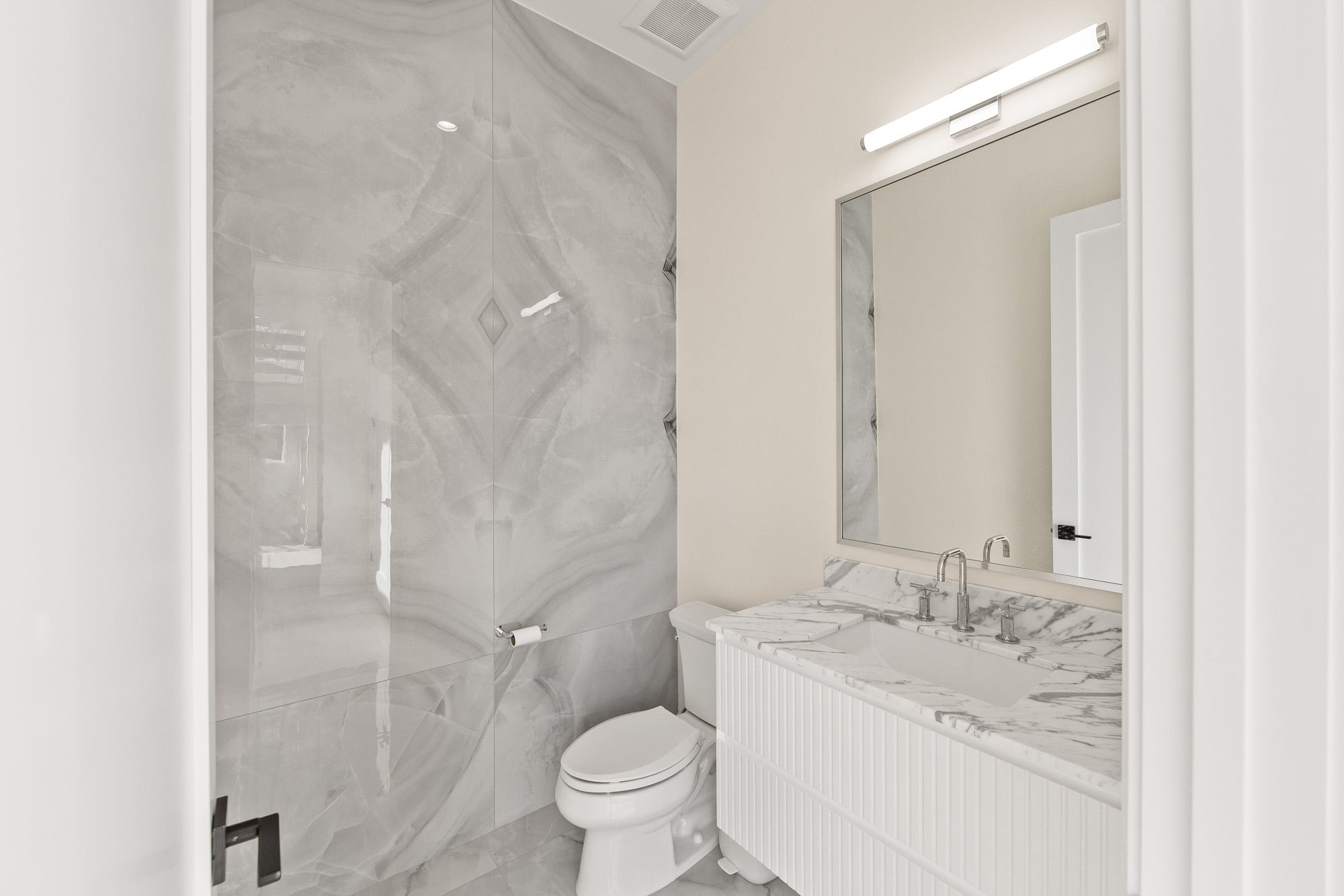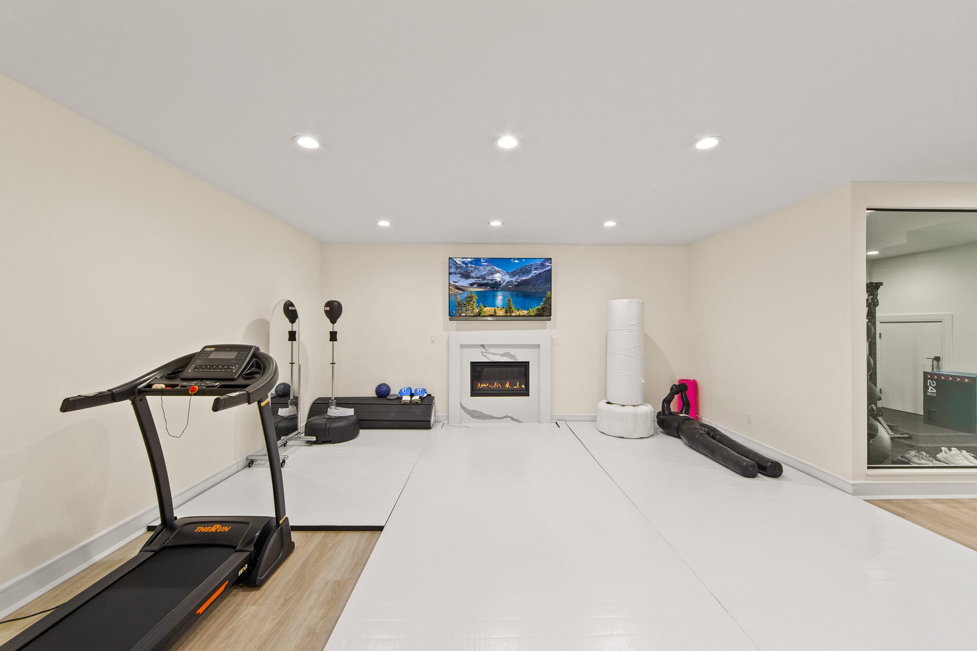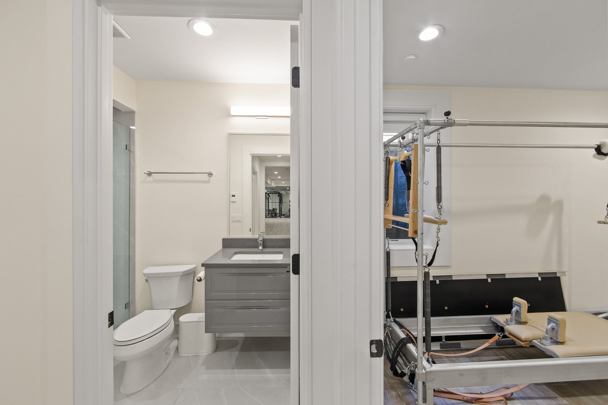 The fully finished lower level is an entertainer’s dream, featuring a private theater, gym, and bar—perfect for recreation and hosting. A stucco exterior and clean architectural lines complete the home’s modern appeal.