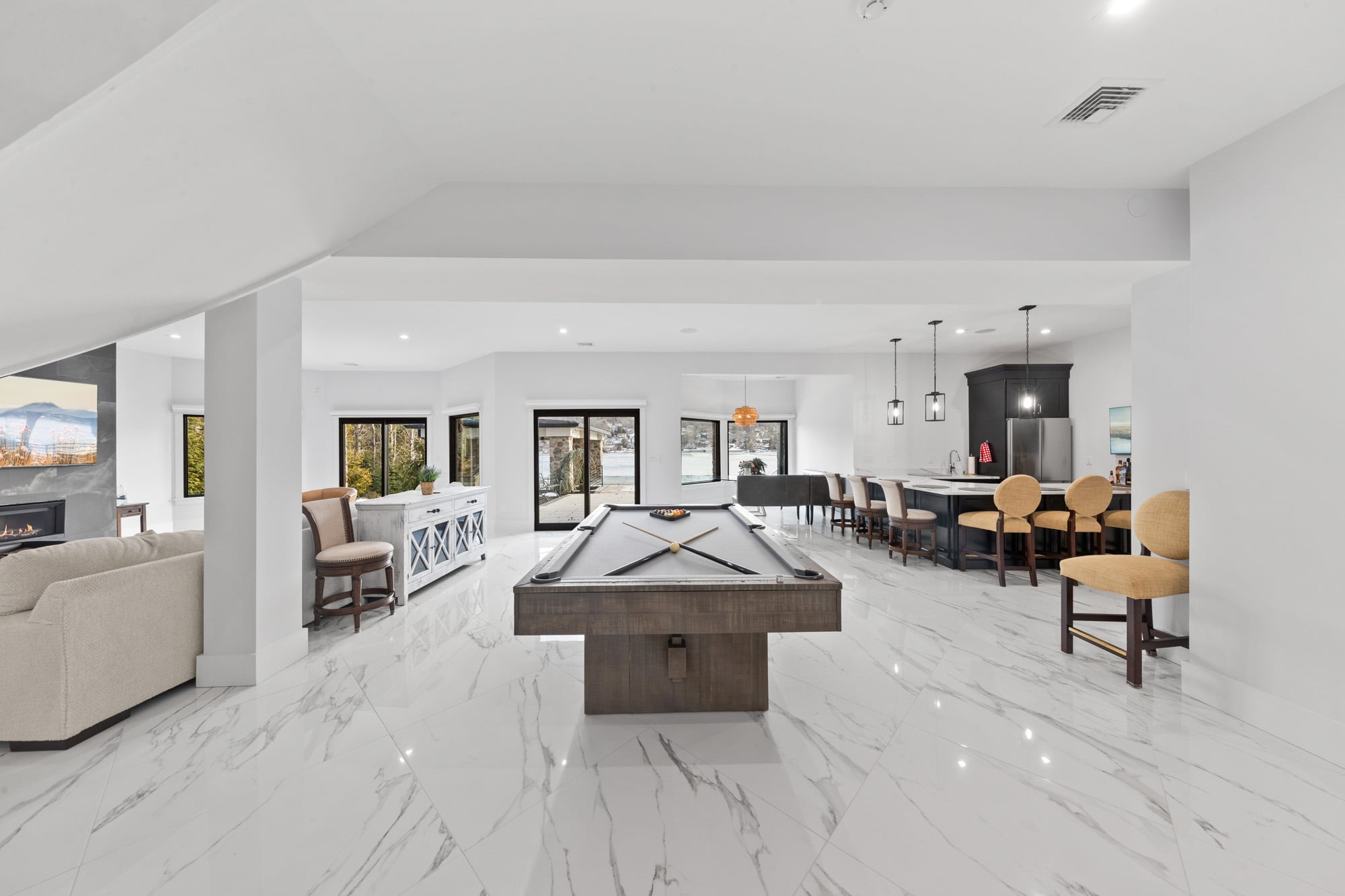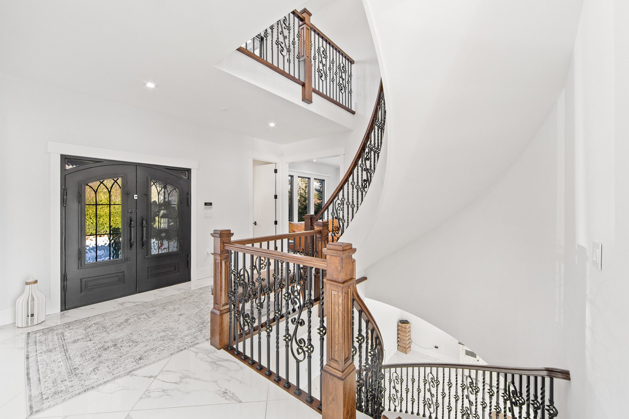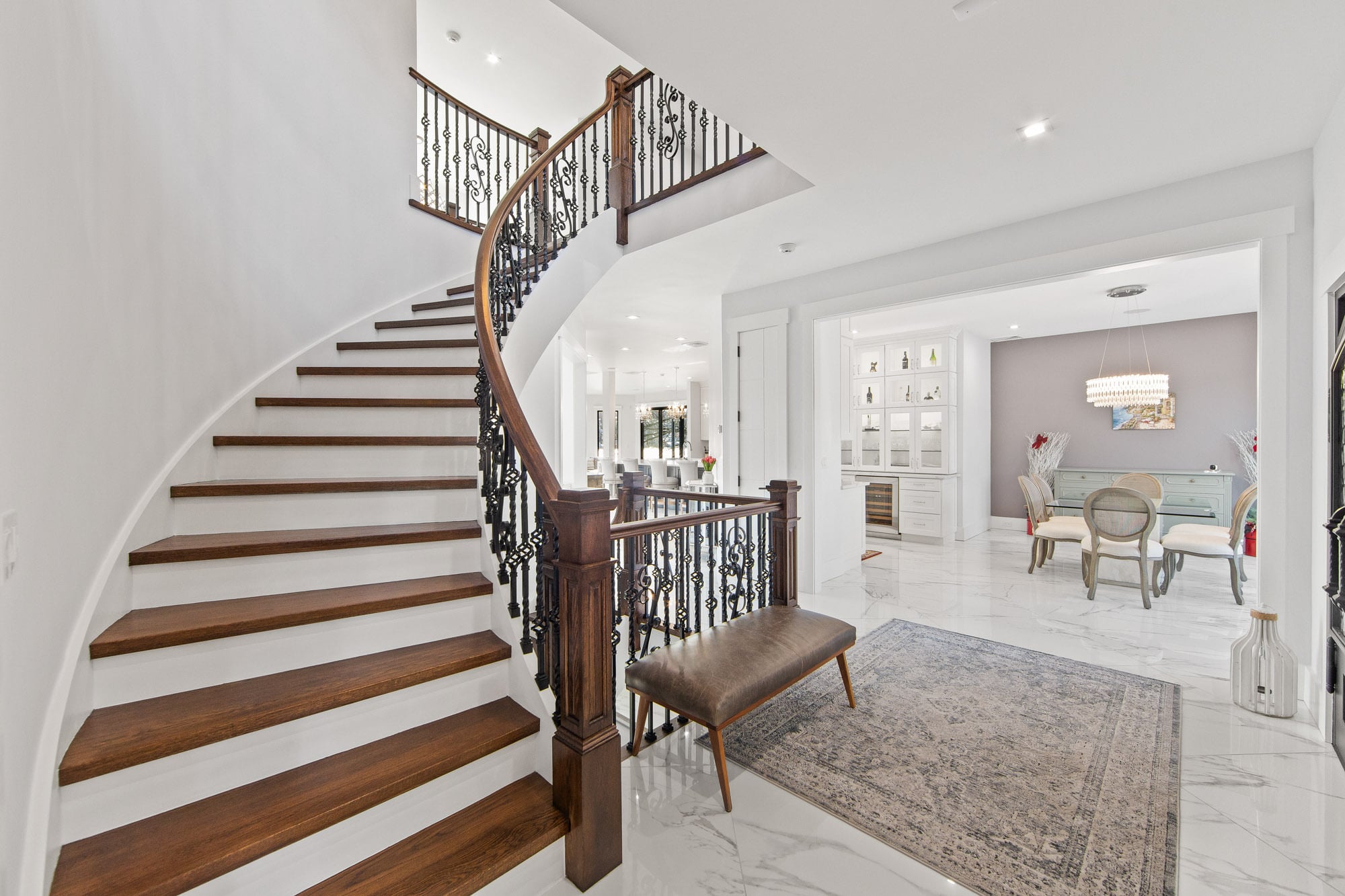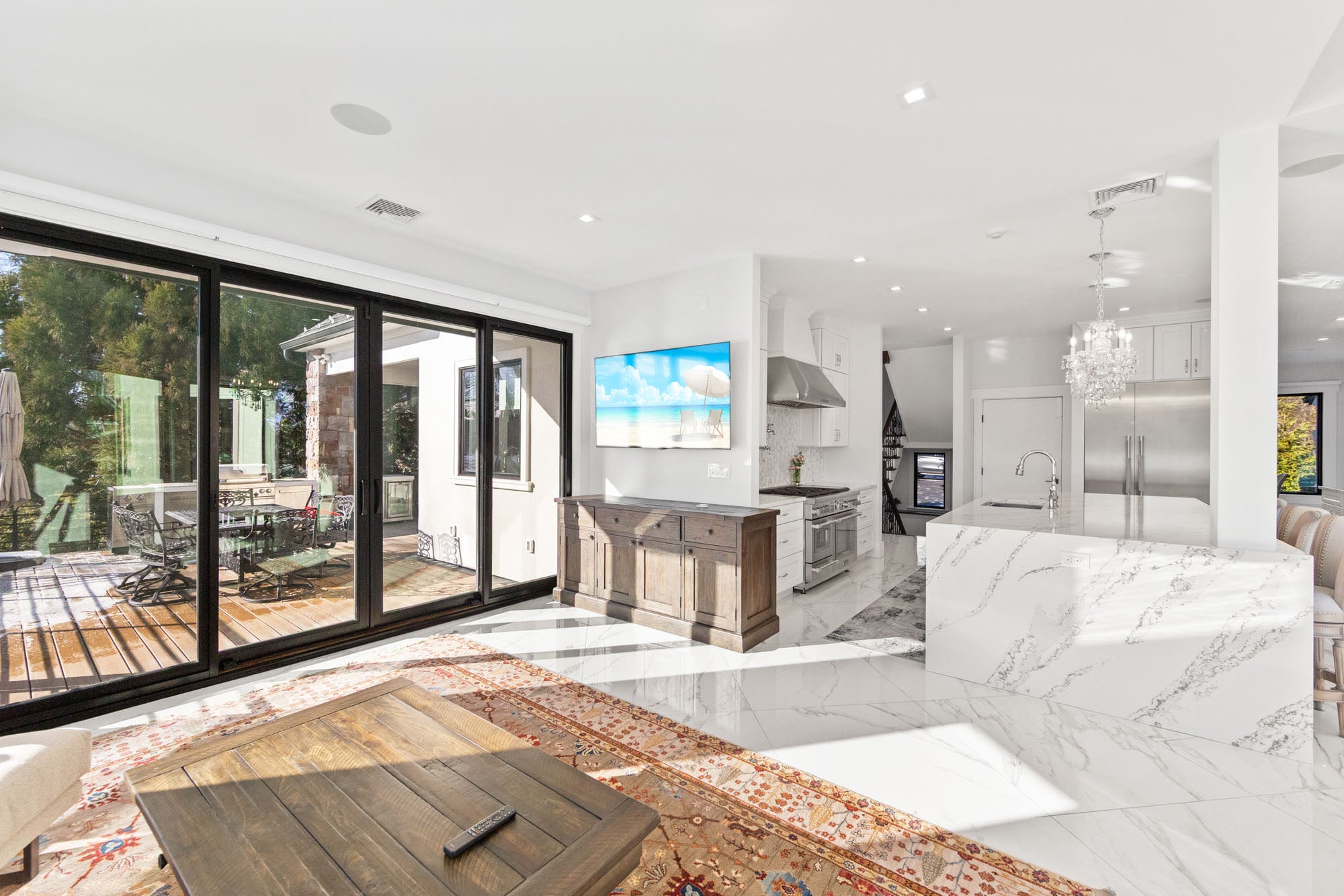 THE MAIN LEVEL FEATURES SOARING CEILINGS, ITALIAN PORCELAIN SLAB FLOORING, CUSTOM LIGHTING, AND EXPANSIVE NEW PELLA WINDOWS THAT FLOOD THE INTERIOR WITH NATURAL LIGHT. A DRAMATIC CIRCULAR FLOATING STAIRCASE WITH WROUGHT-IRON DETAILING ANCHORS THE HOME, WHILE TWO INLINE GAS FIREPLACES ADD WARMTH AND ARCHITECTURAL INTEREST ACROSS MULTIPLE LEVELS. THE CHEF’S KITCHEN IS SUPPORTED BY A BRAND-NEW, UNUSED PREP KITCHEN, BUTLER’S PANTRY, PREMIUM APPLIANCES, AND EXTENSIVE STORAGE.