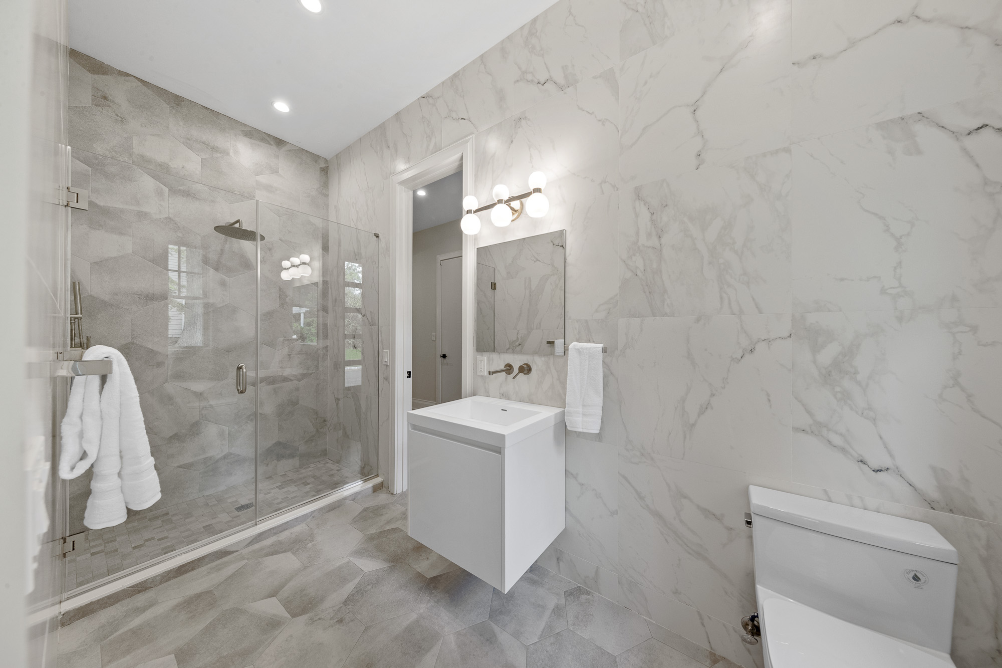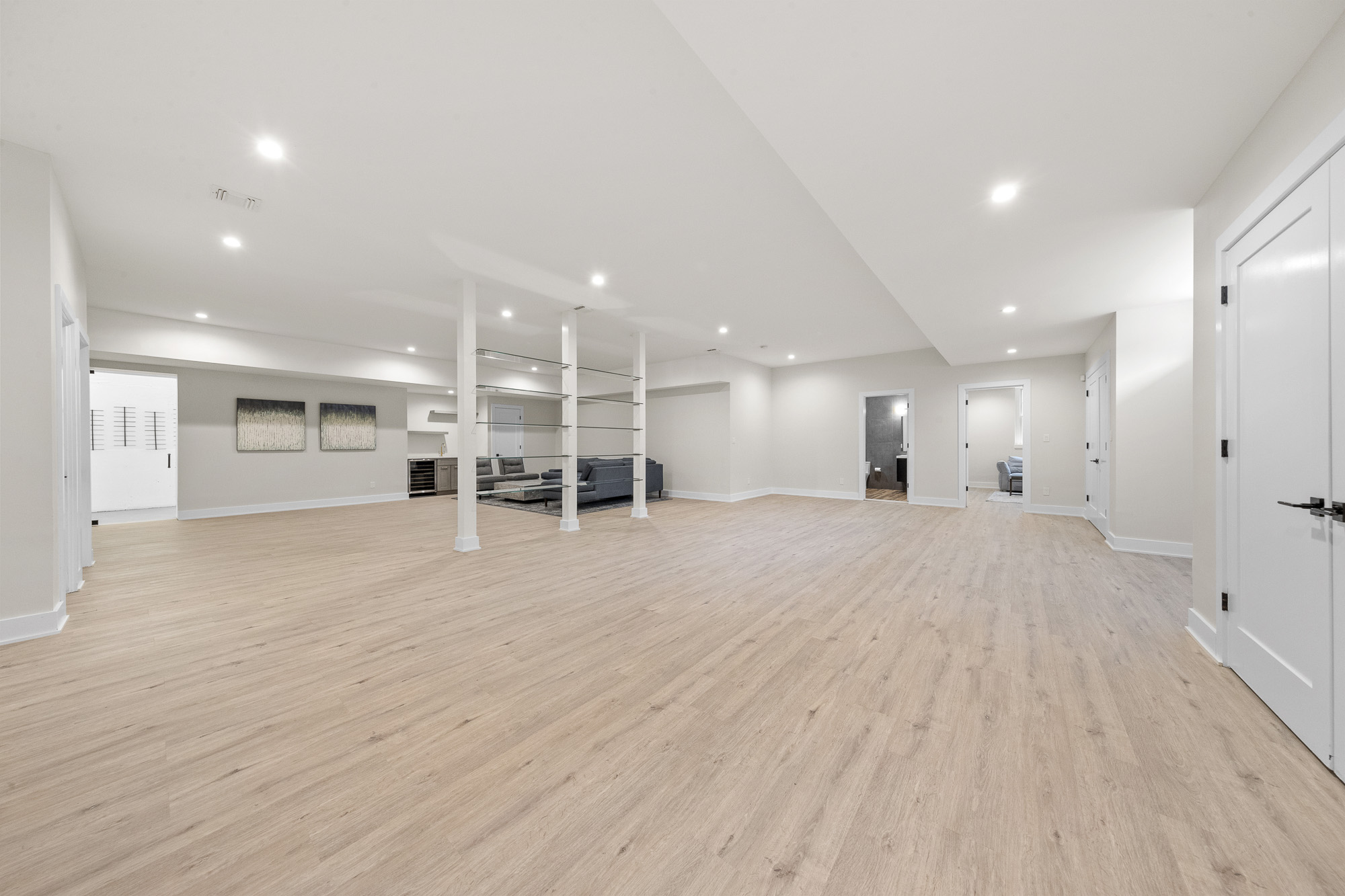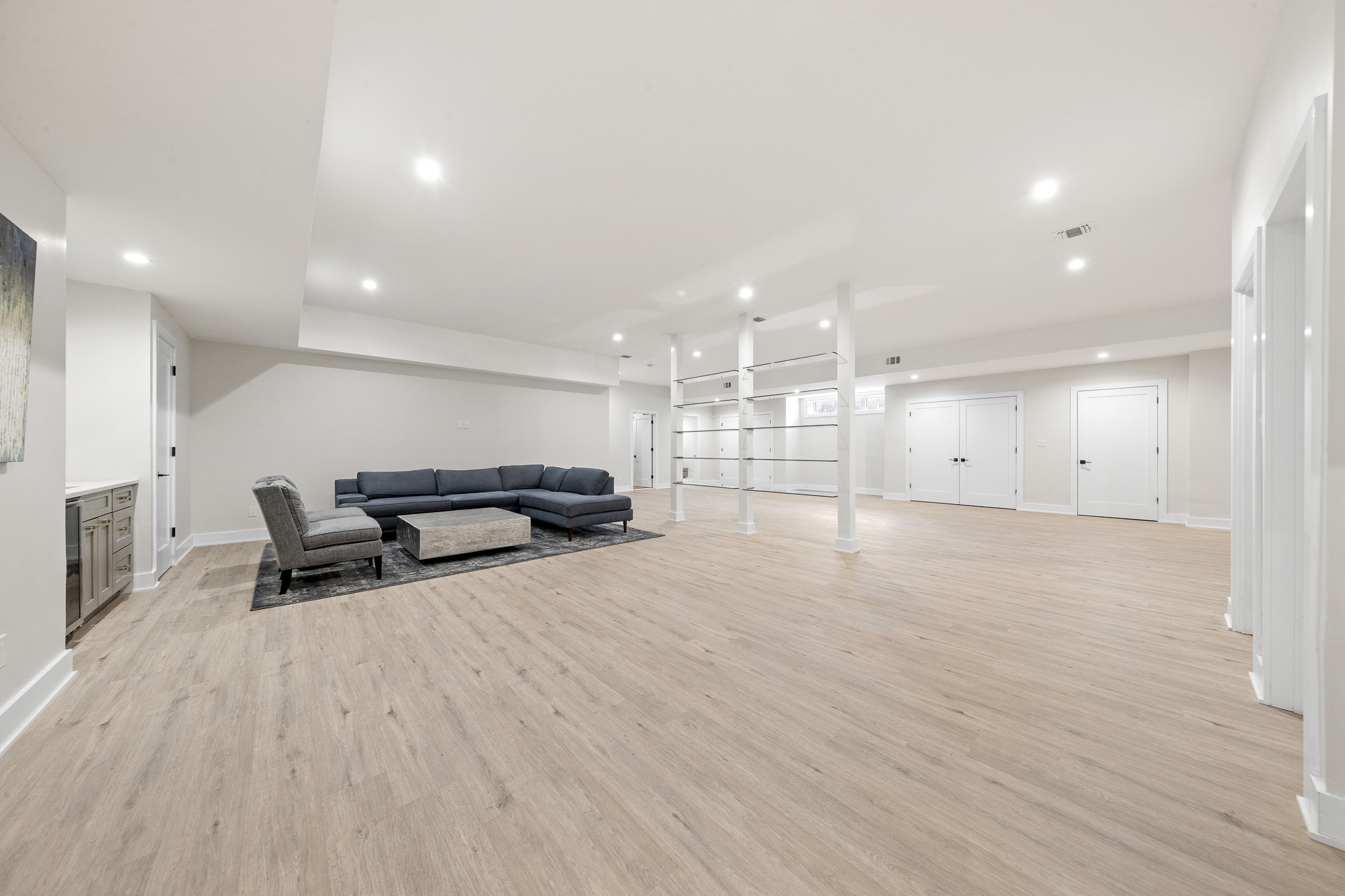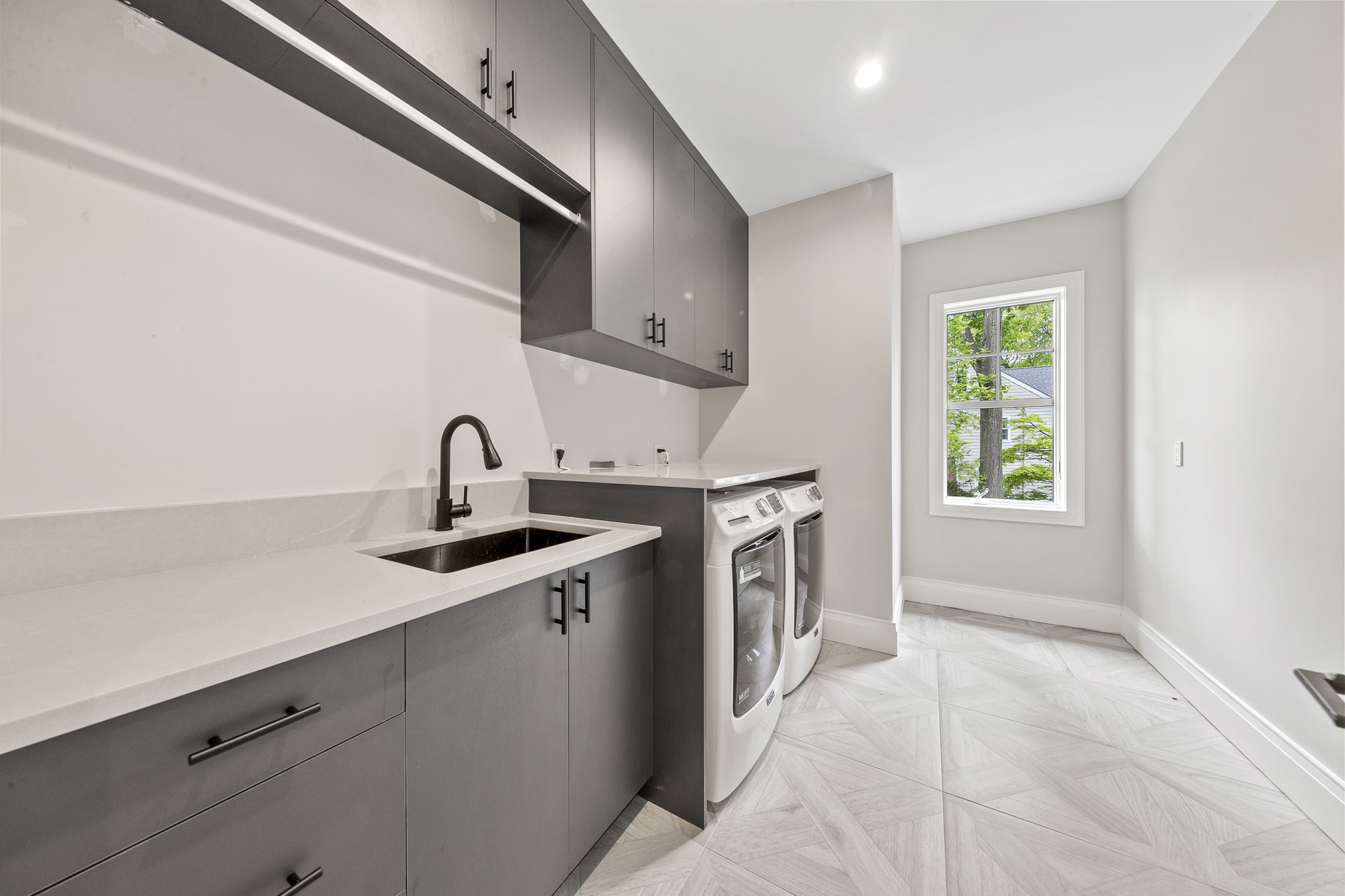 Step inside to discover soaring 9 to 14-foot ceilings, adorned with unique ceiling details in nearly every room. The interior is adorned with designer high-end lighting fixtures, vanities, and appliances, while 5-inch herringbone hardwood floors add a touch of elegance to every space.