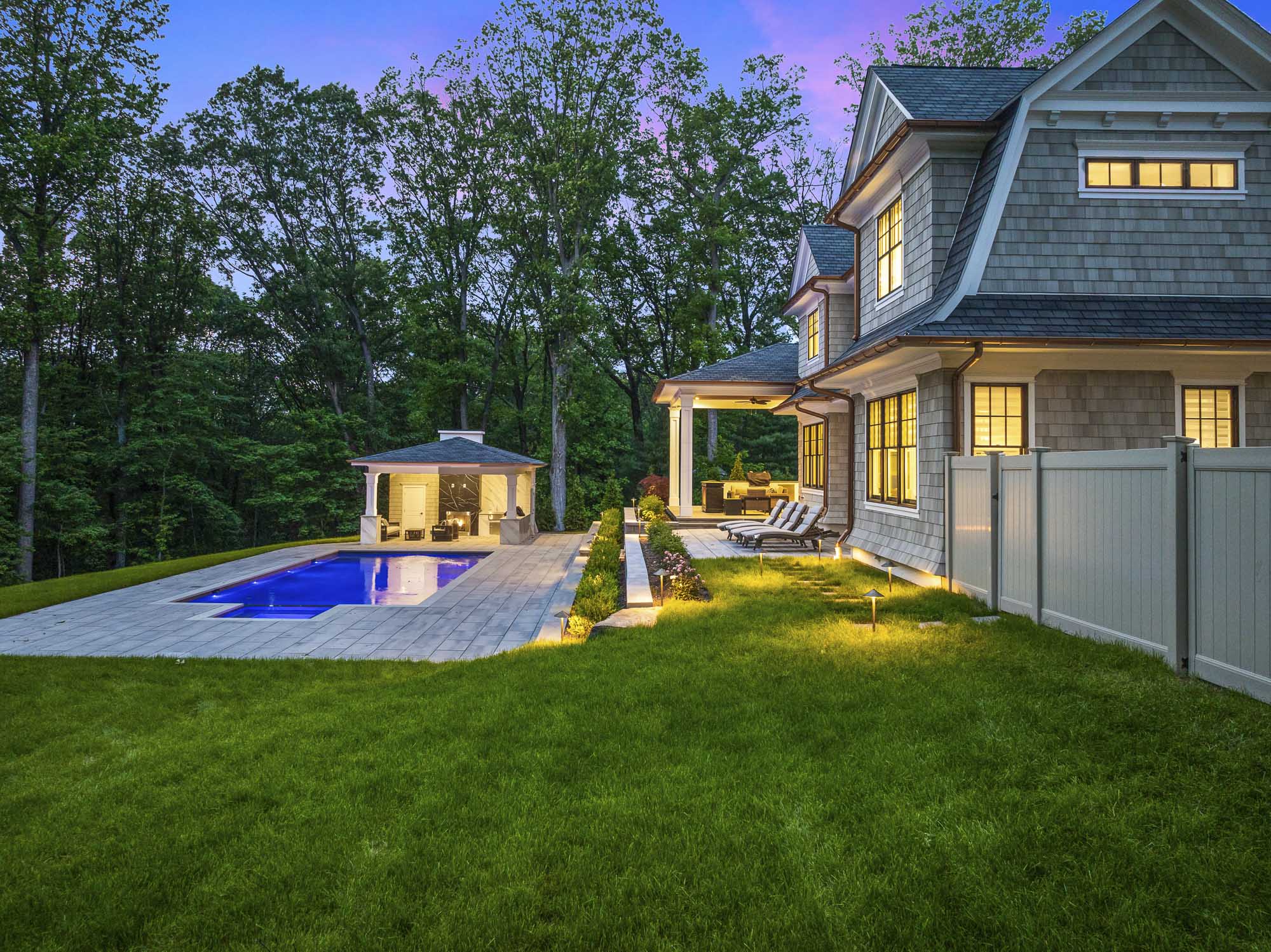 The exterior is equally captivating, with curb appeal that is nothing short of perfection. NuCedar siding, copper gutters, custom windows, and doors, along with bluestone walkways and patios, create a welcoming and stylish façade. It also has pool & cabana with full Bathroom, and 2 separate covered outdoor kitchens, completing the perfect package for a luxurious & enjoyable lifestyle.