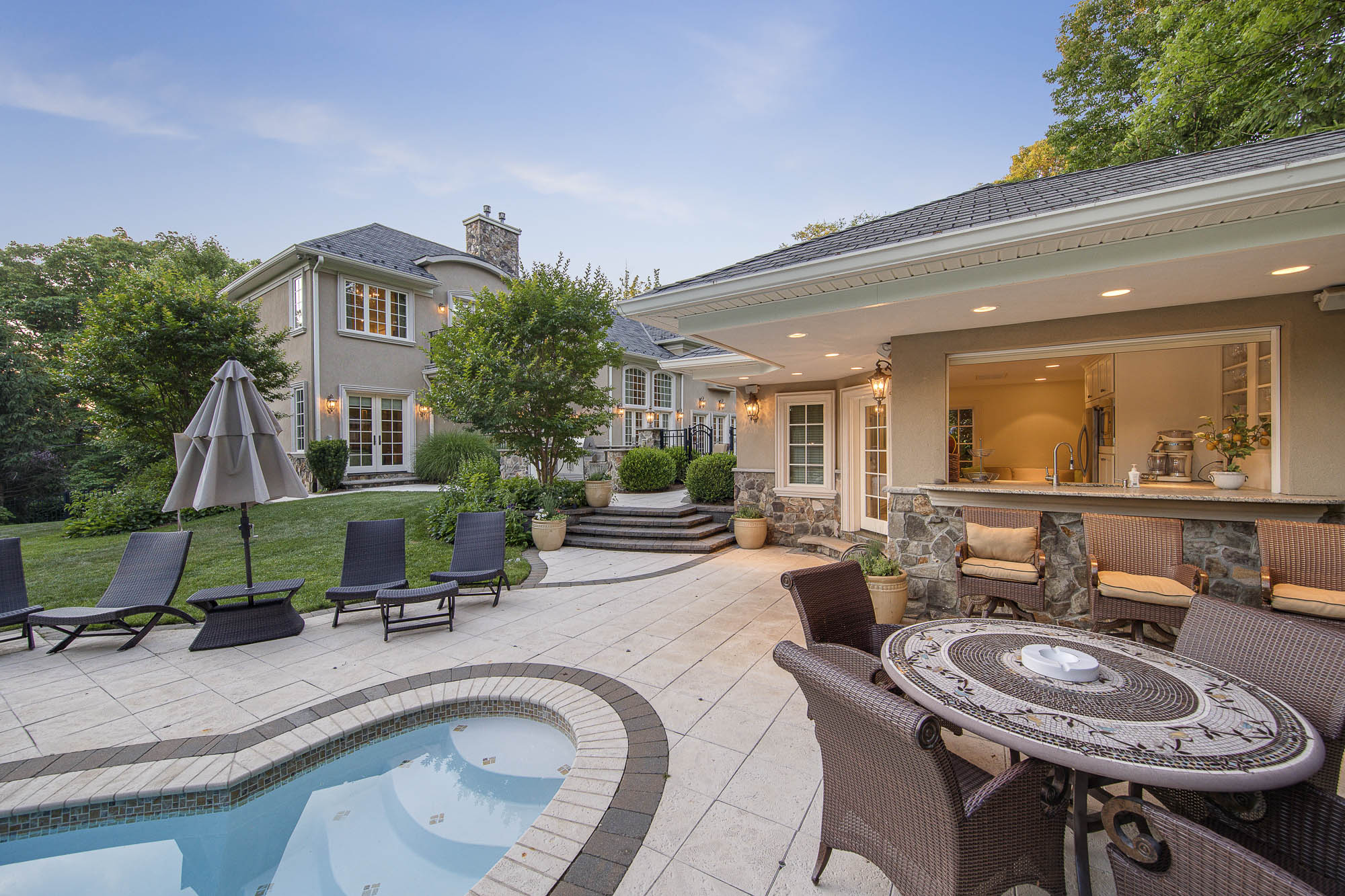 Incredible colonial located on a private acre in a cul-de-sac of Tenafly's East Hill, built in 2009. No detail overlooked, this house is perfect for entertaining! 1st level includes 2-story foyer w/ dramatic staircase, spectacular great room, family room w/ custom built-ins, bright kitchen w/ Sub-zero and Wolf appliances, butler's pantry, and full service wet bar. Custom cherry wood office & 1st of 2 full master suites complete first level w 2 powder rooms. All 1st & 2nd fl BR's & powder rooms have radiant heated floors. 2nd fl features 2nd luxurious master suite w sitting area, laundry room & 4 add'l BR suites. Lower level has impressive wine cellar, gym, theater, BR suite, powder room and huge entertaining space. All of this and the best is yet to come. Outside is enclosed 2-tier yard w patio, immaculate heated saltwater pool w Jacuzzi, full service cabana,& granite BBQ area.