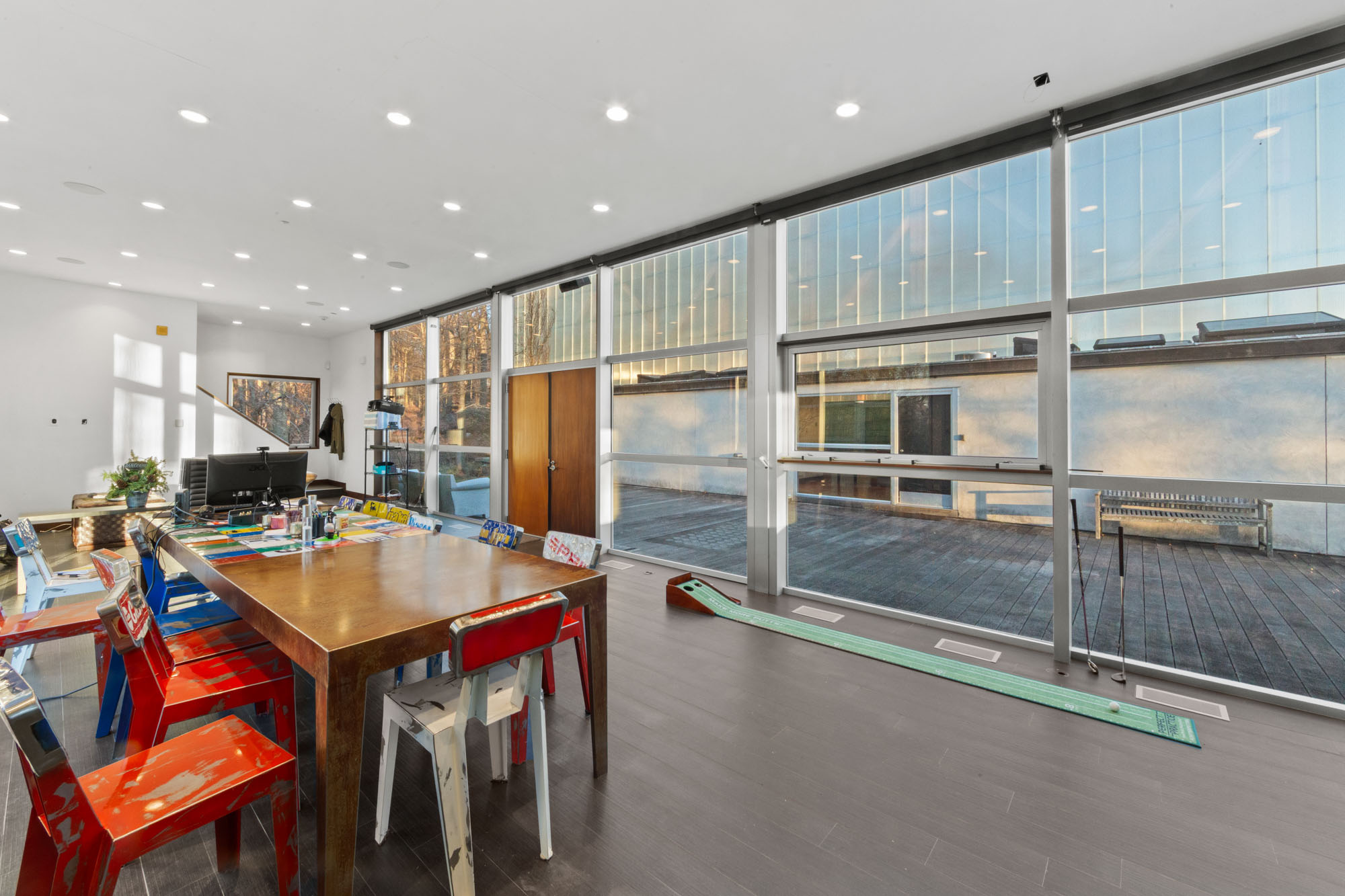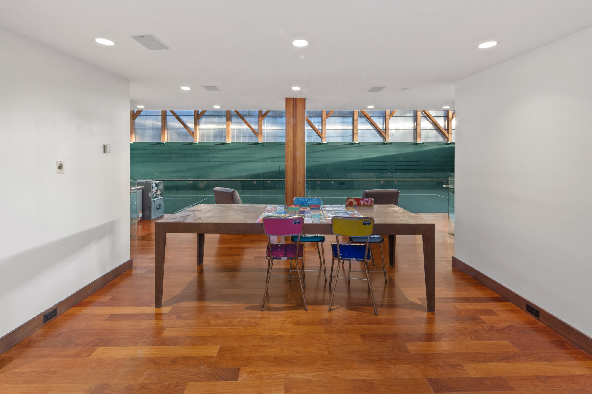 The home’s configuration is well-suited to buyers seeking a non-traditional floor plan, with room for multiple living areas, dedicated hobby or fitness spaces, and adaptable use areas that can evolve with changing needs. The indoor tennis courtadds year-round functionality and can serve as a standout feature for training, play, or multi-purpose recreation. Outdoors, the 3.3-acre grounds offer generous space for landscaping, outdoor seating areas, and future enhancements, while maintaining a sense of separation from neighboring properties.