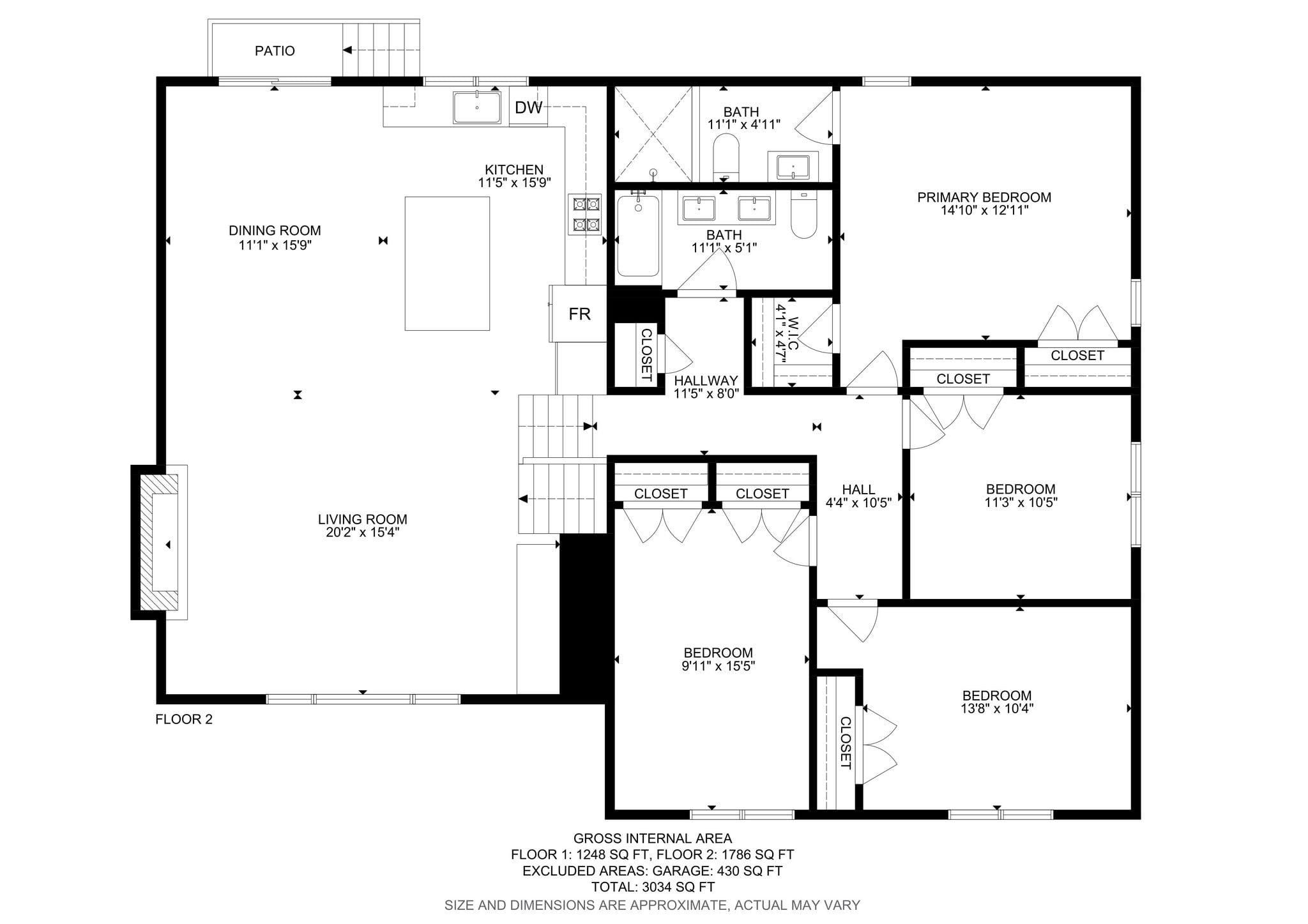 Exterior improvements include a two-car garage with epoxy flooring, a new paver driveway, walkways, and a rear patio designed for outdoor use, complete with a gas fire pit and built-in gas line for a BBQ. The property also offers space for a future pool, providing additional potential for outdoor customization.
