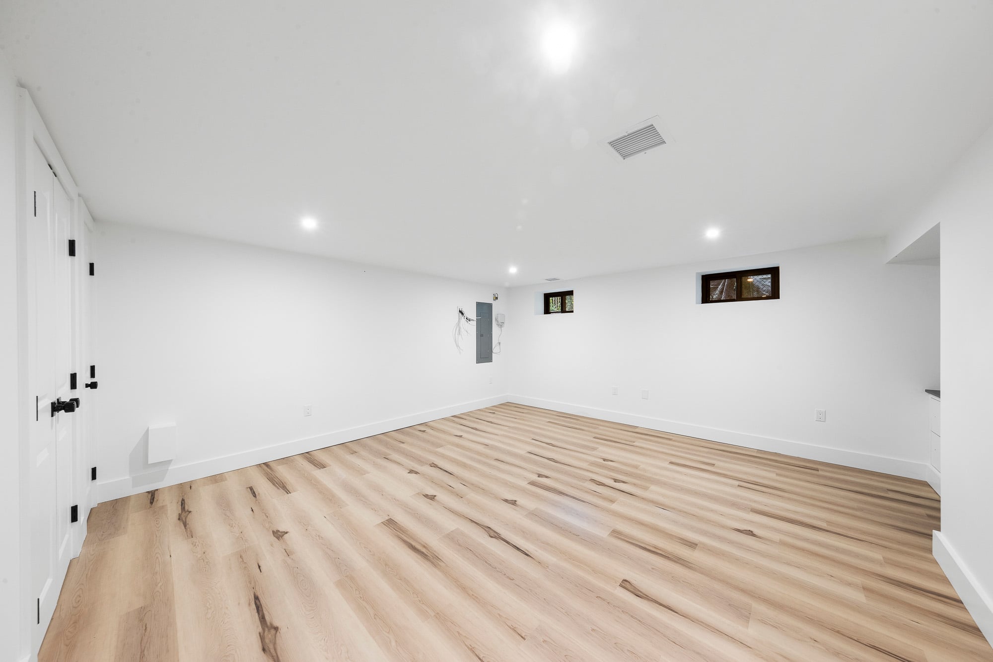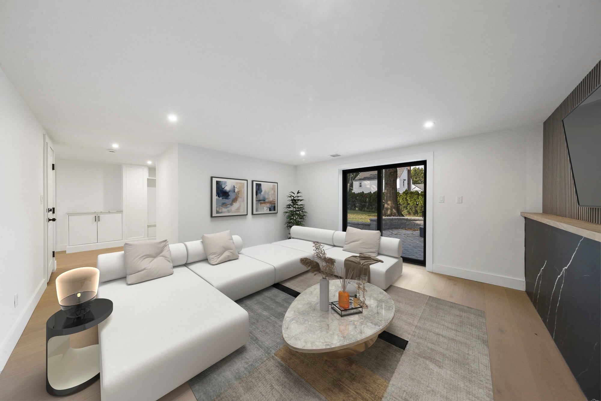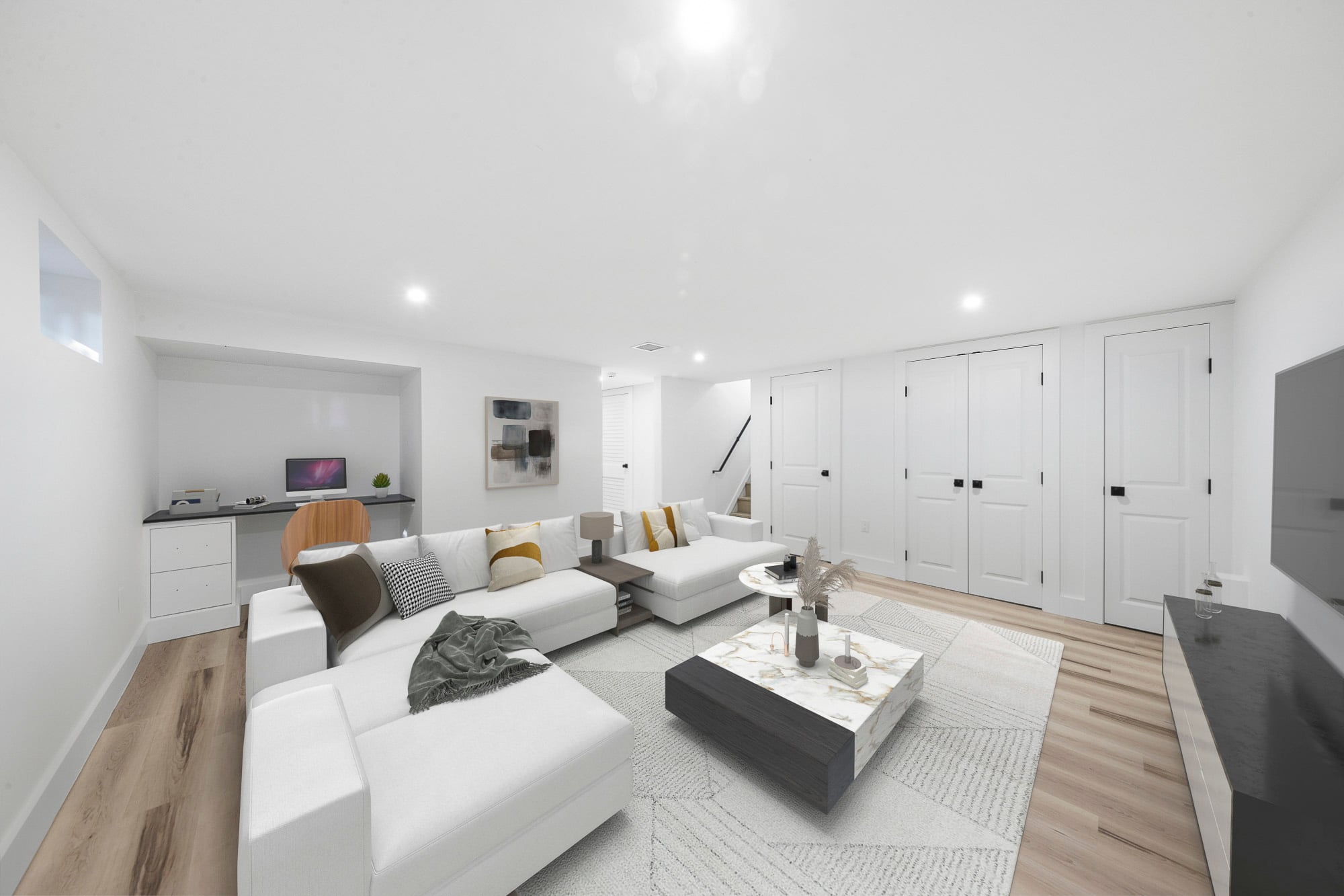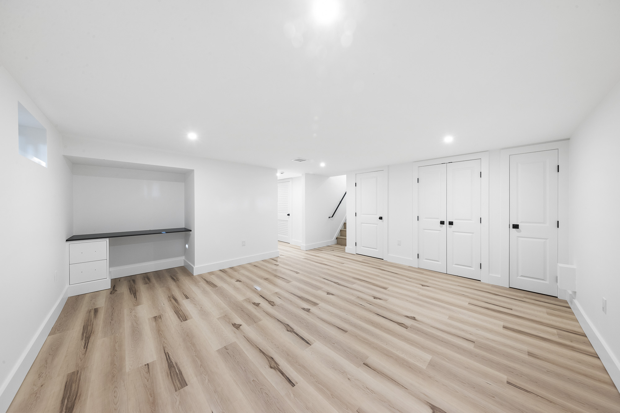 Every major component of the home has been newly completed, including a new roof, Andersen windows, HardiePlank siding, updated electrical and plumbing systems, and multi-zone HVAC. The interior features five bedrooms and four full bathrooms, with a layout designed for flexibility across all levels. White oak engineered flooring runs throughout, complemented by custom accent walls, vaulted ceilings, skylights, and integrated LED lighting that enhances natural light and overall flow.