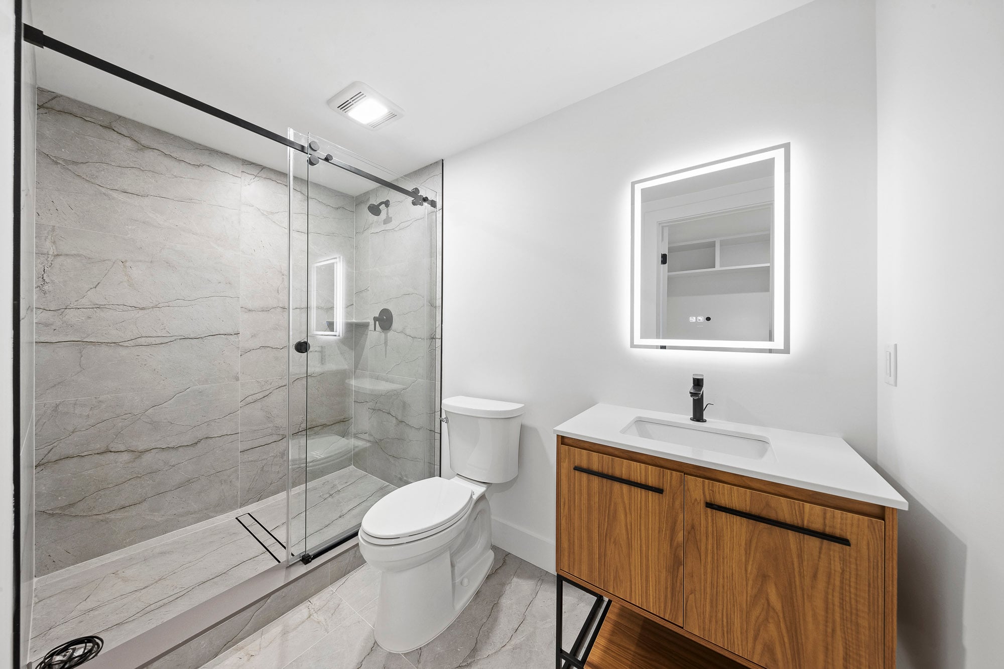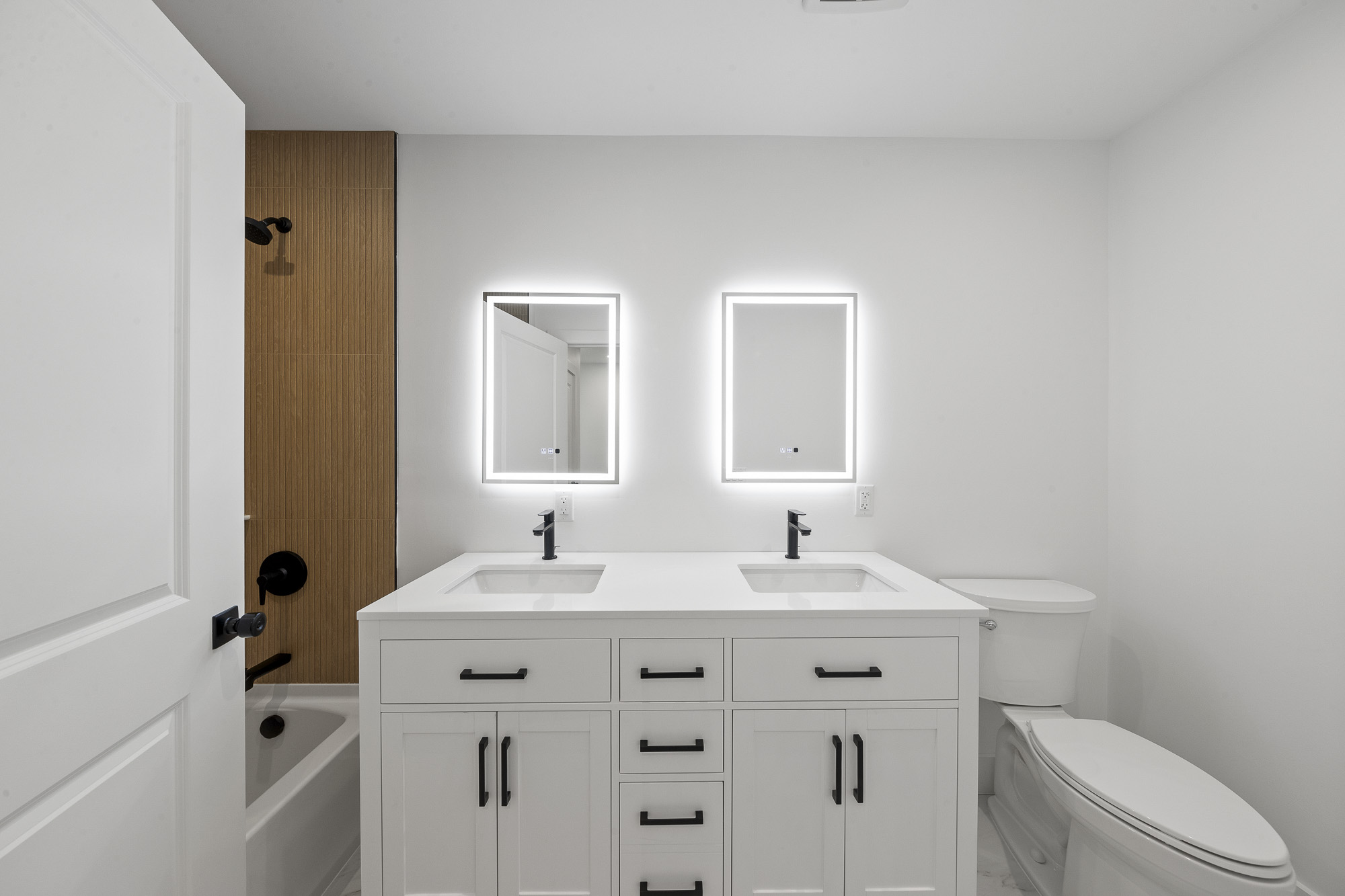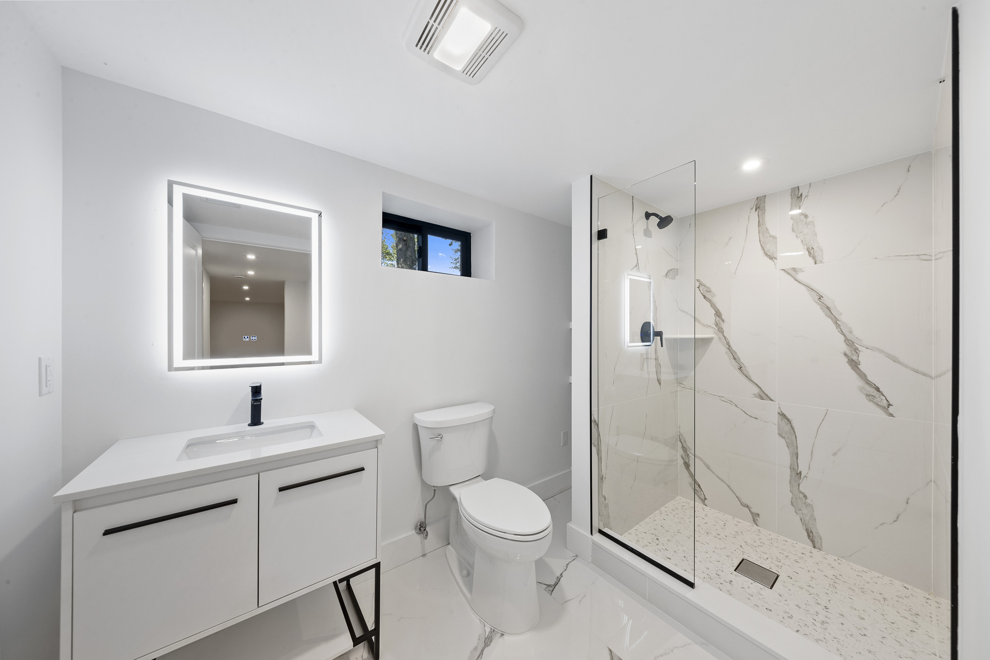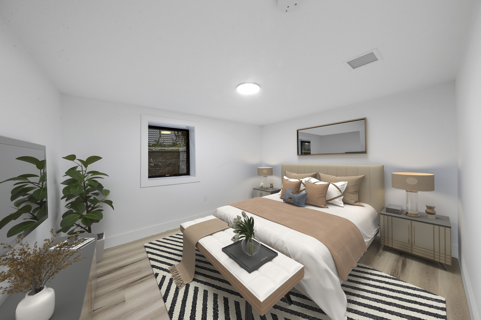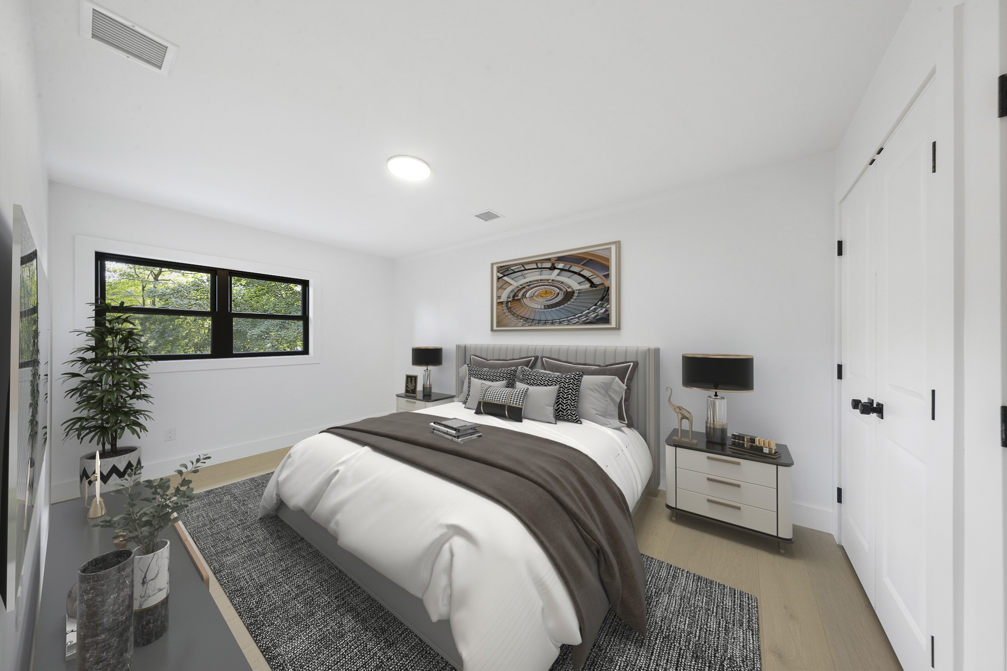 Every major component of the home has been newly completed, including a new roof, Andersen windows, HardiePlank siding, updated electrical and plumbing systems, and multi-zone HVAC. The interior features five bedrooms and four full bathrooms, with a layout designed for flexibility across all levels. White oak engineered flooring runs throughout, complemented by custom accent walls, vaulted ceilings, skylights, and integrated LED lighting that enhances natural light and overall flow.