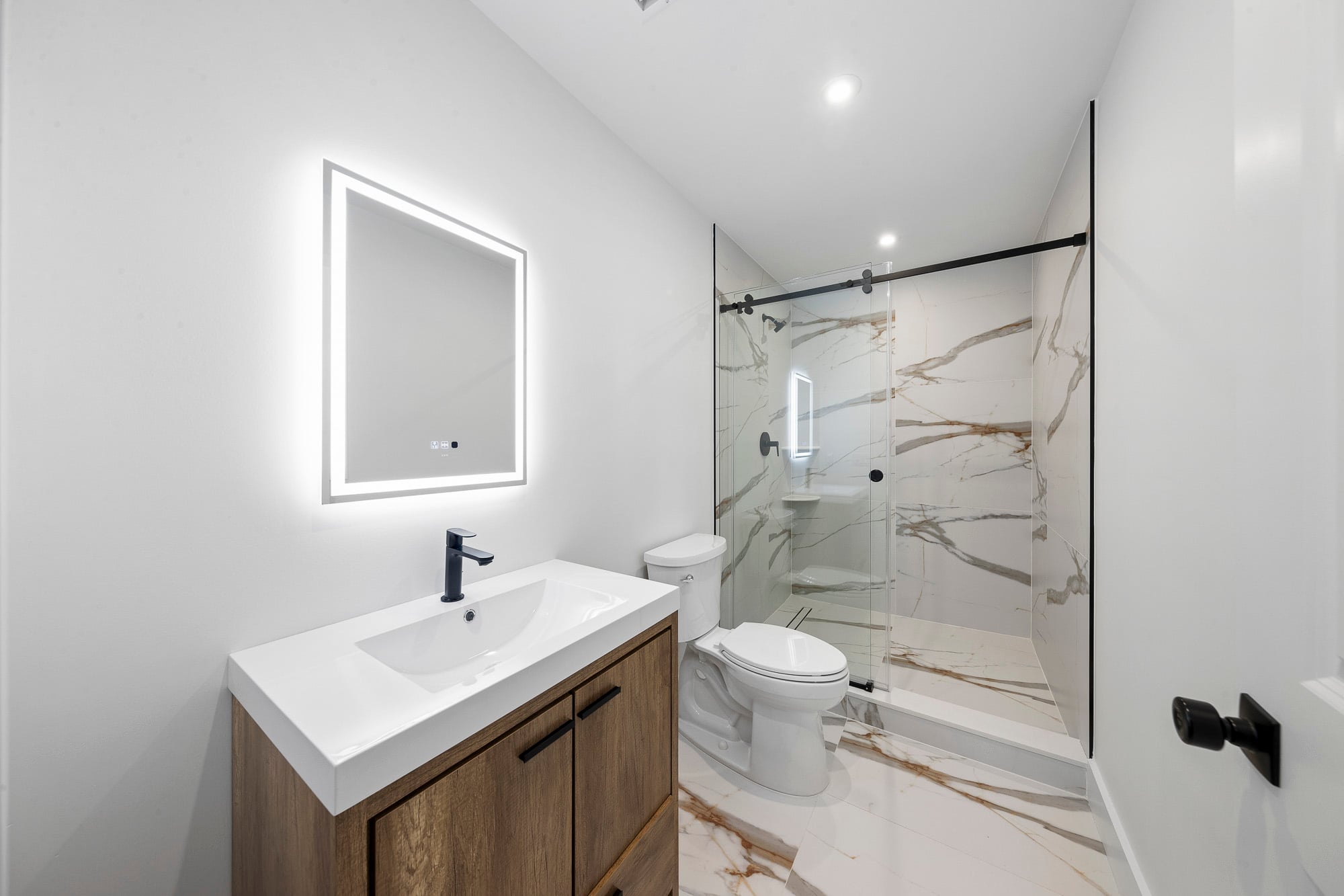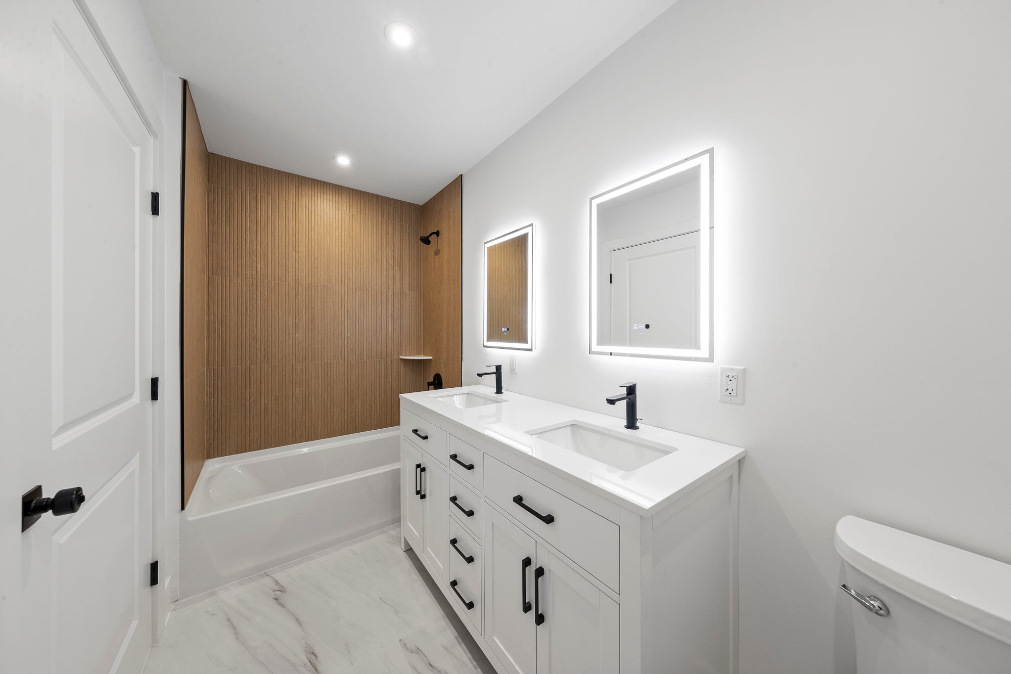 The kitchen has been fully rebuilt with modern finishes and connects seamlessly to the main living and dining areas, creating a practical setting for daily use and entertaining. All bathrooms have been newly constructed with clean, contemporary design and updated fixtures.
