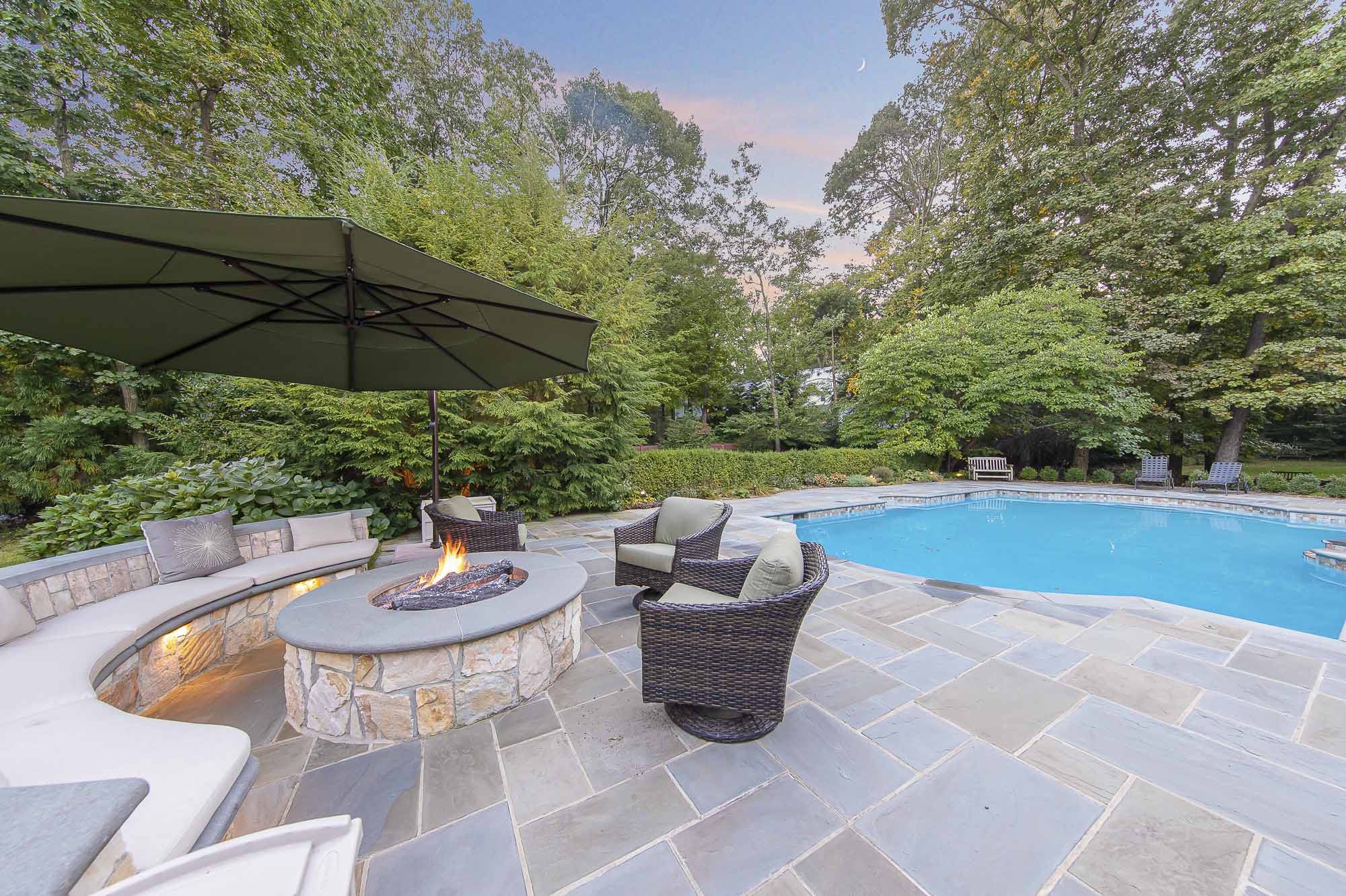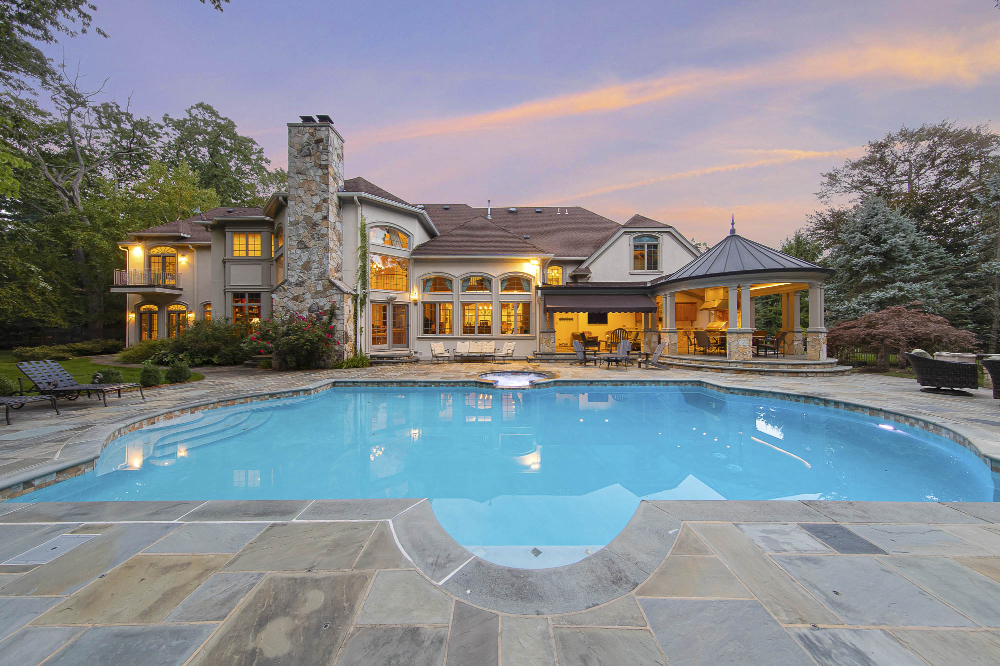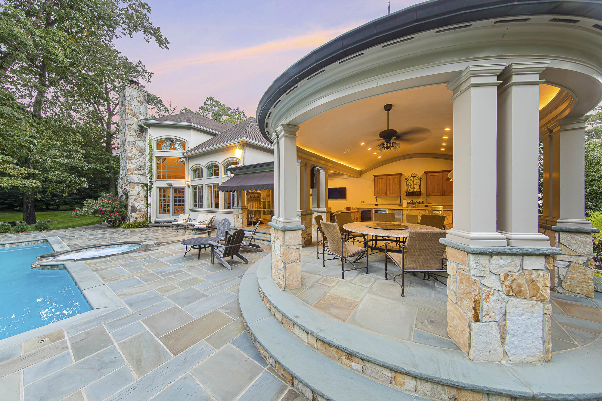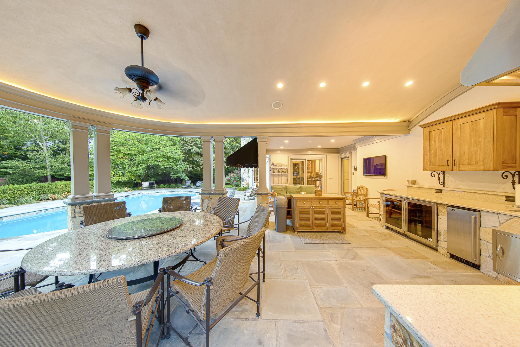 Outside, your private oasis includes a heated pool, spa, fire pit, and an all-season covered terrace with a full outdoor kitchen and lounge. Smart-home systems, new HVAC, a generator, and a 4-car garage complete this rare Franklin Lakes offering.
