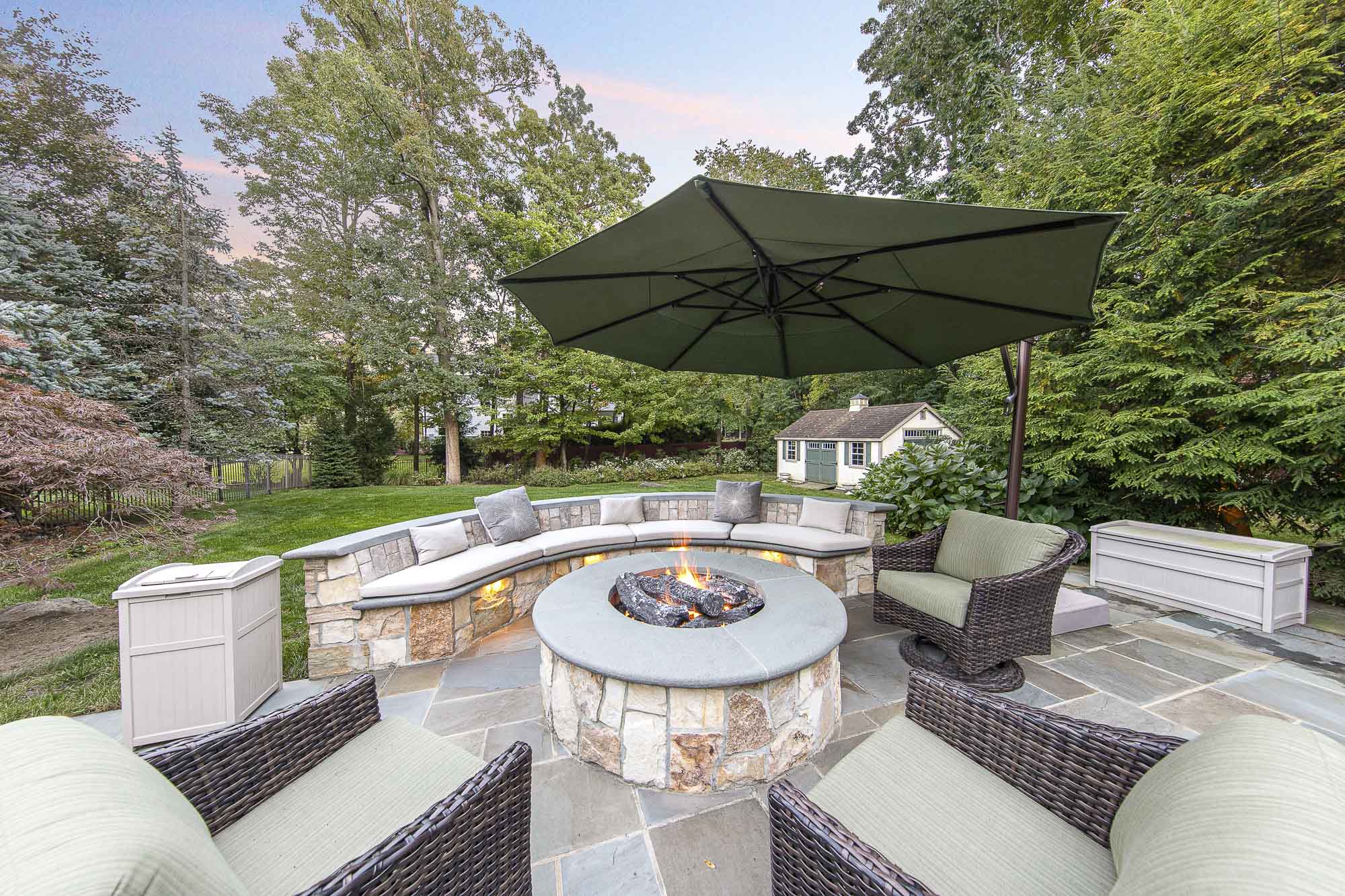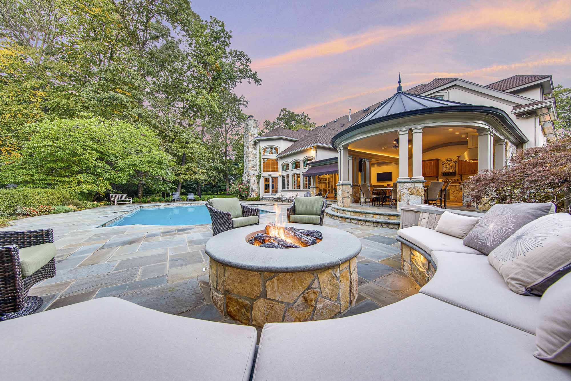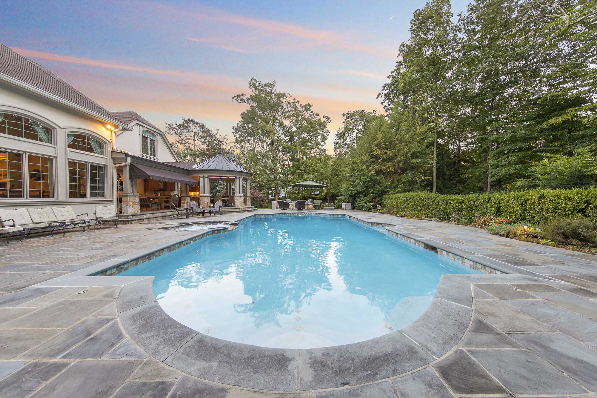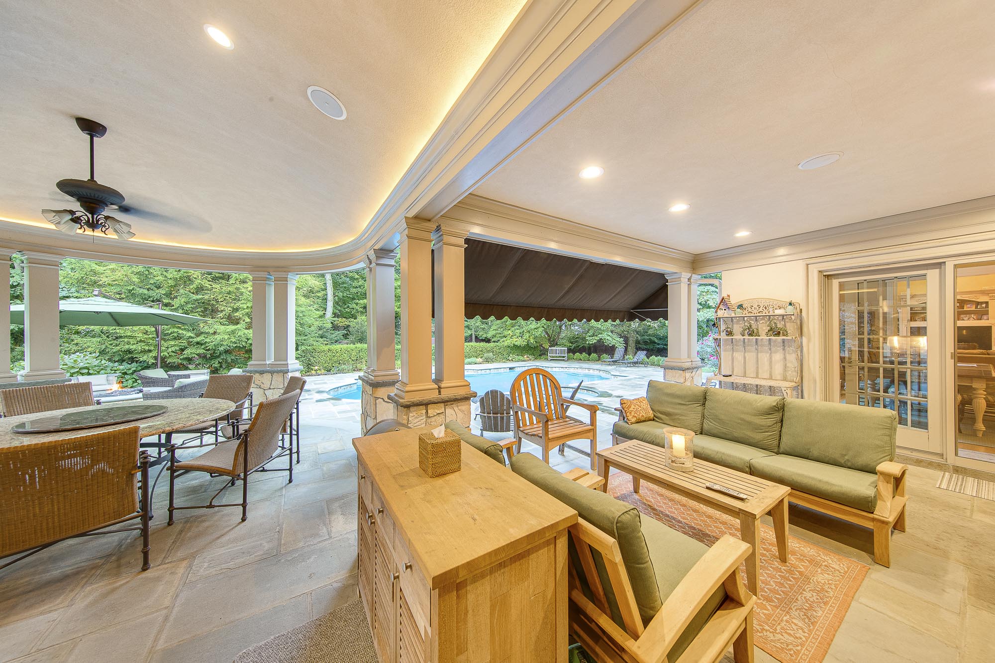 Outside, your private oasis includes a heated pool, spa, fire pit, and an all-season covered terrace with a full outdoor kitchen and lounge. Smart-home systems, new HVAC, a generator, and a 4-car garage complete this rare Franklin Lakes offering.