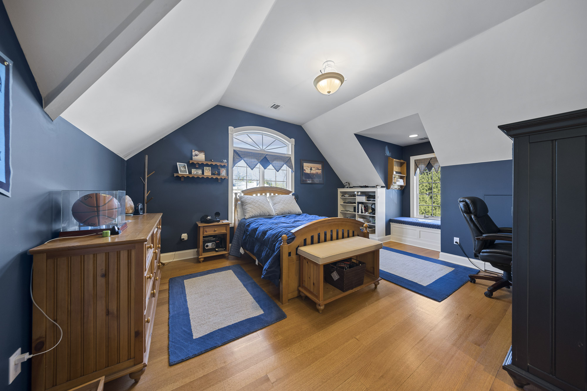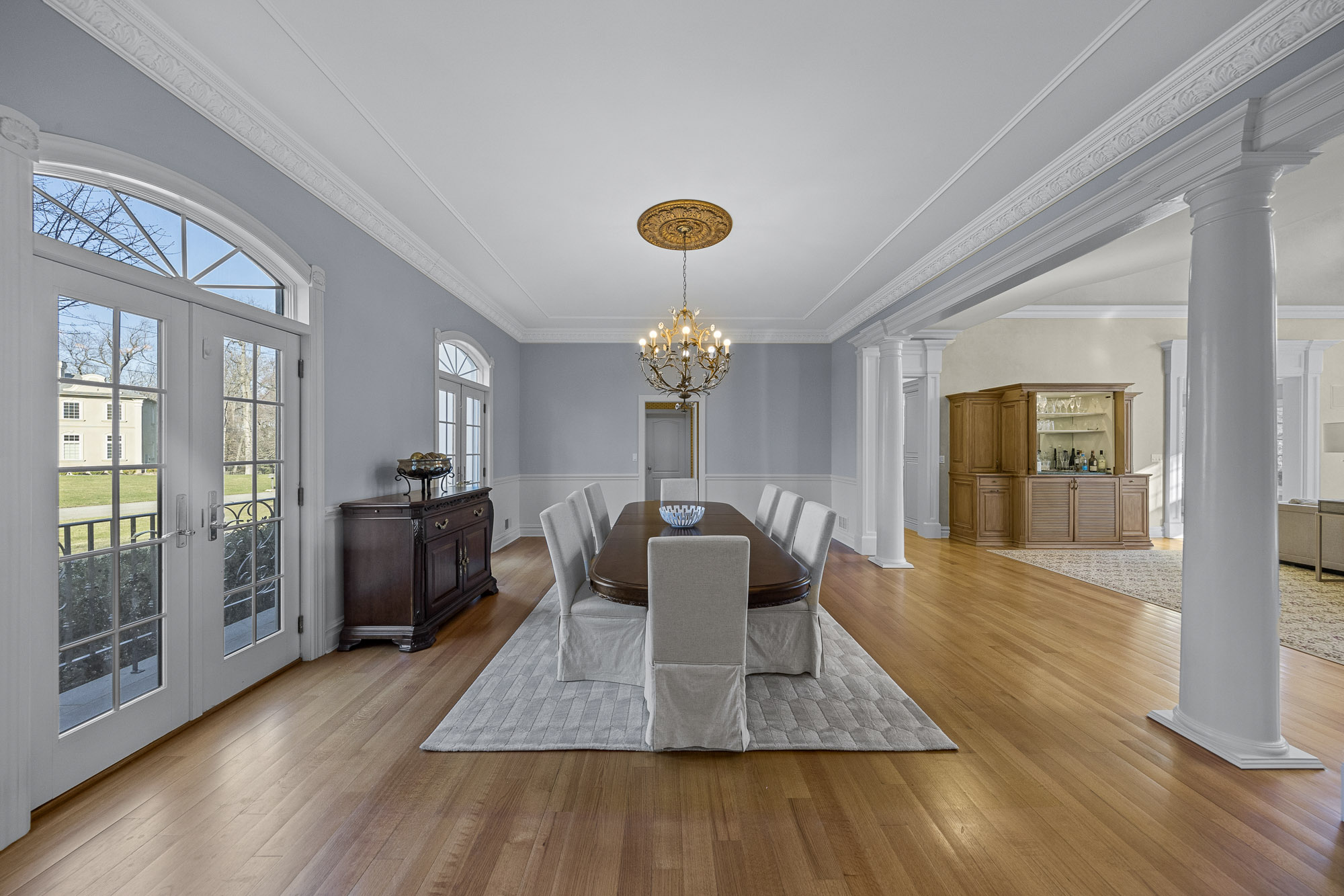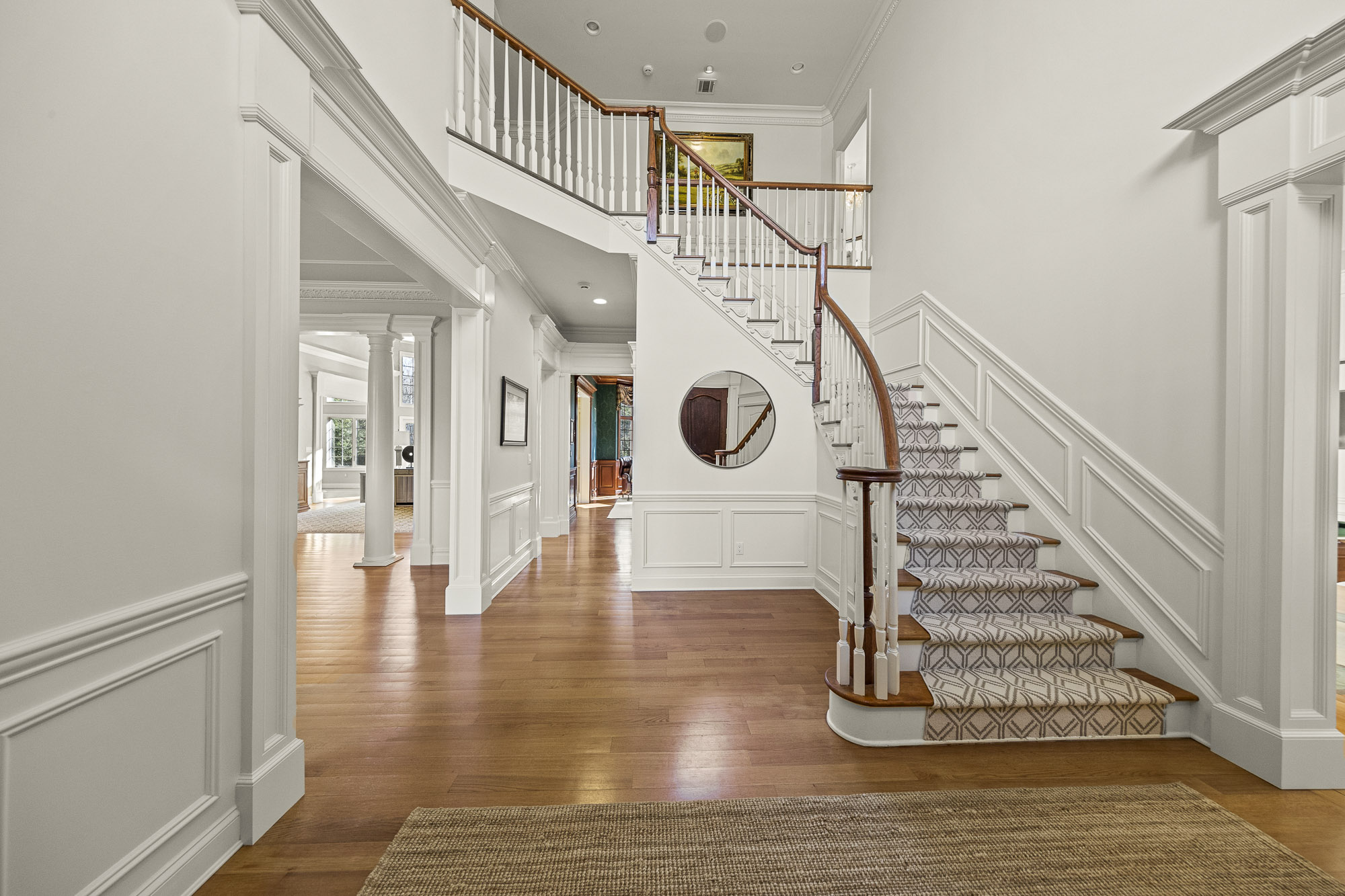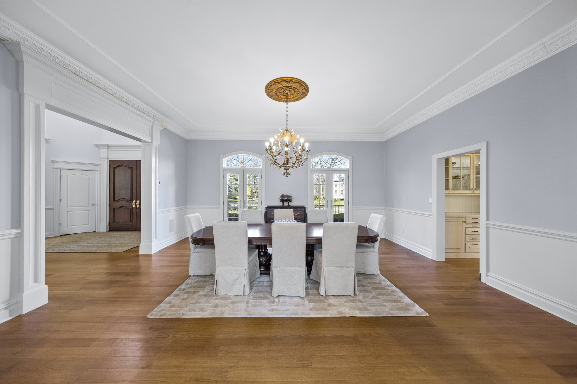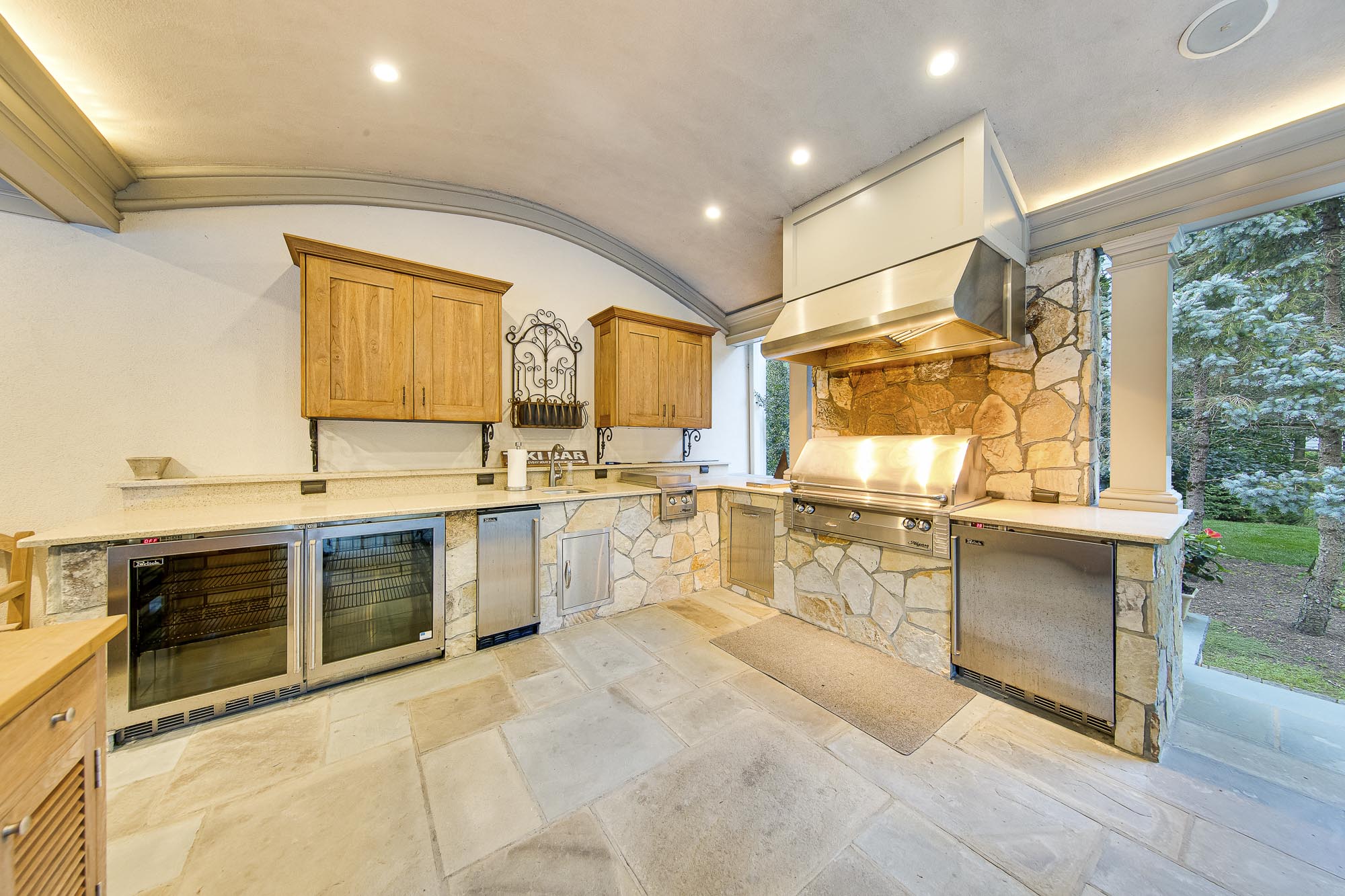 This 7,500 sq ft home features 5–6 bedrooms, 6 baths, two home offices, a remodeled chef’s kitchen, a dramatic great room, banquet-size dining room, and a full lower level with theater, gym, sauna bath, game room, and music studio.