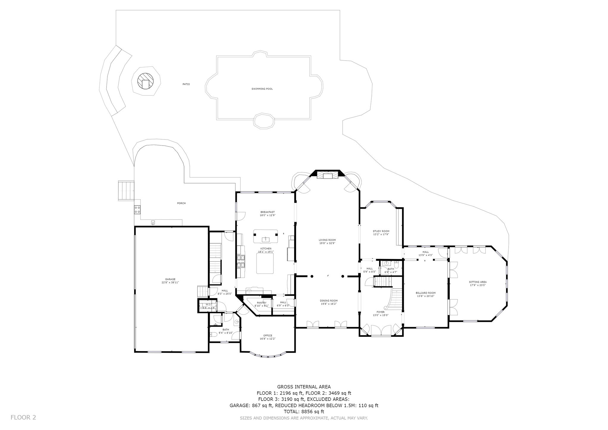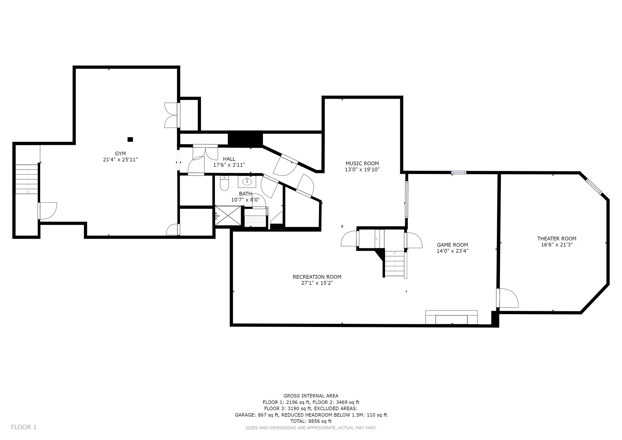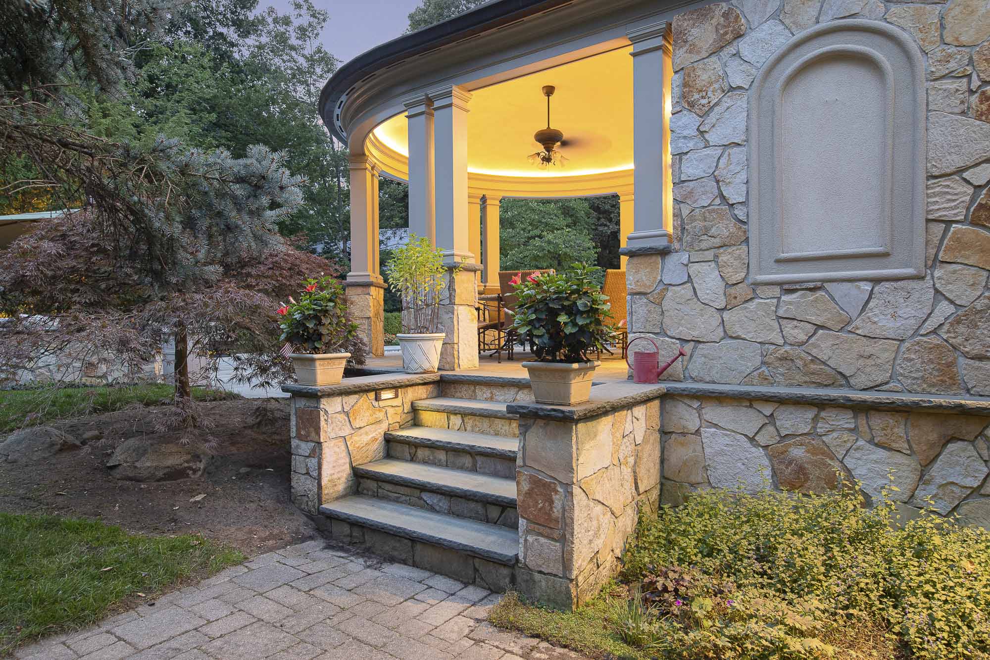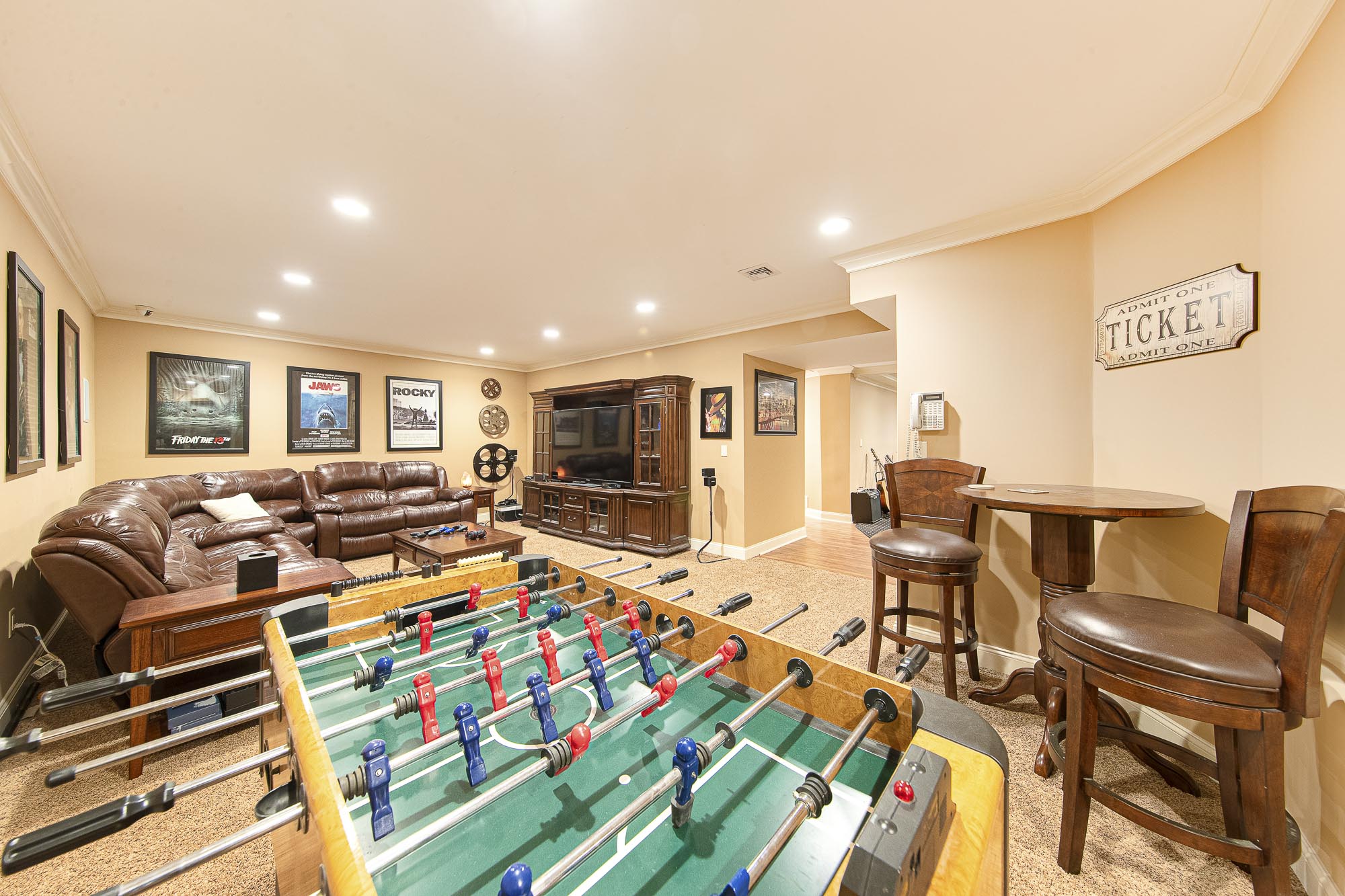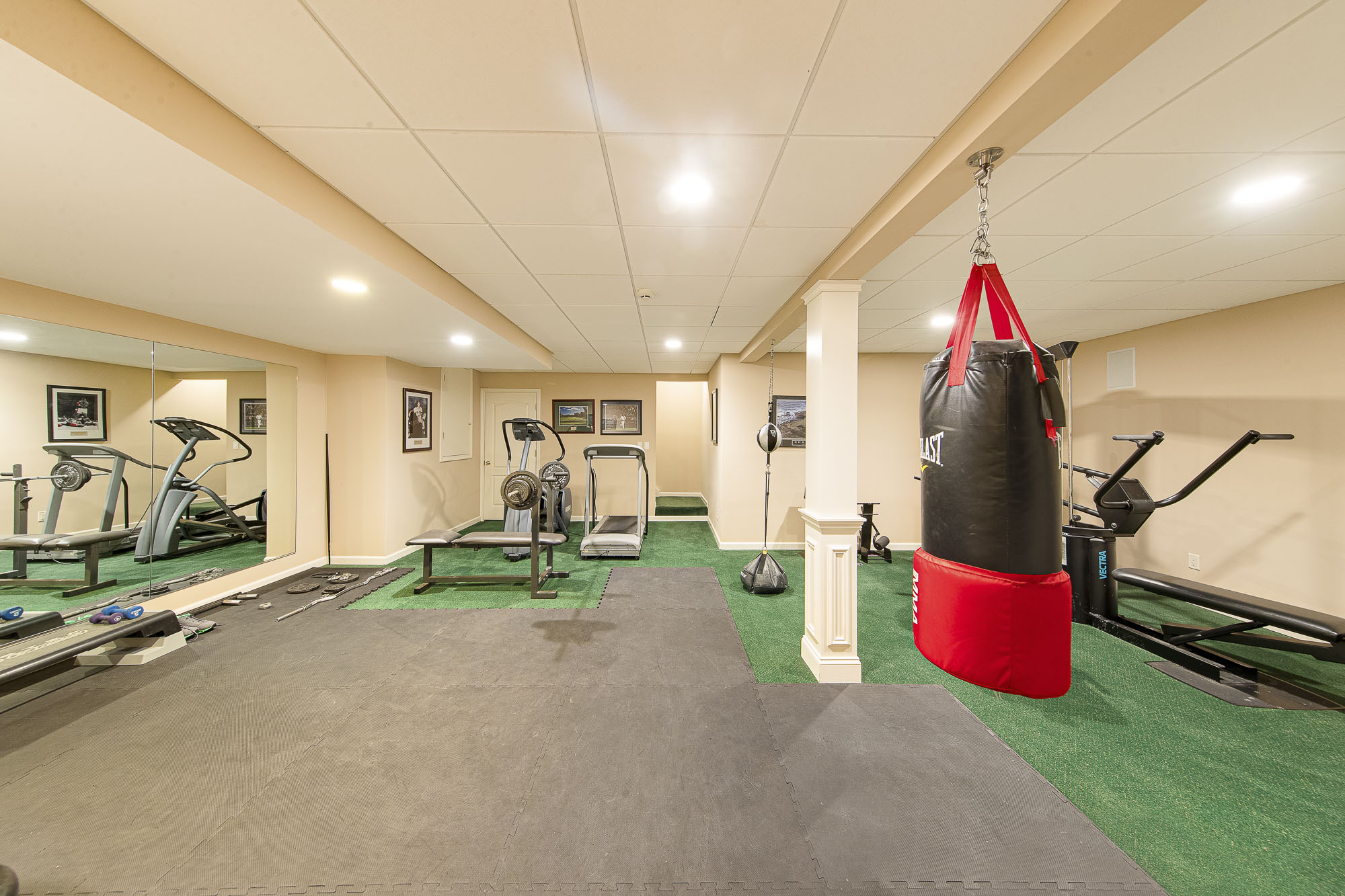 This 7,500 sq ft home features 5–6 bedrooms, 6 baths, two home offices, a remodeled chef’s kitchen, a dramatic great room, banquet-size dining room, and a full lower level with theater, gym, sauna bath, game room, and music studio.