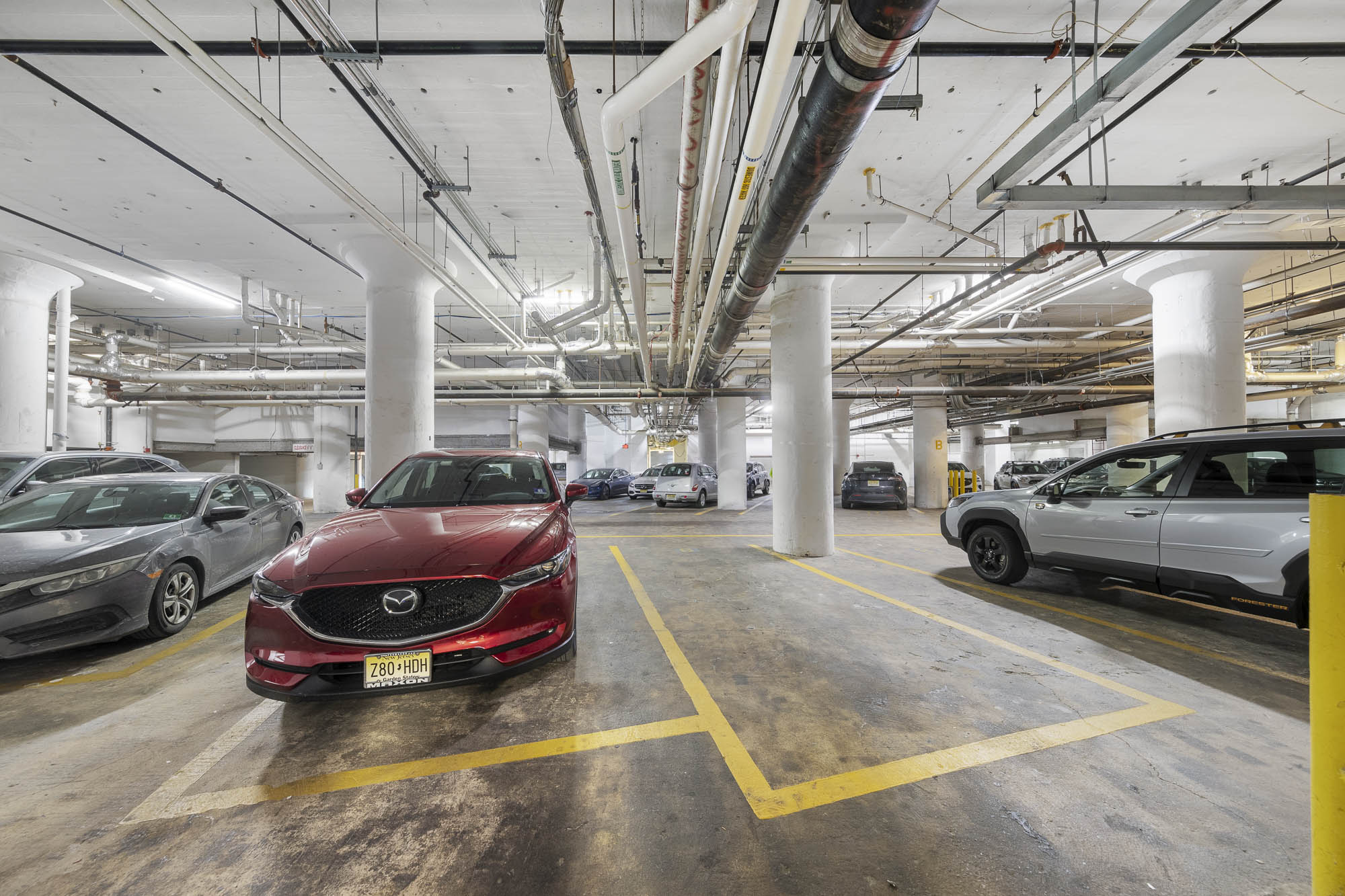 Residents enjoy approximately 10,000 square feet of amenities designed for work, wellness, and downtime, including a residents’ lounge, basketball court, screening room, expansive 4,000-square-foot fitness center, dedicated Peloton and yoga room, sundeck, summer pool, dog park and spa, BBQ/picnic area, and a children’s playroom. Additional conveniences include 24-hour doorman service, in-unit laundry, and weekday shuttle service to the PATH (Monday–Friday).