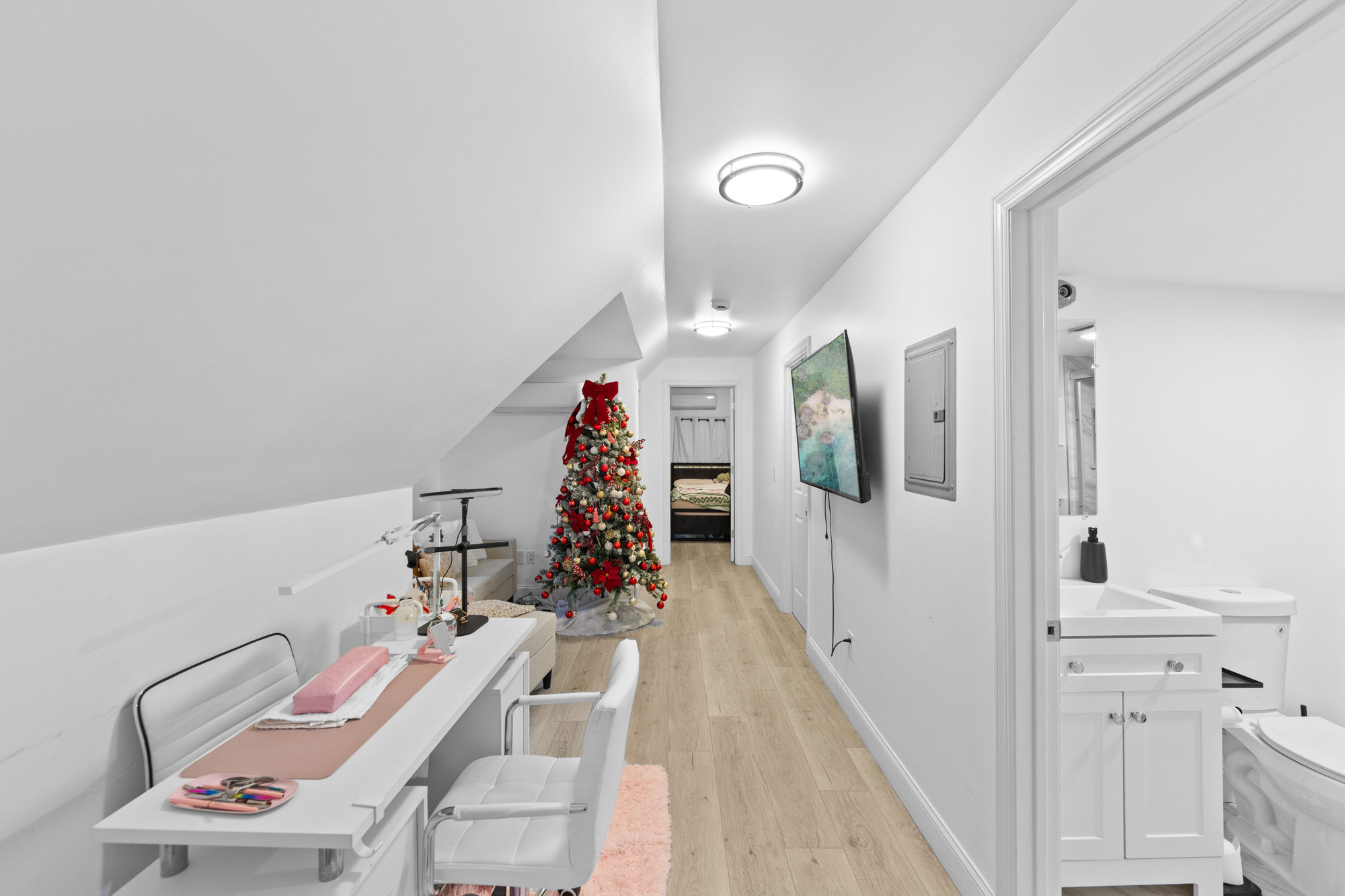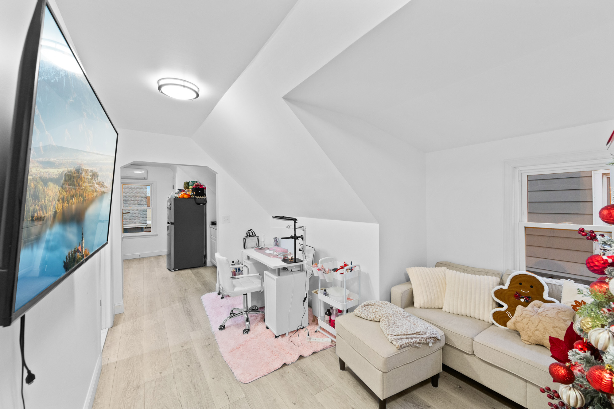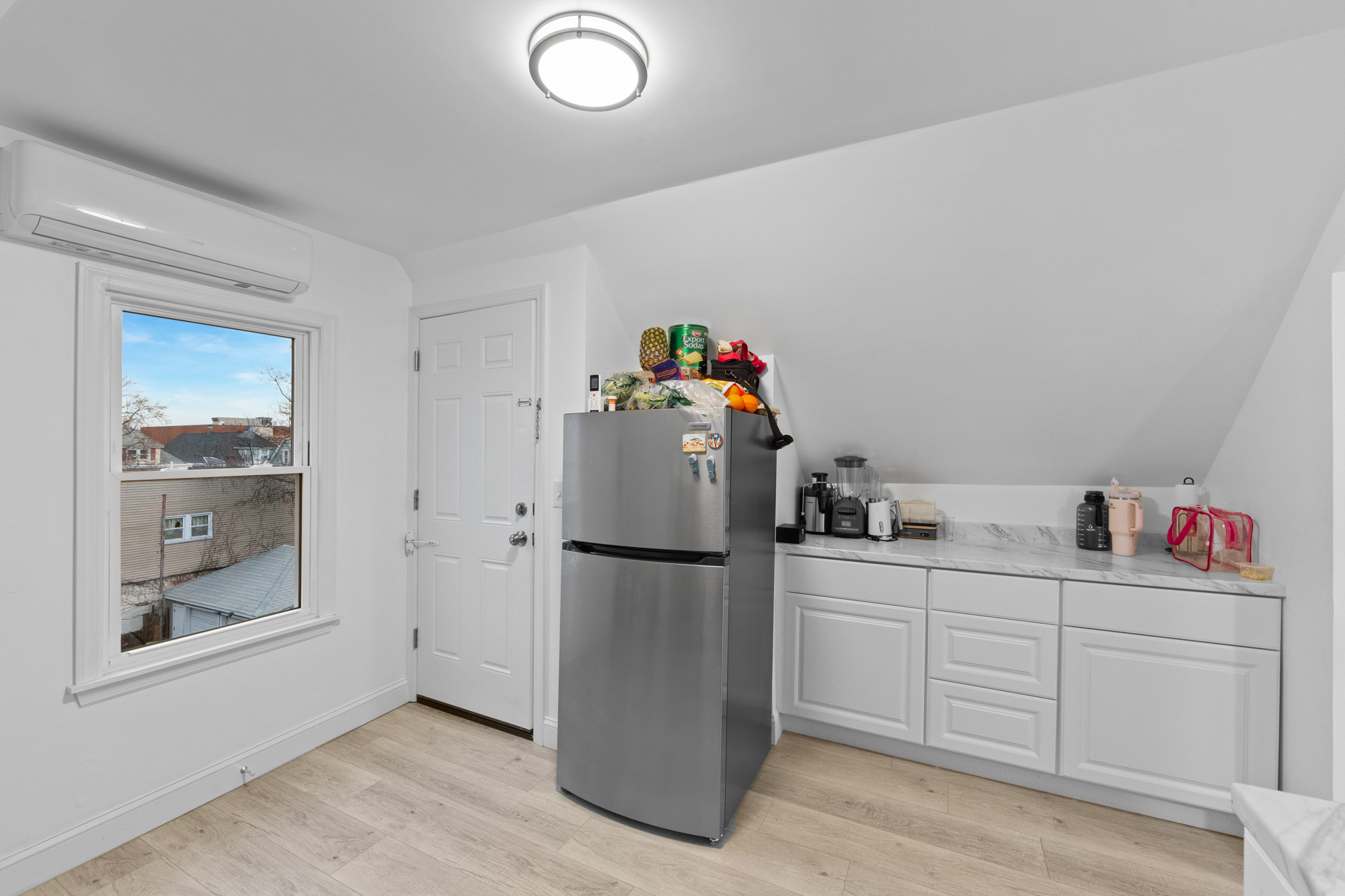 Renovated in 2024, this two-bedroom, one-bath apartment offers comfortable living with modern updates and practical amenities. The layout includes an eat-in kitchen with stainless steel gas appliances, a cozy living room, and the convenience of off-street parking. Year-round comfort is handled by four ductless heating and air-conditioning units, including individual units in each bedroom for personalized climate control.